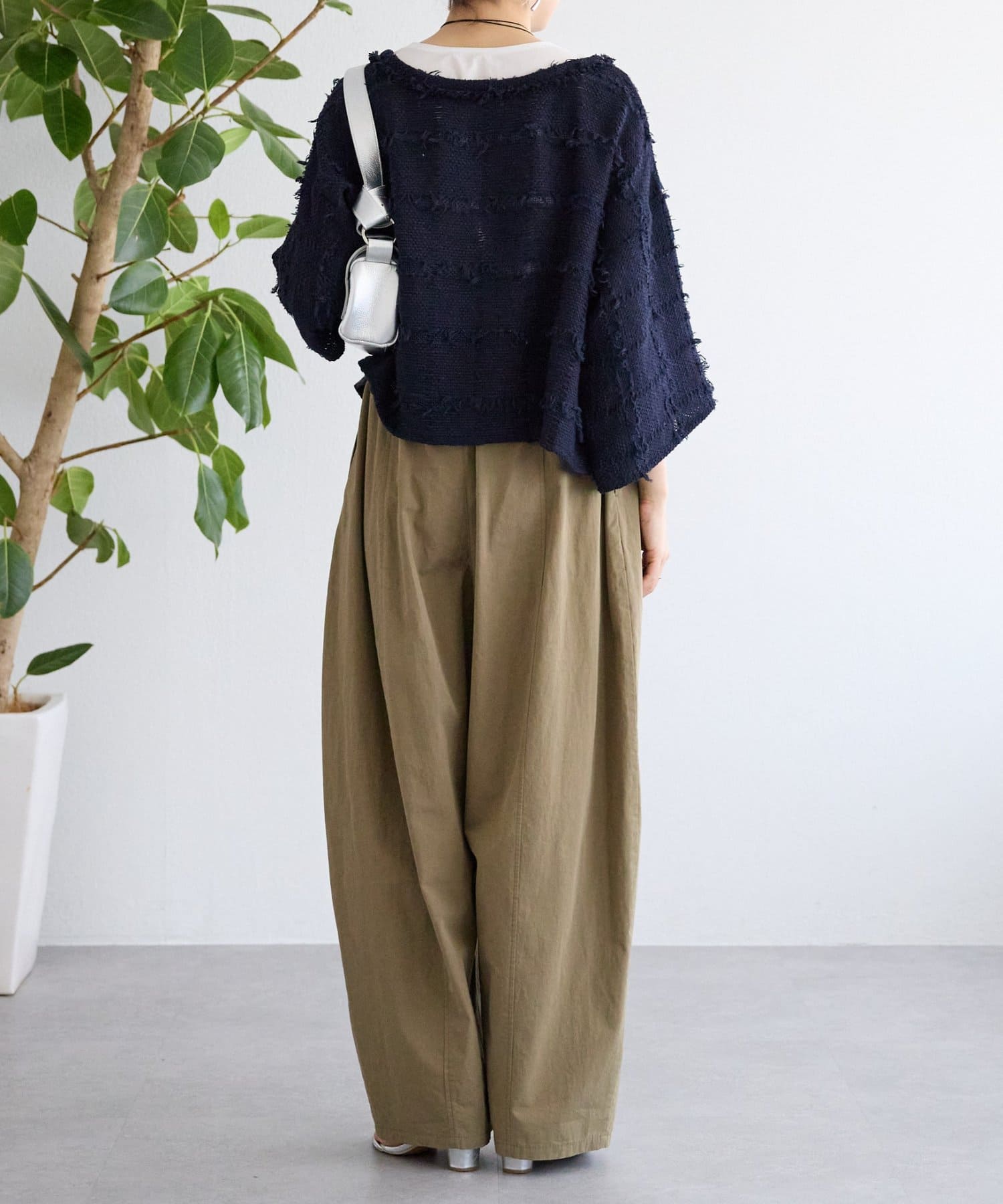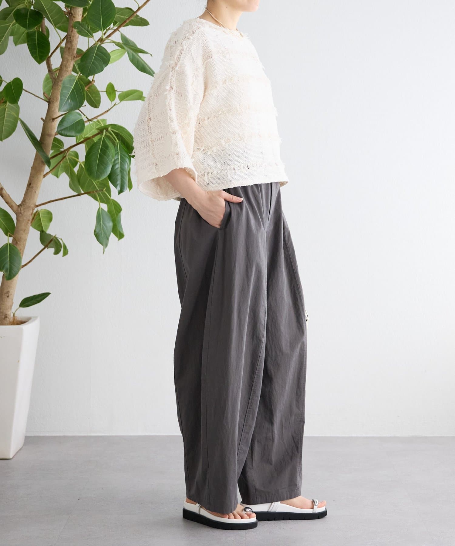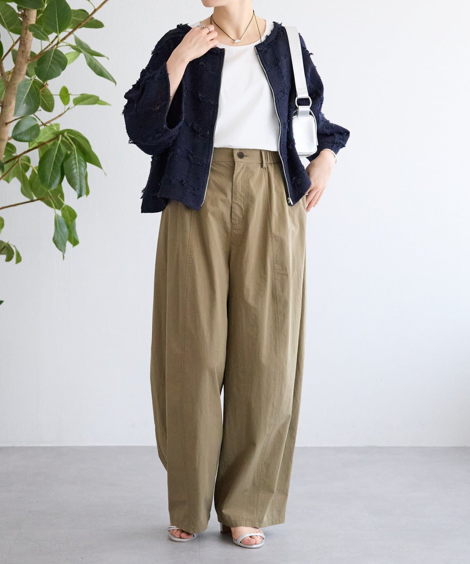 シンプルなトップスを合わせるだけで、スタイリングが決まる大人のためのカジュアルパンツです。