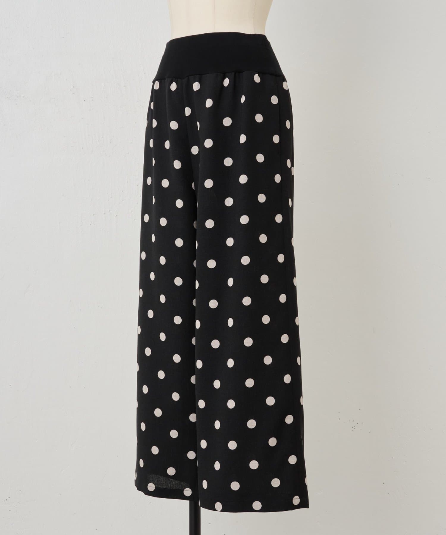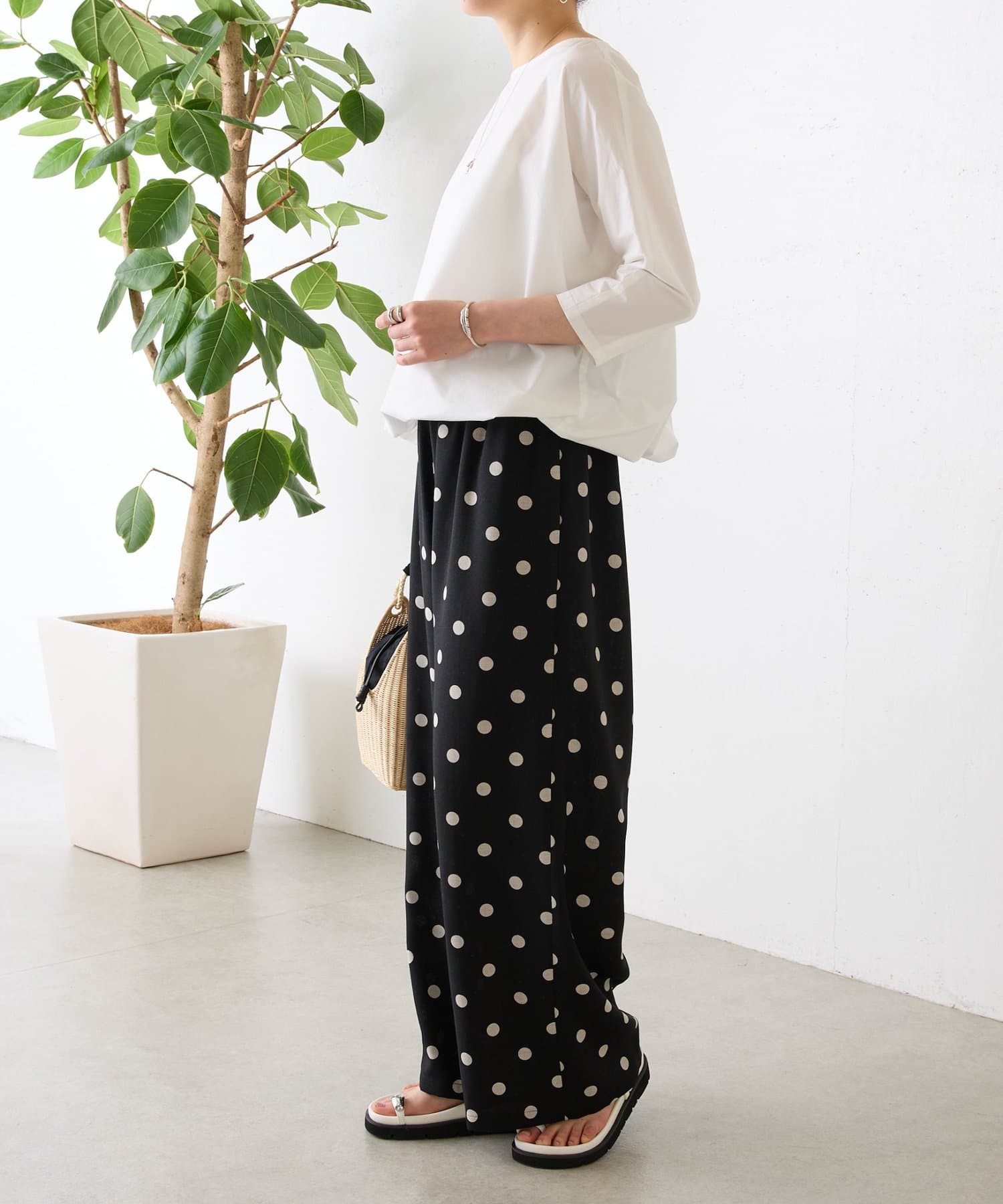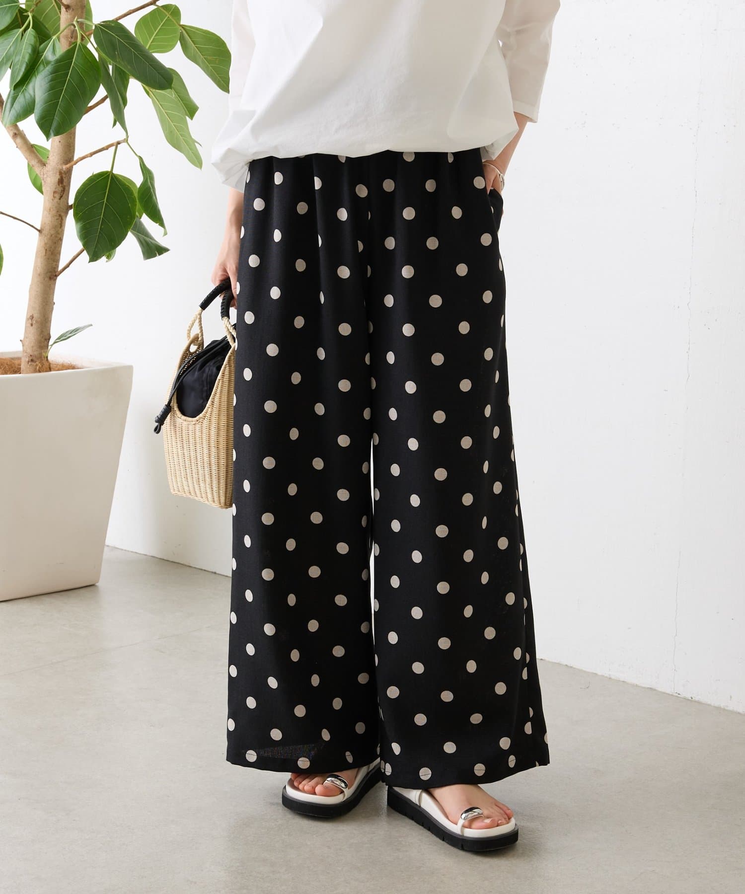 ドットプリントがコーディネートのアクセントになるウエストリブパンツ。