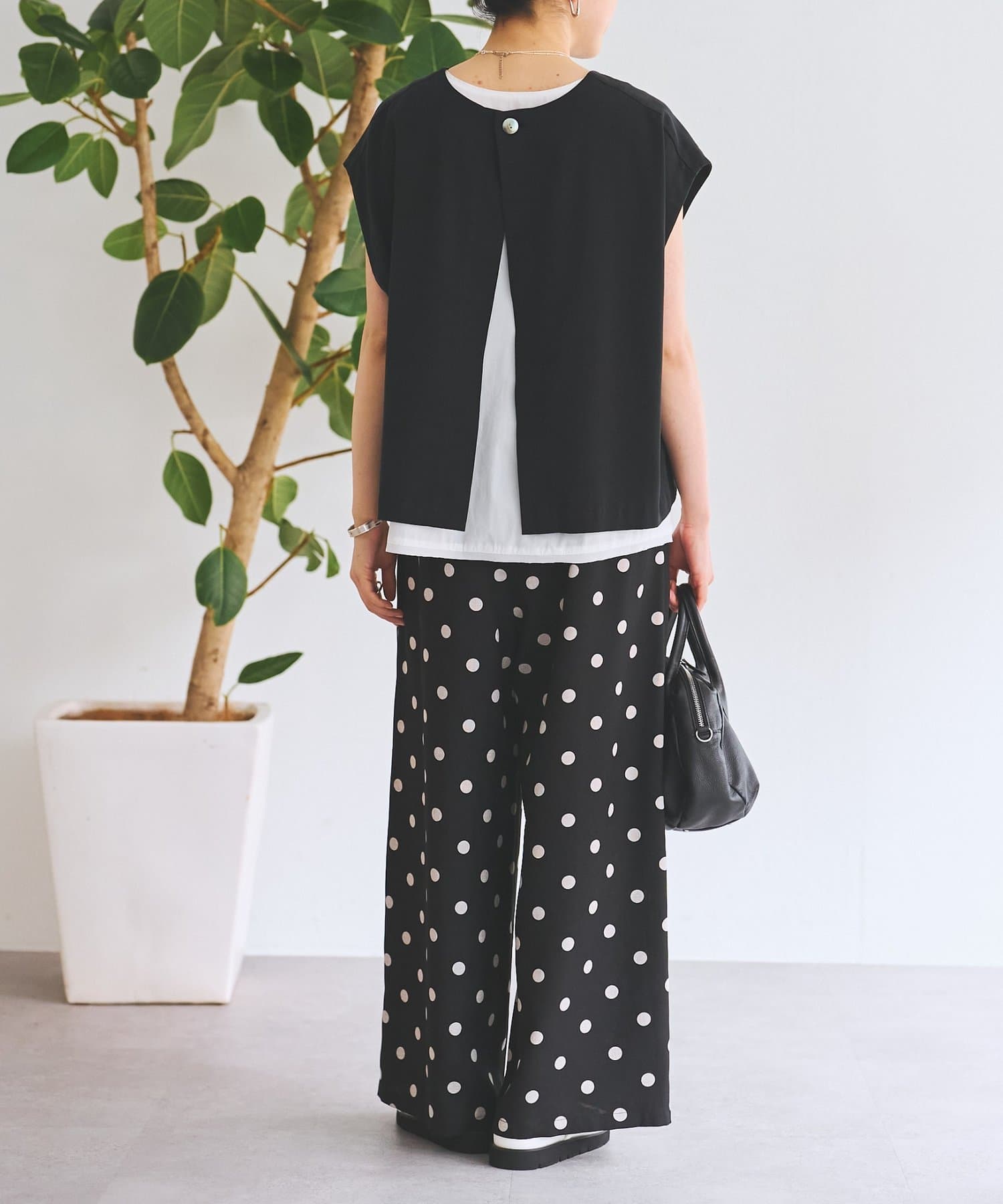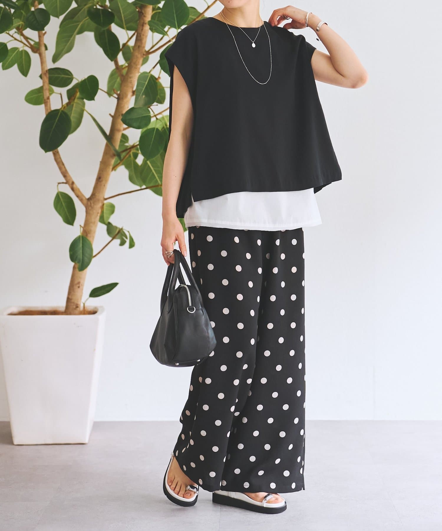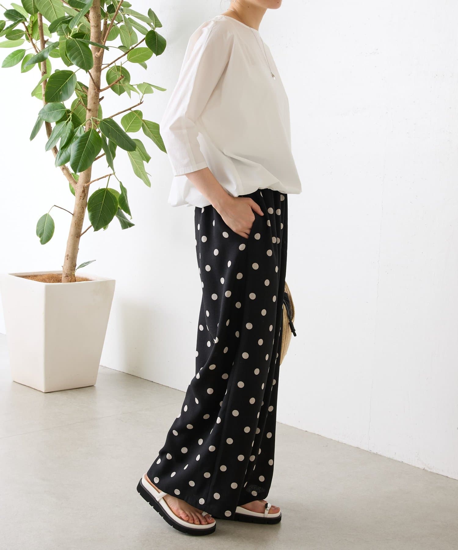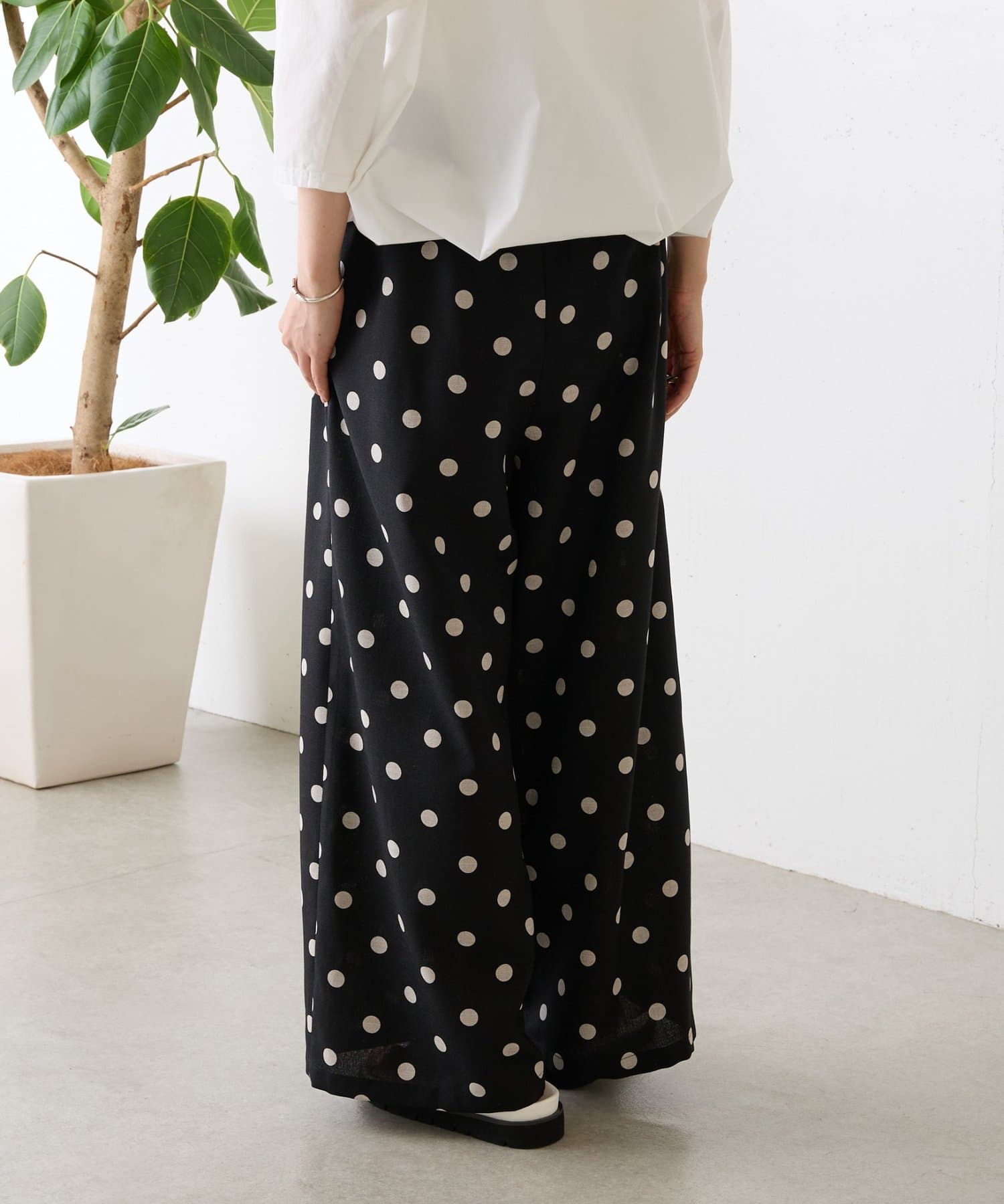 ドットプリントがコーディネートのアクセントになるウエストリブパンツ。