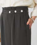 • ウエスト部分のフロント釦と、ベルト端についたボタン2つを留めると、ボタンが3つ並びます