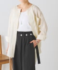 フロント釦を、ウエストベルトのボタンホールに留めると、身頃とは反対色のボタンが3つ並び、さりげないアクセントに。