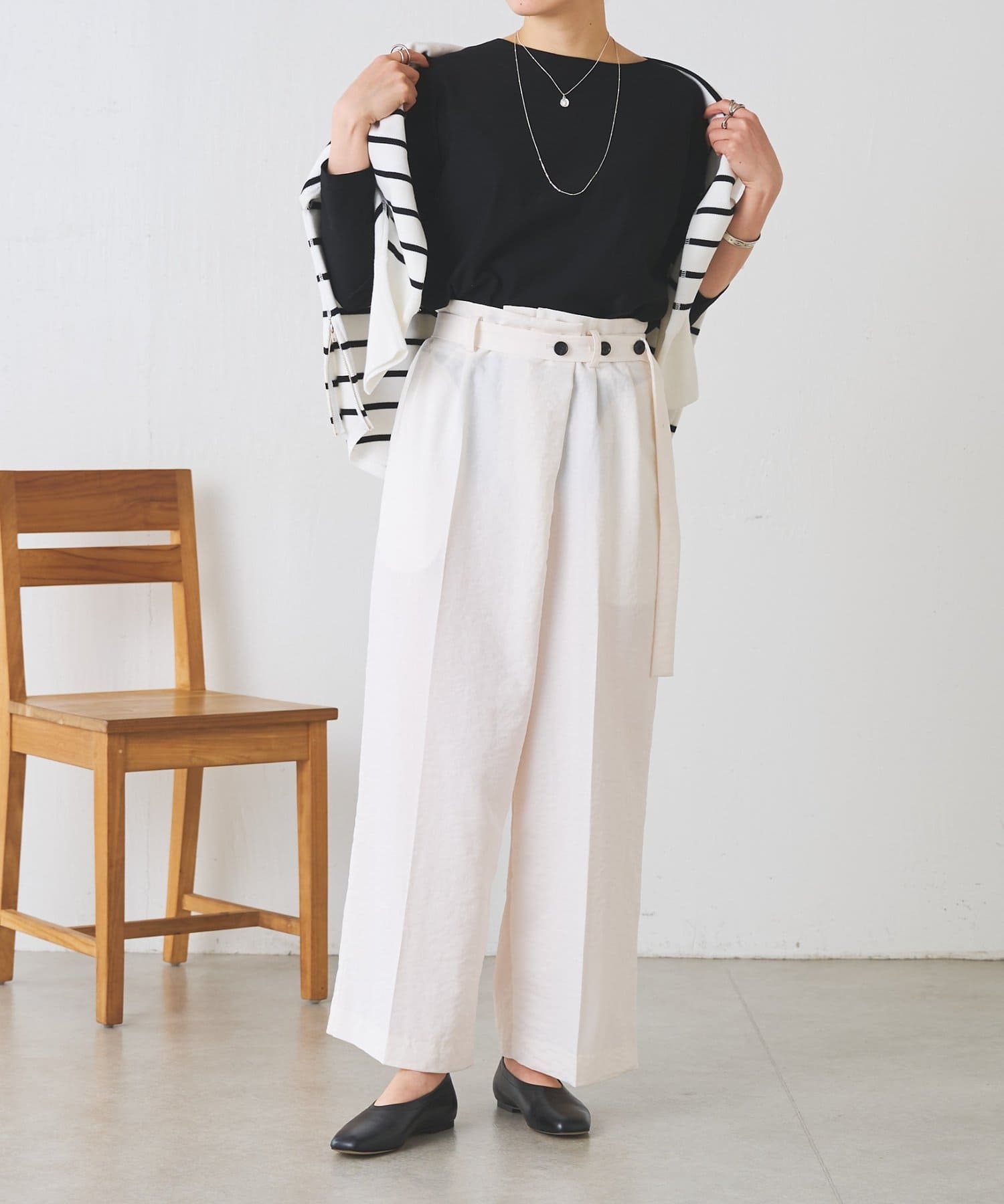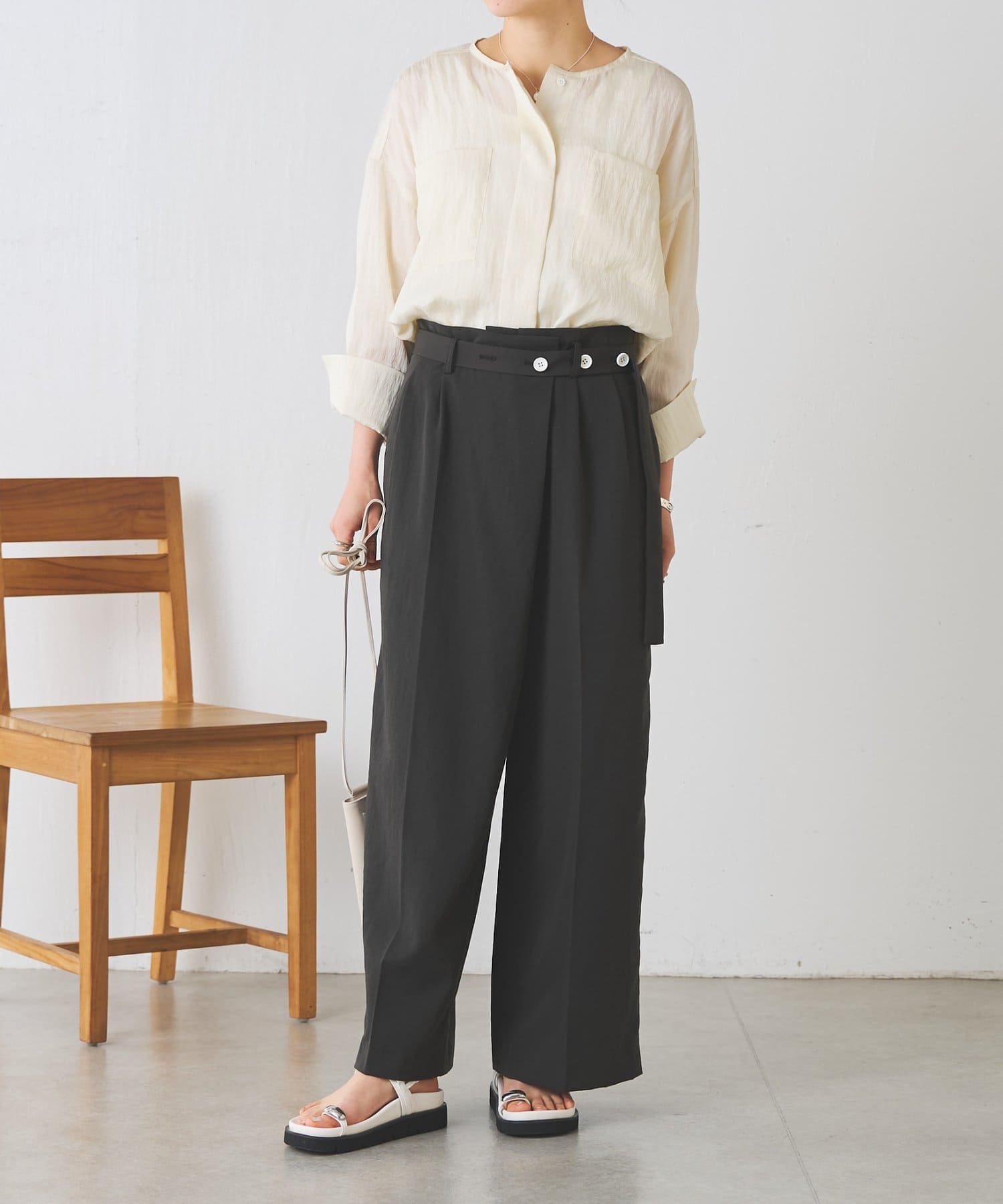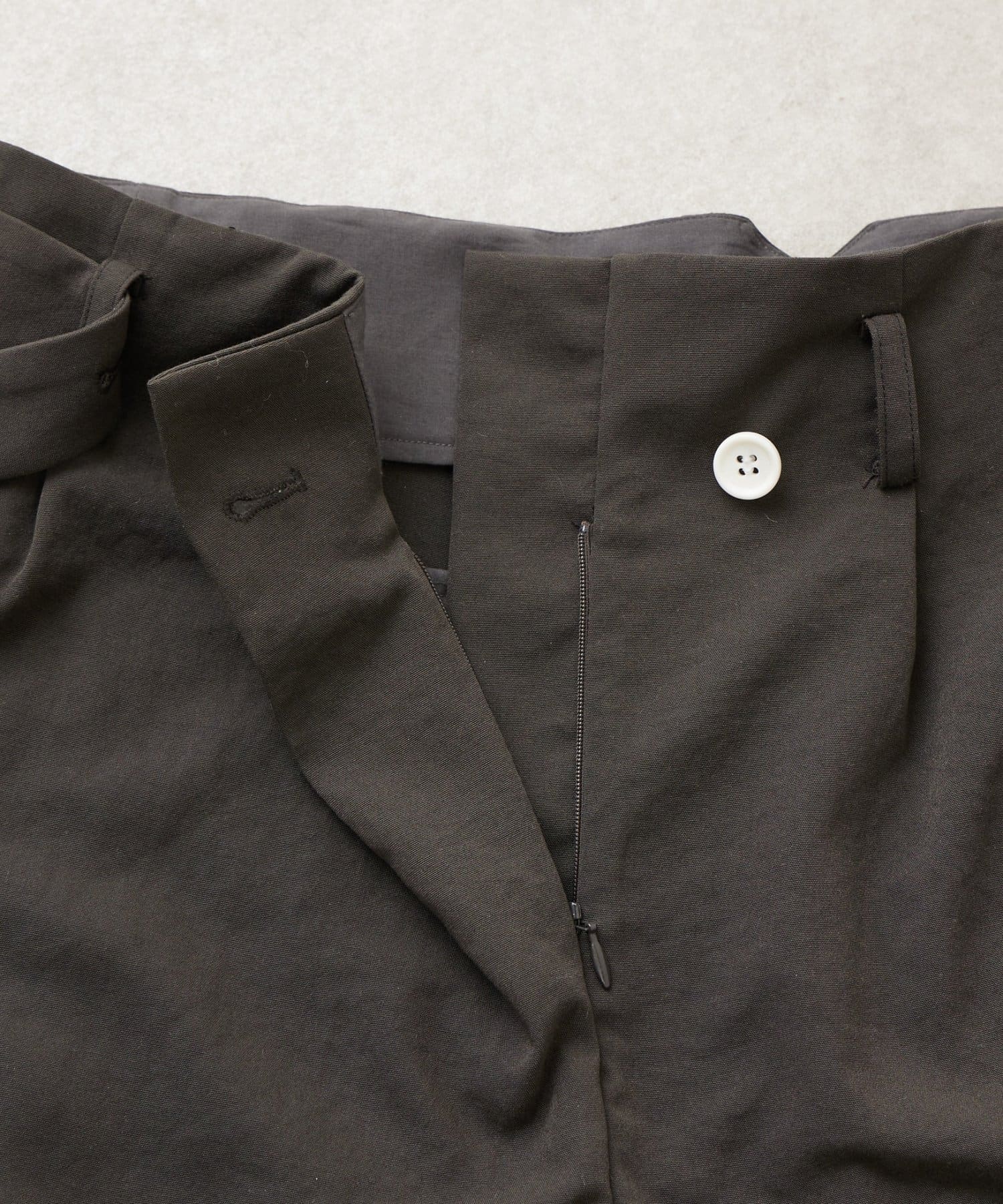 タックを施すことで生まれるドレープと、センタープレスによるきちんと感を両立した一本です。