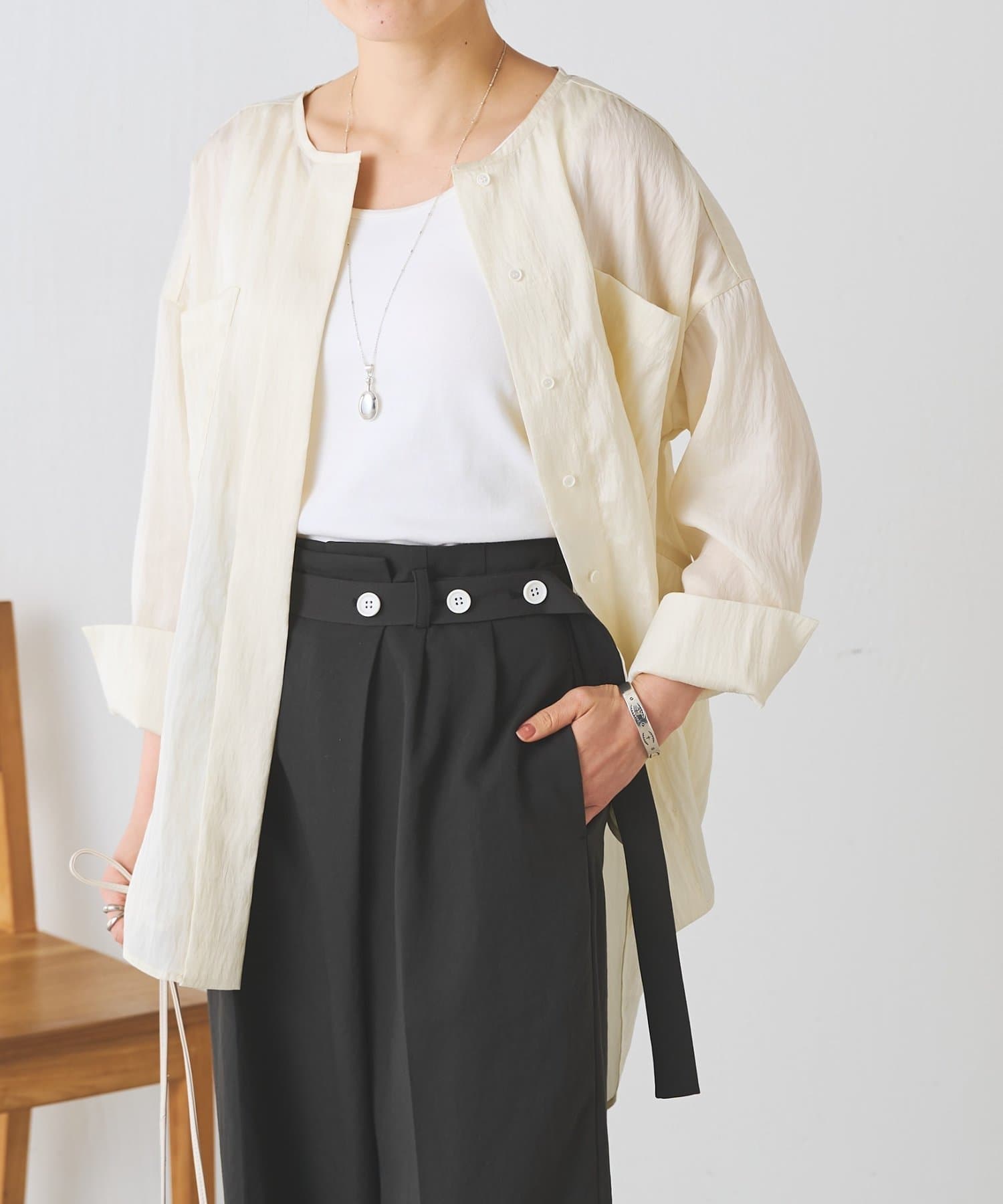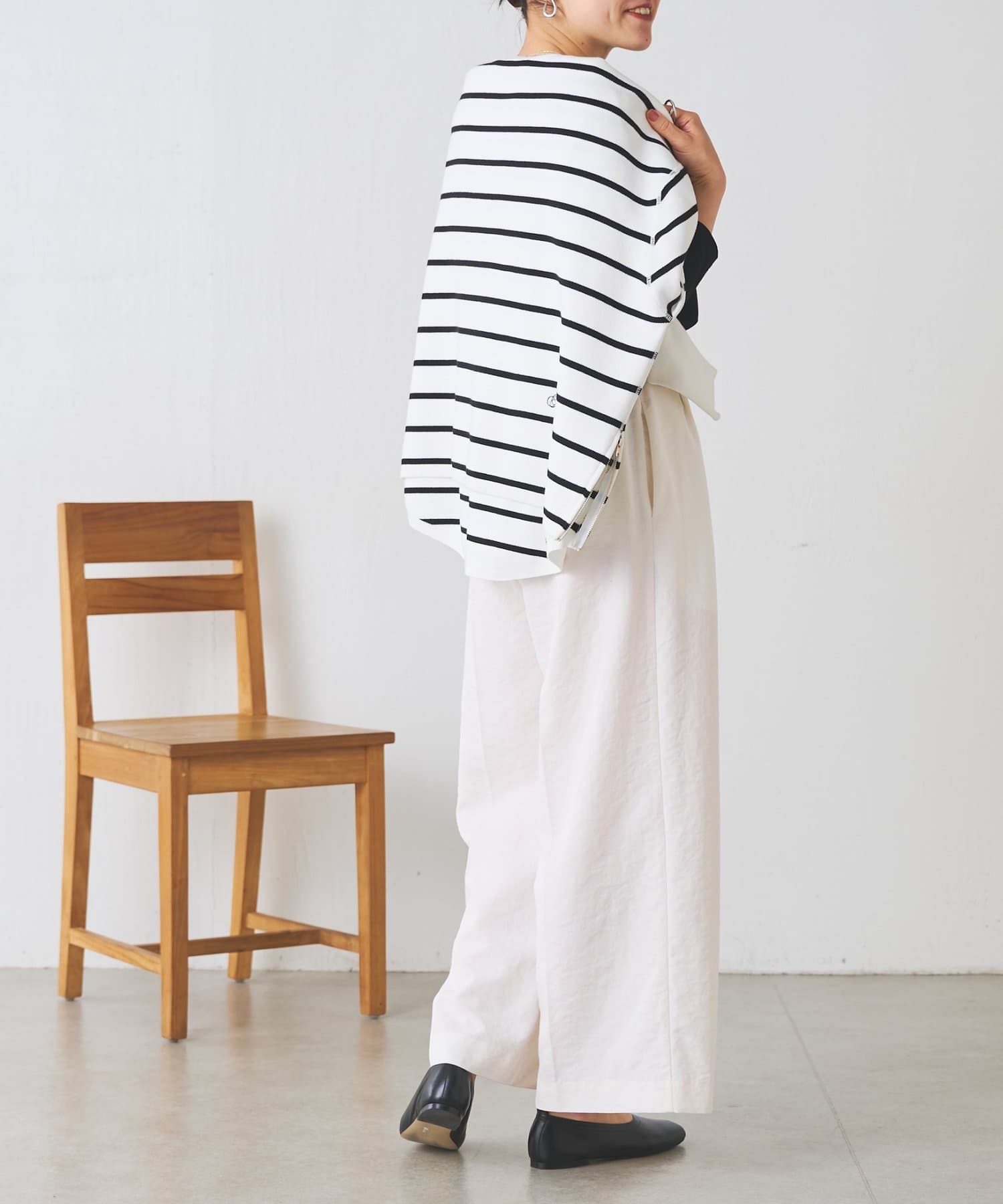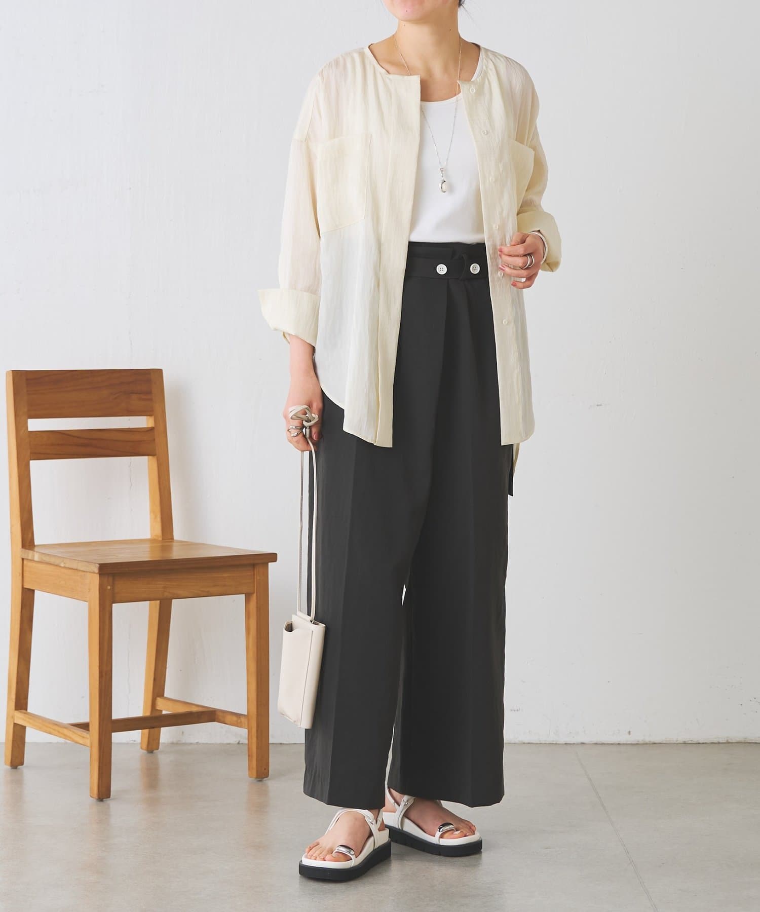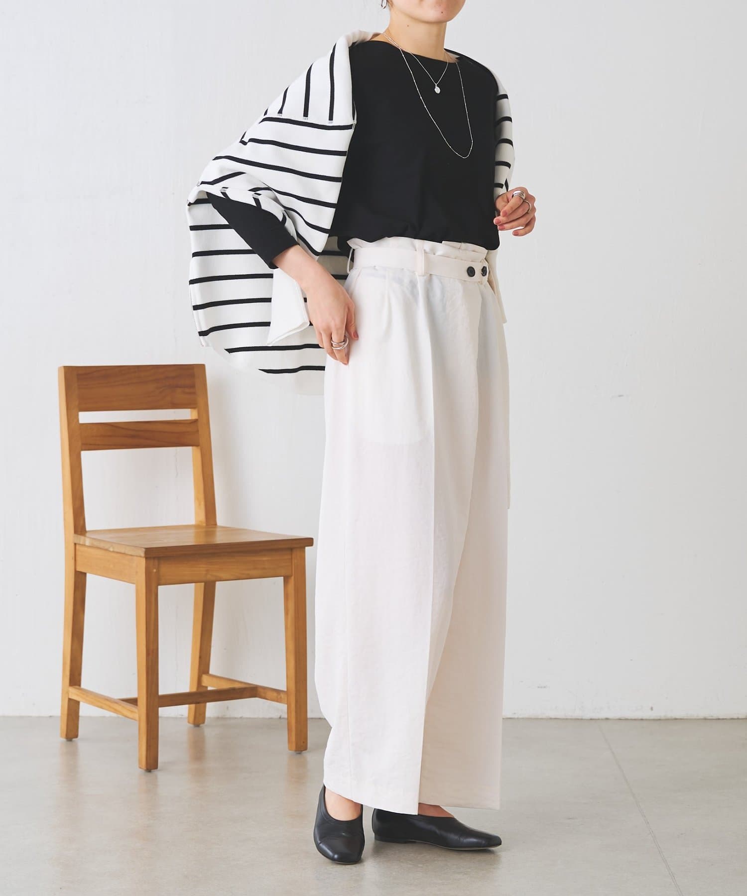 シボ感のある生地を使用しているのでカジュアルなトップスとも相性がよく、オンオフで活躍します。