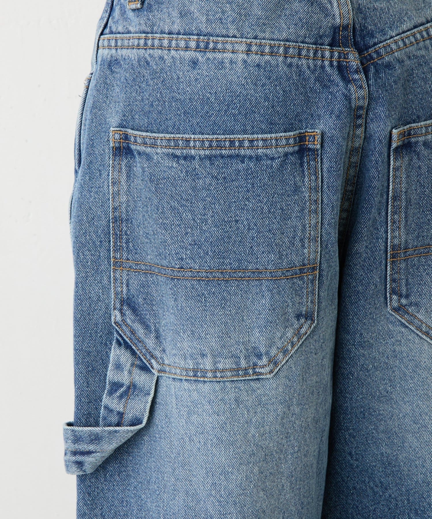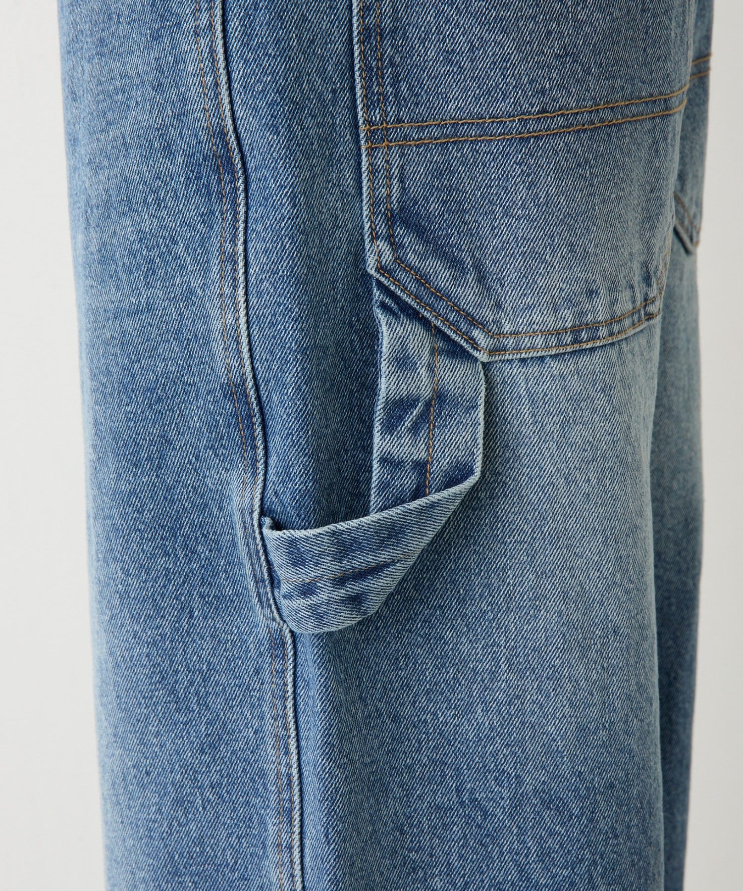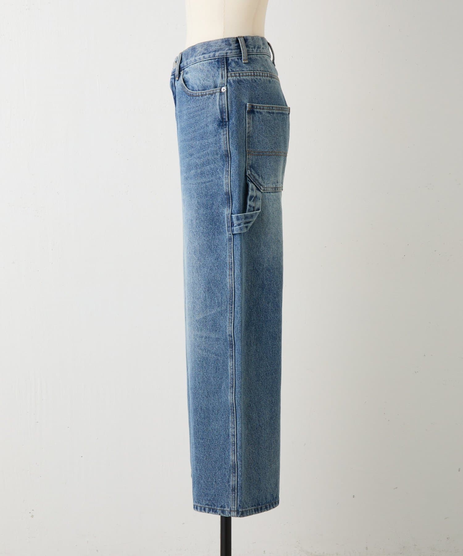 ヒップポケットやハンマーループを取り入れたワークパンツデザインで、シンプルながらもディテールにこだわった一着。