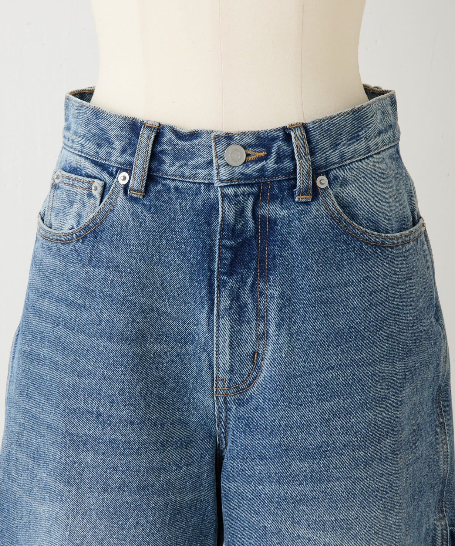 ゆったりとしたワイドシルエットが特徴のデニムパンツ。