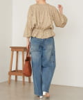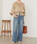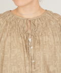 カジュアルなコットン素材ながら、たっぷりと寄せたギャザーが女性らしい印象に仕上げてくれます。