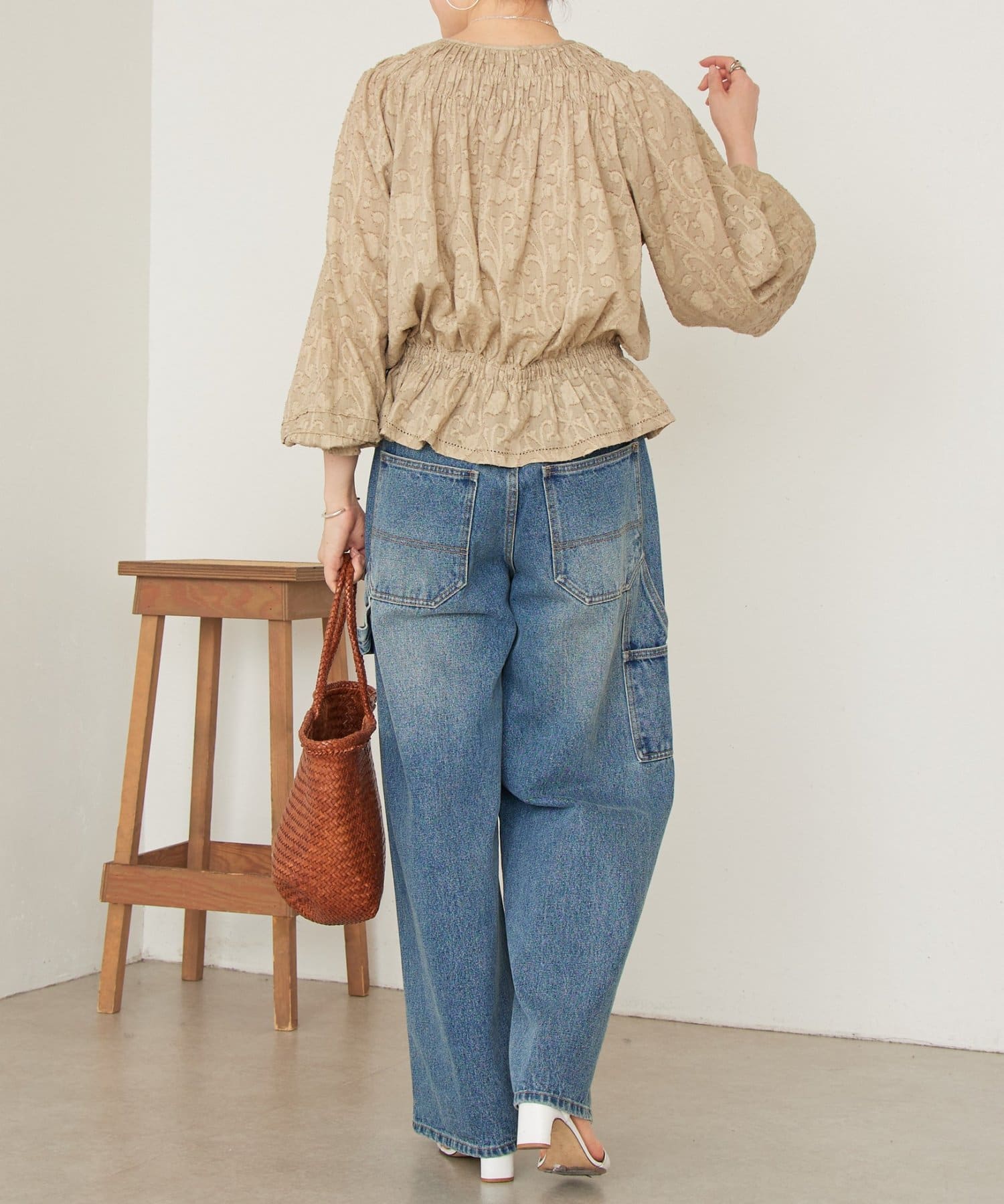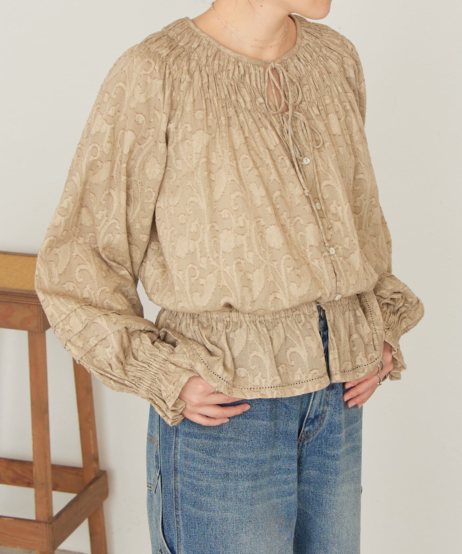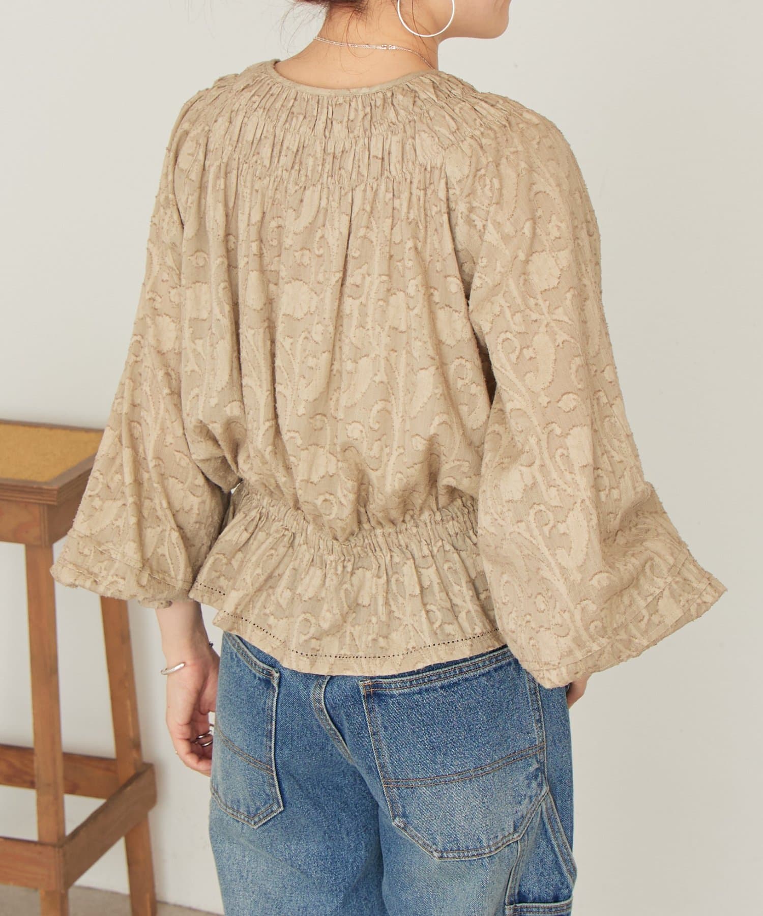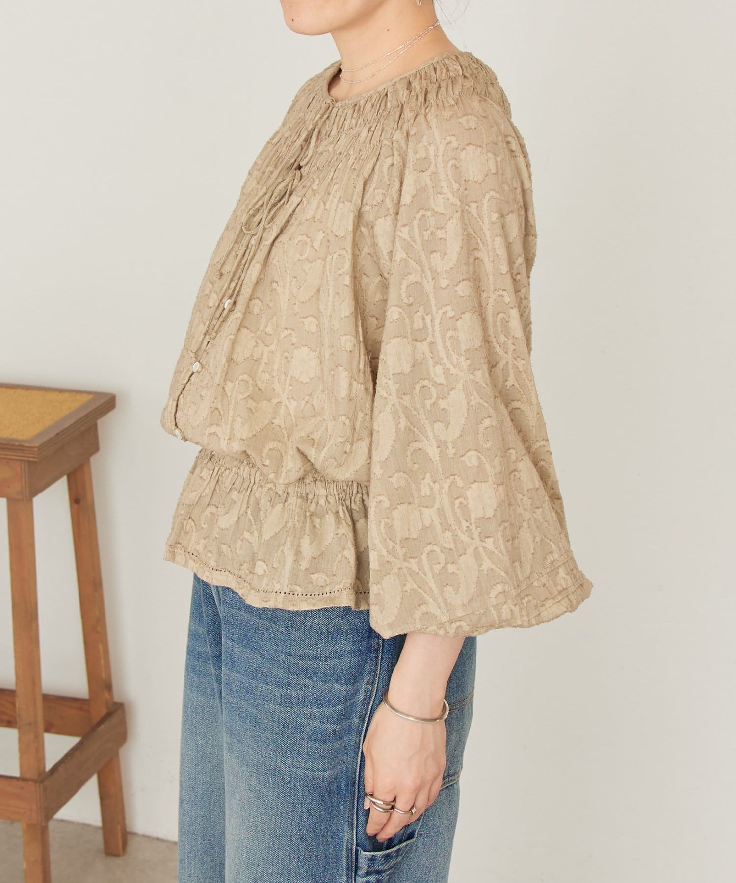 《4/8(水)12:00新色予約開始》ボタニカルジャガードブラウス