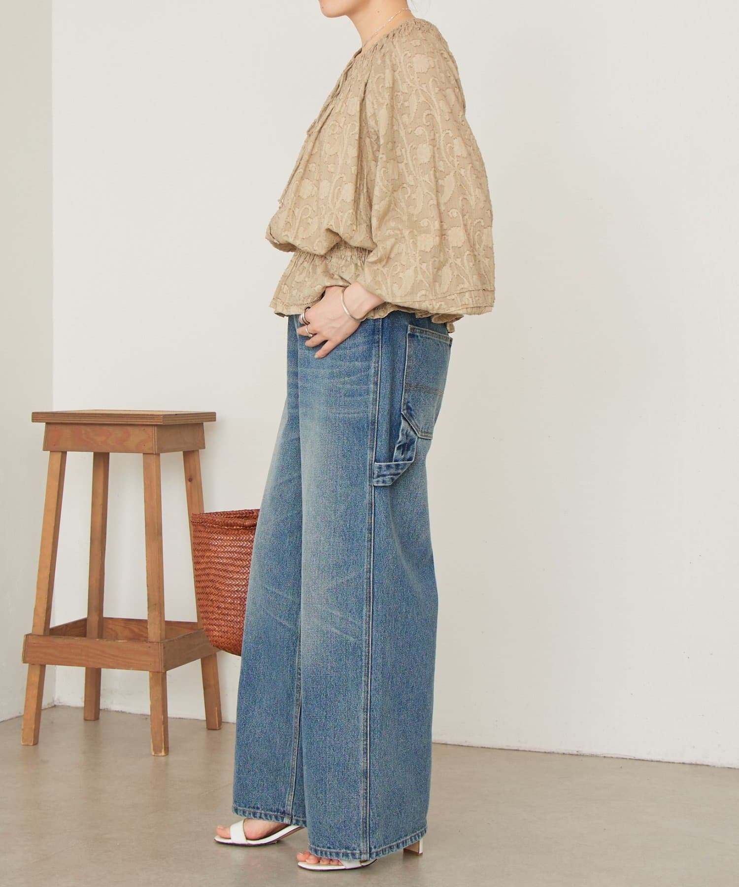 裾はゴム仕様のブラウジングデザインで、自然とメリハリのあるシルエットに。