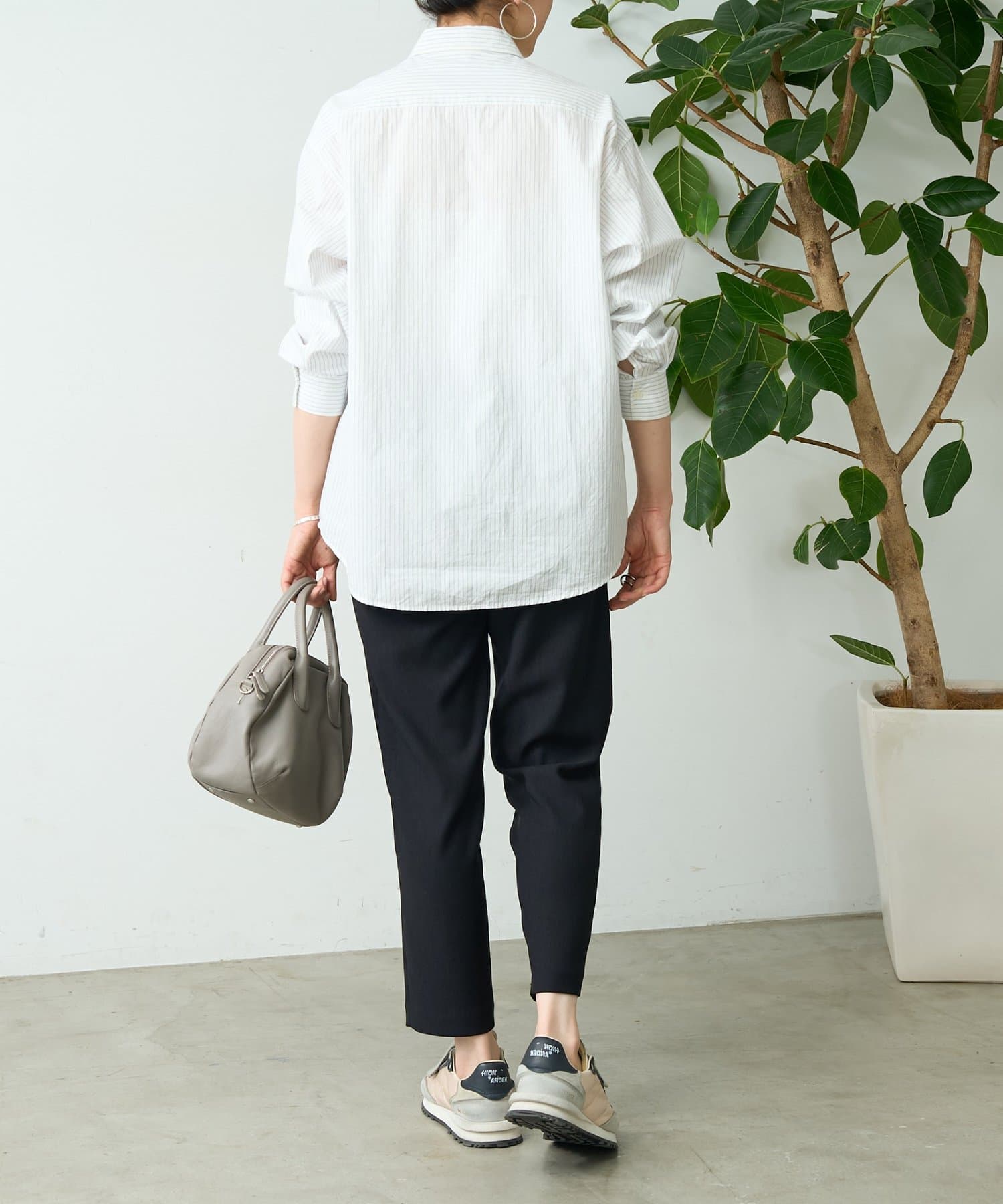 シンプルでバランスの取れたシルエットは着回しやすく、アウトでもインでもバランスよく決まるデザイン。