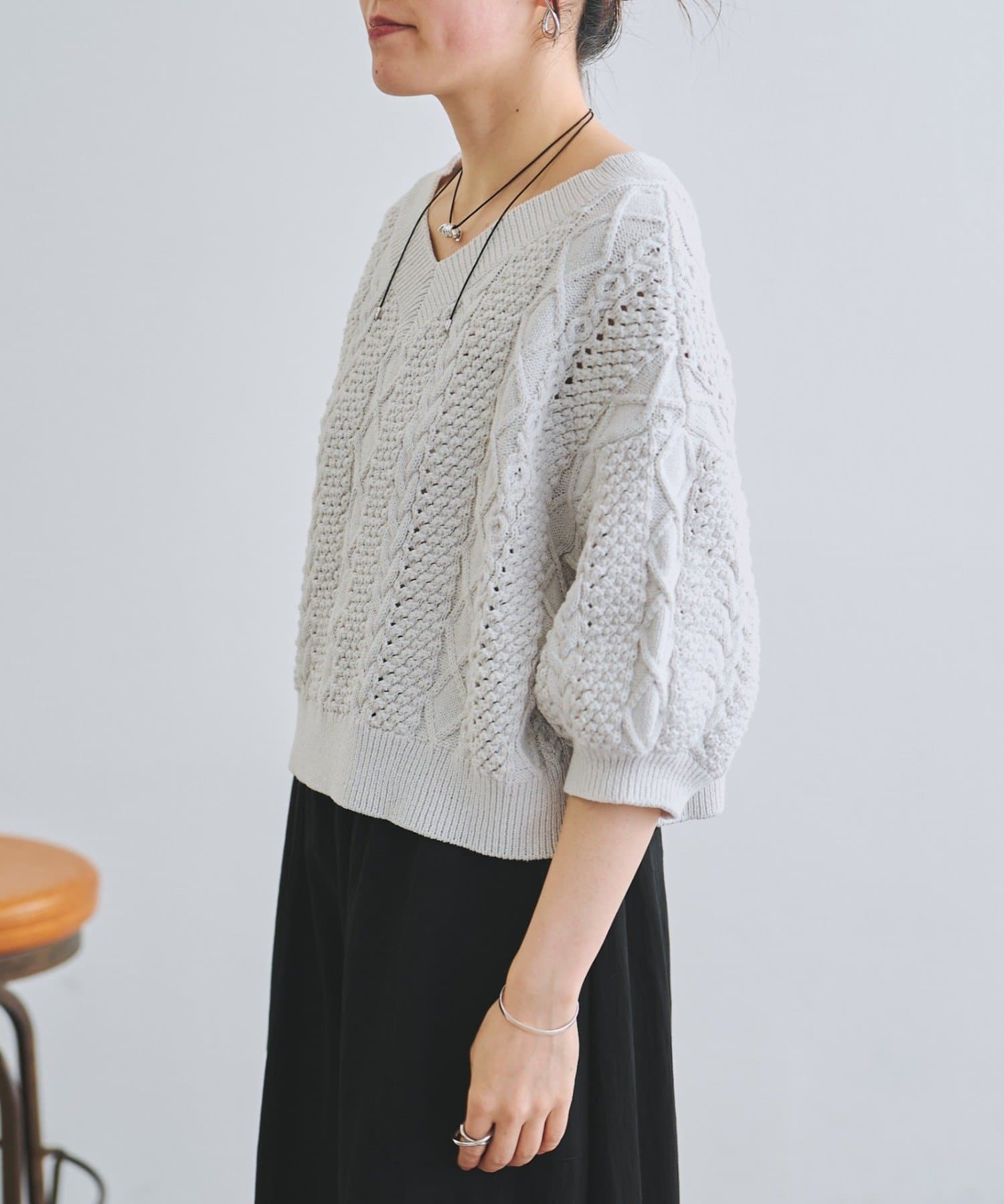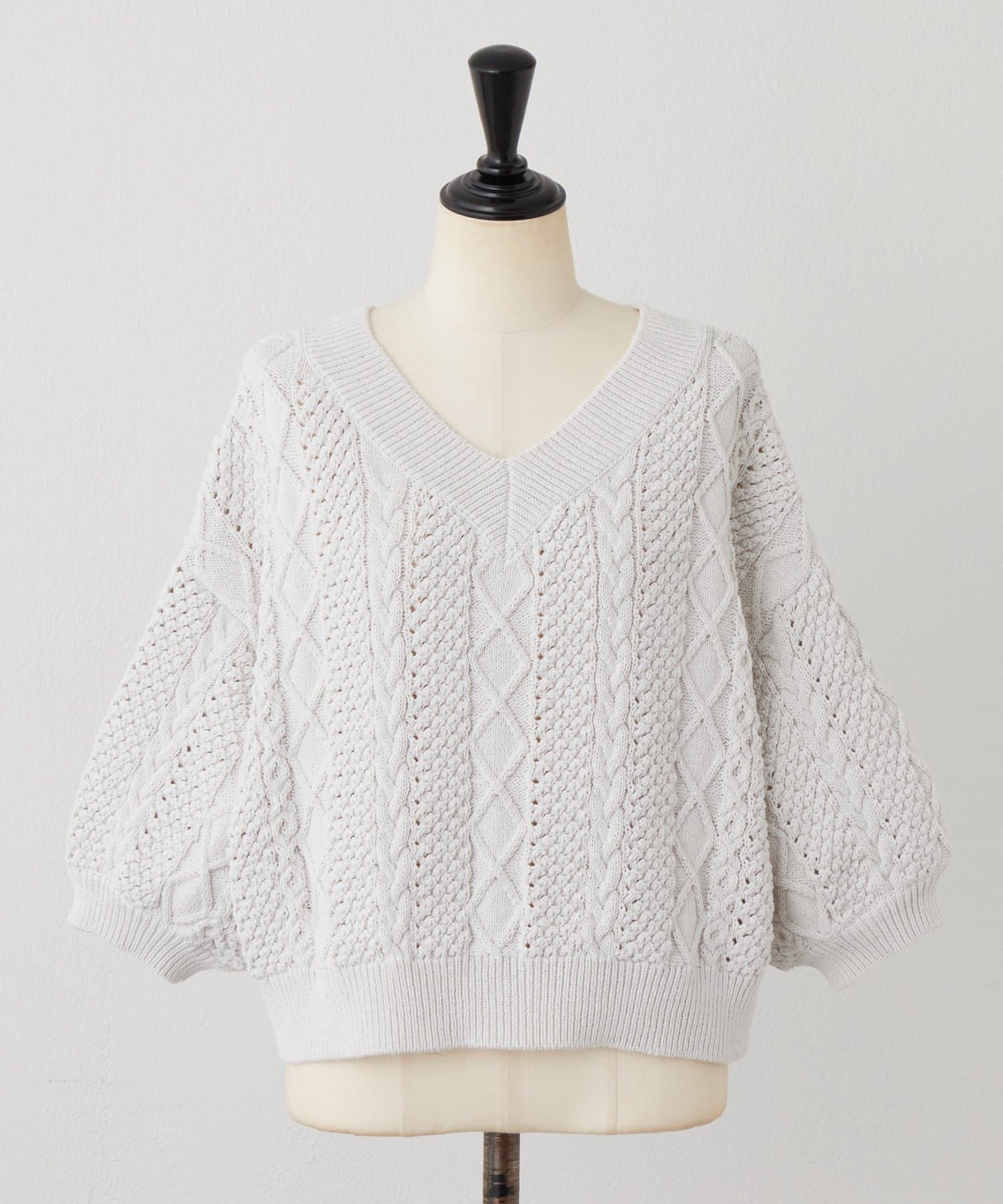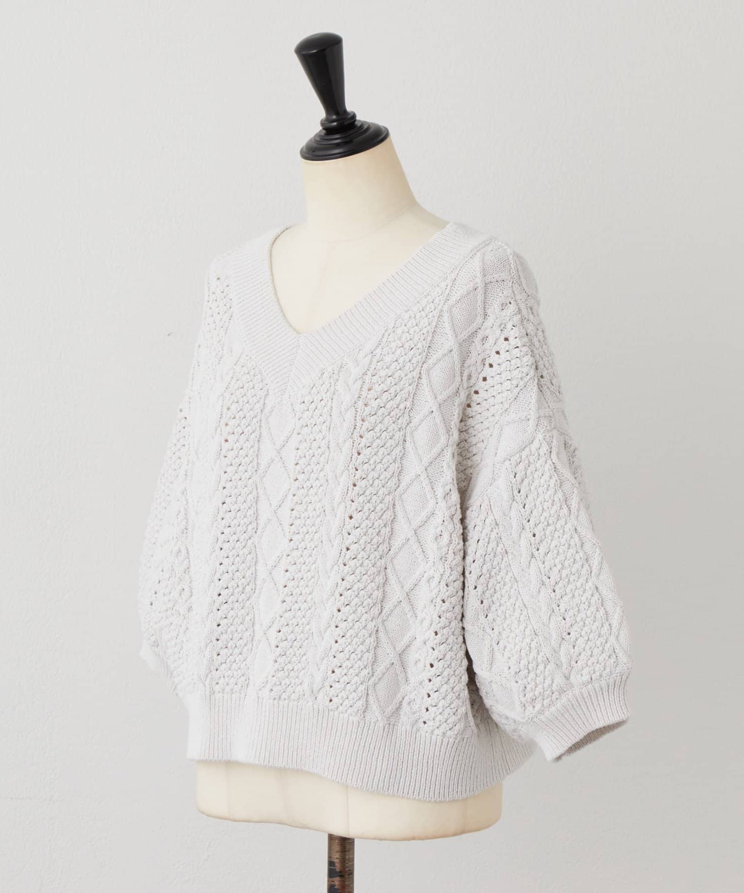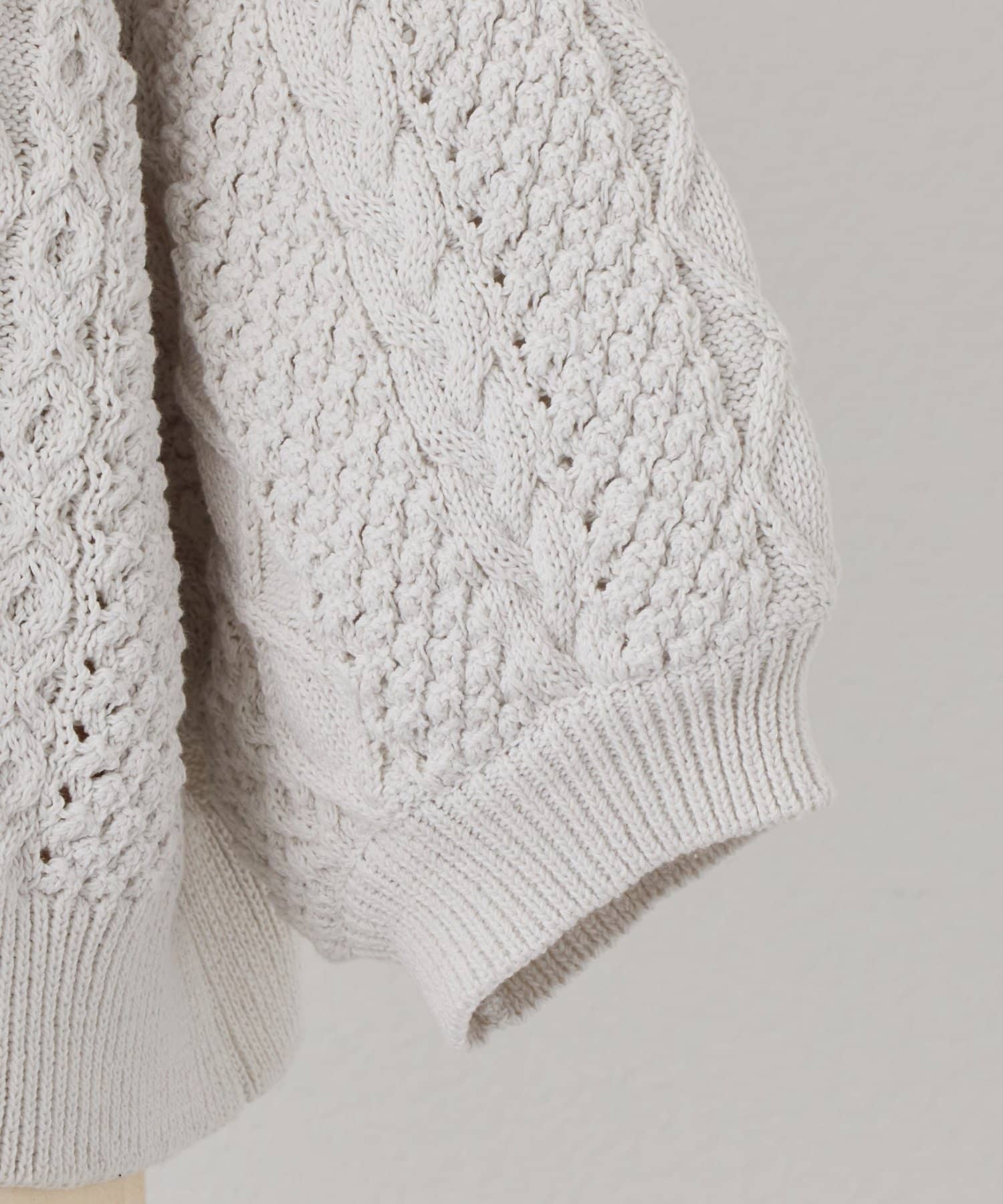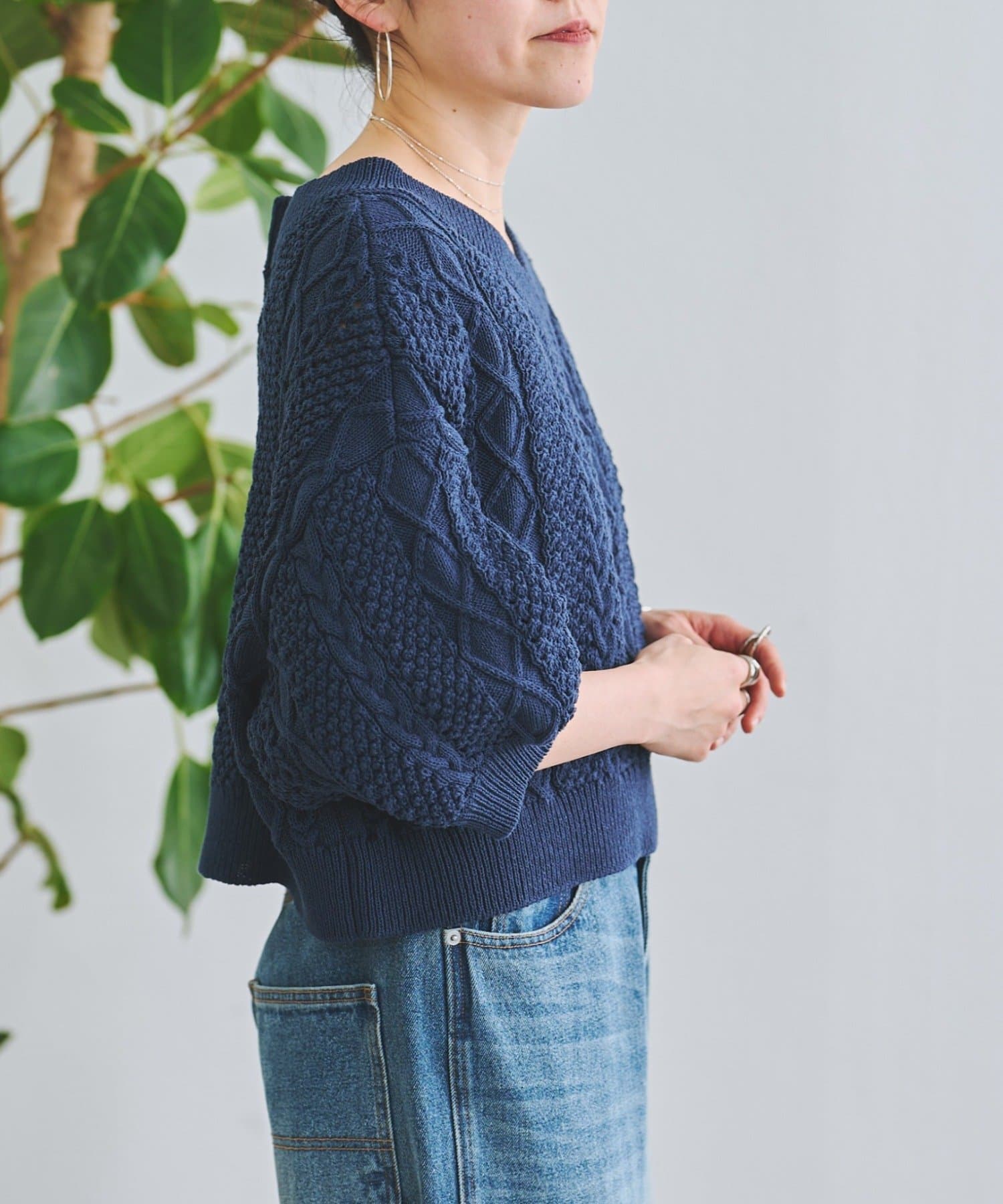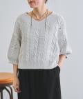 立体感のあるケーブル編みが目を惹く、表情豊かなニットプルオーバー。