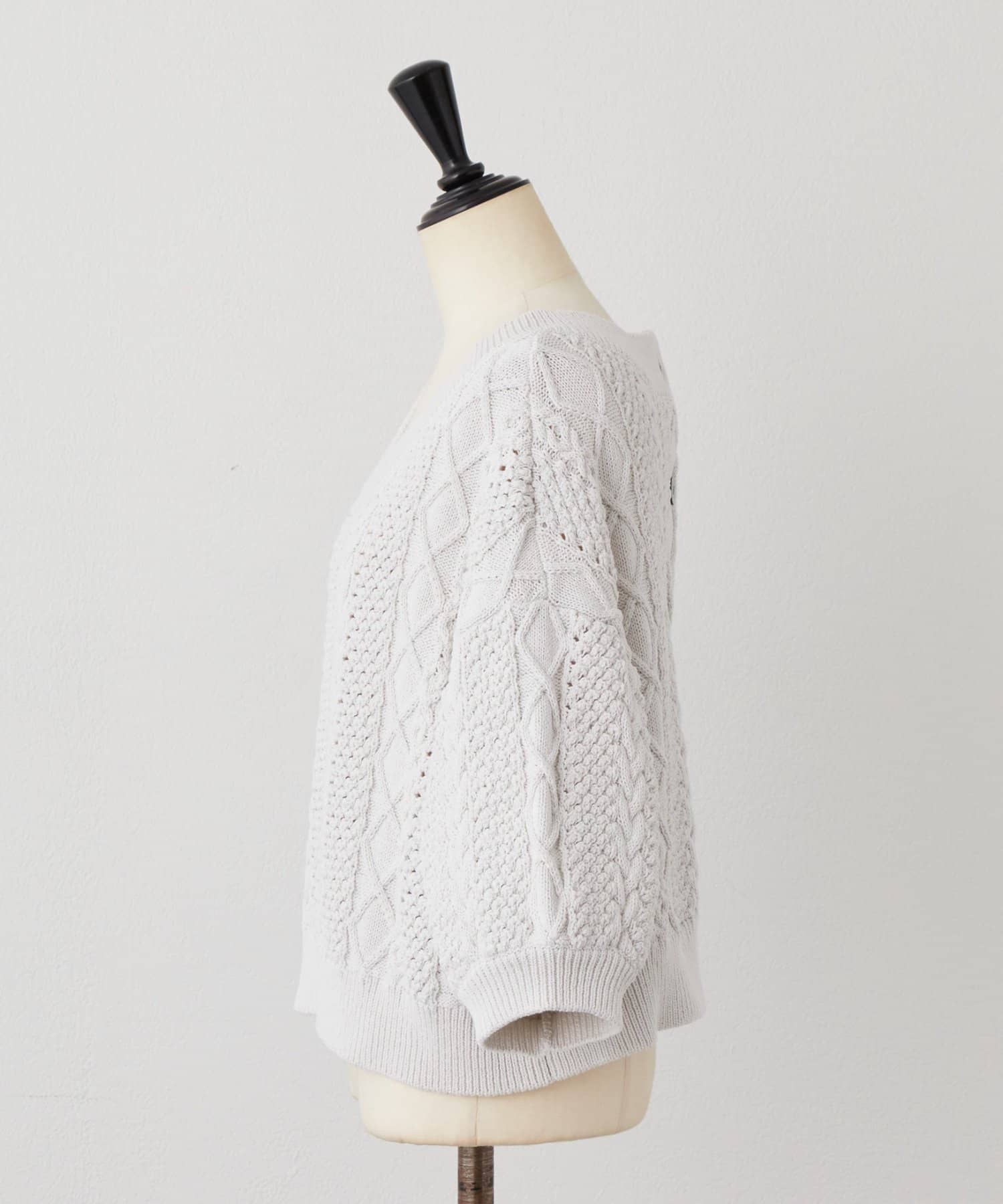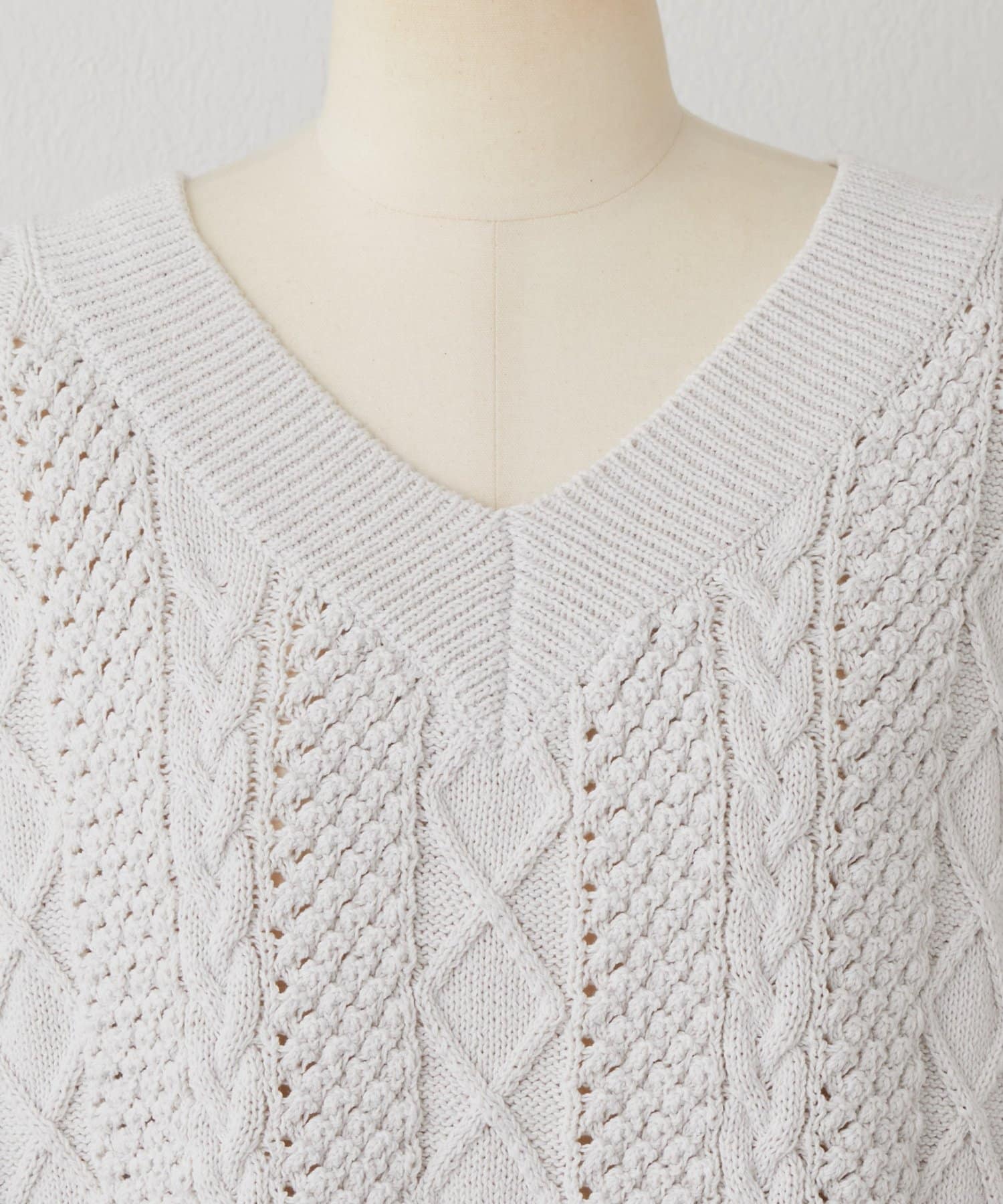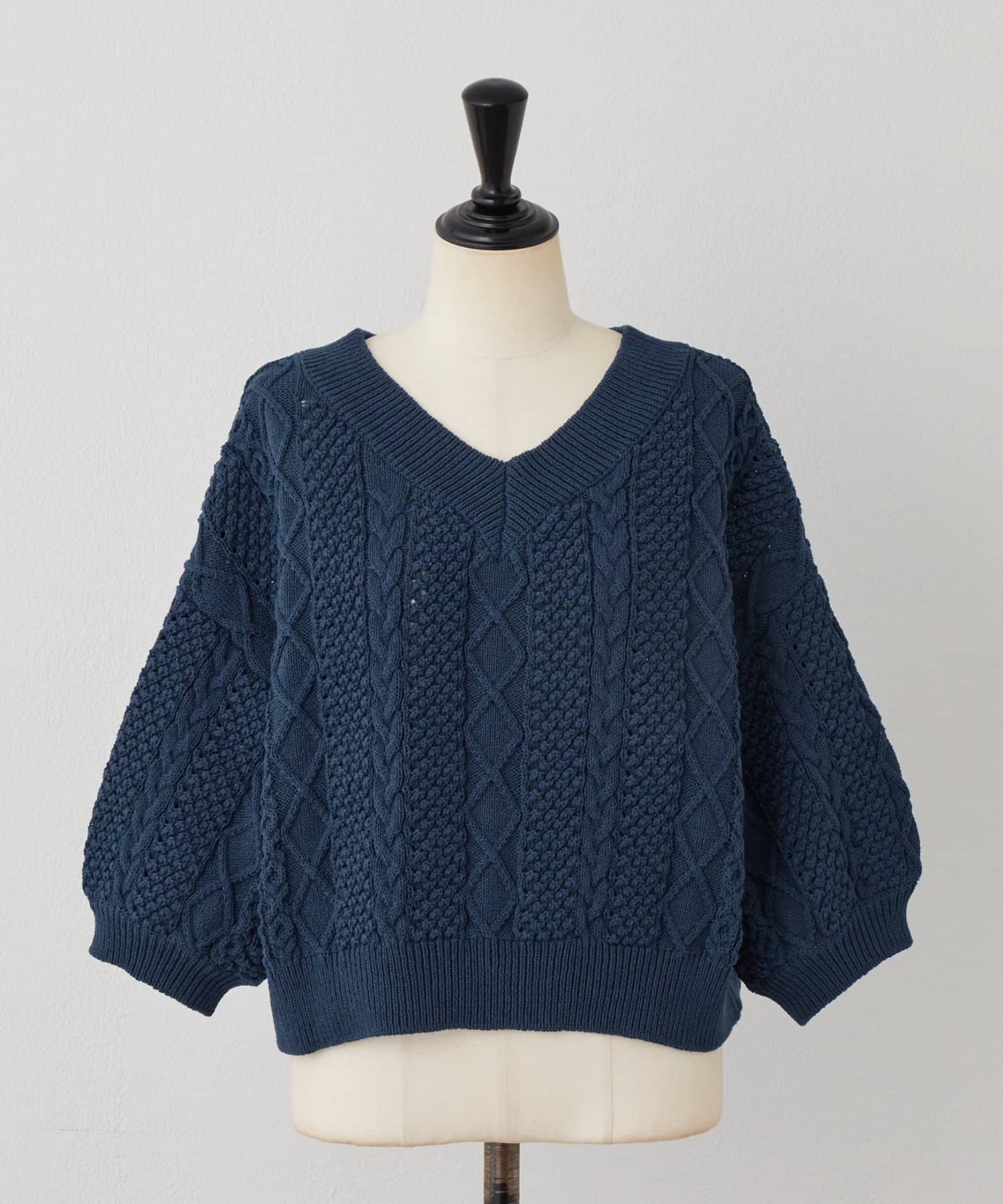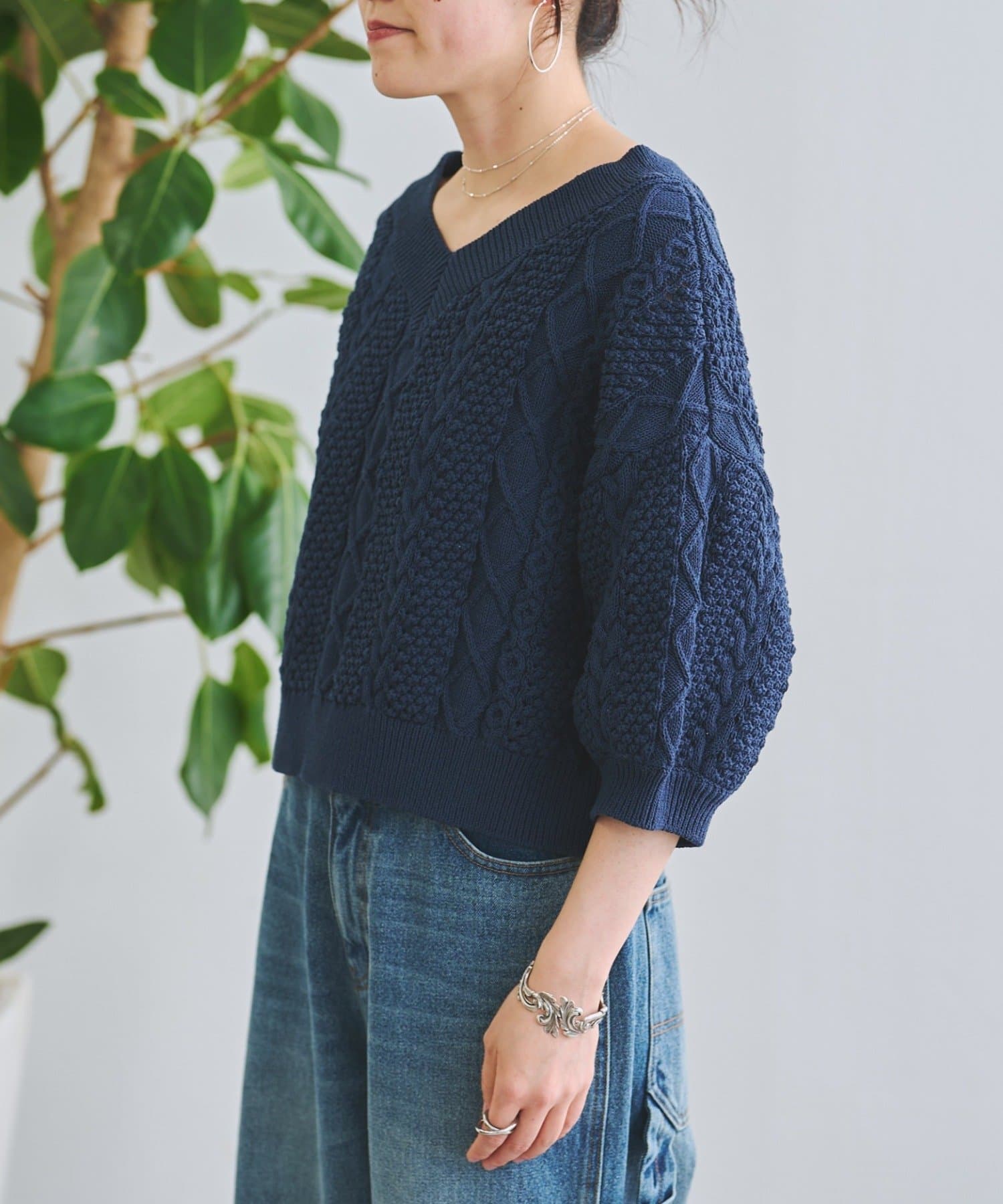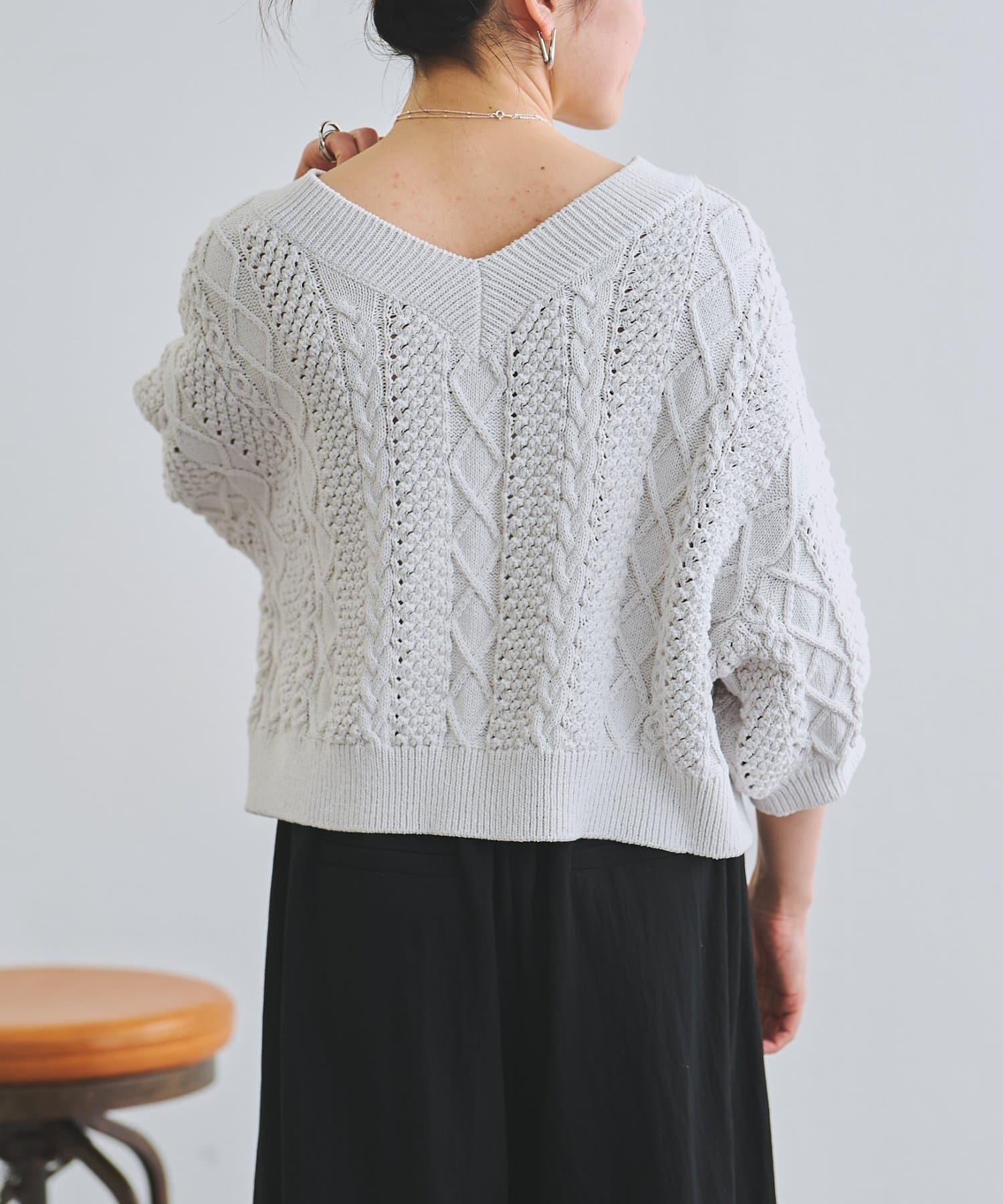 立体感のあるケーブル編みが目を惹く、表情豊かなニットプルオーバー。