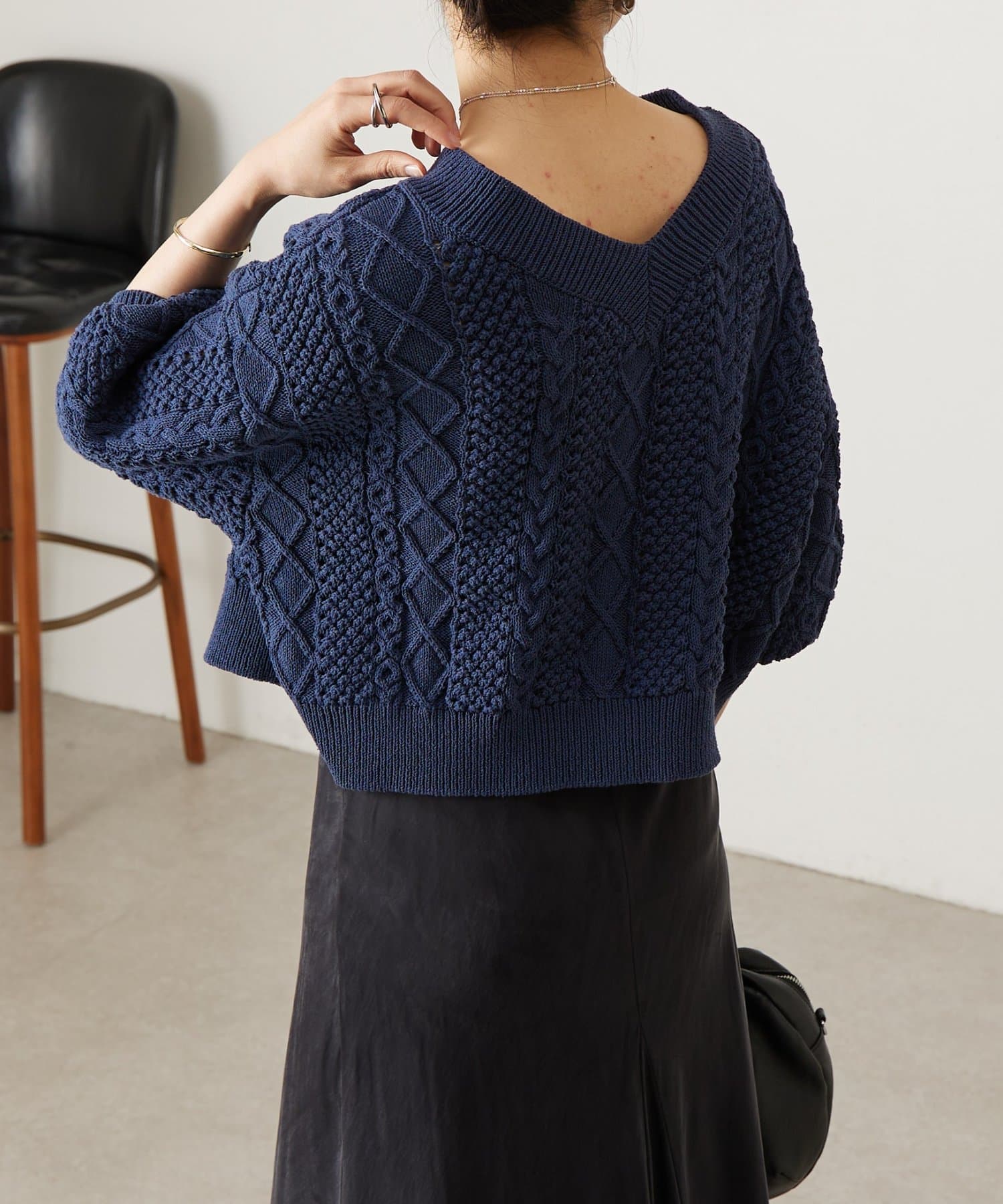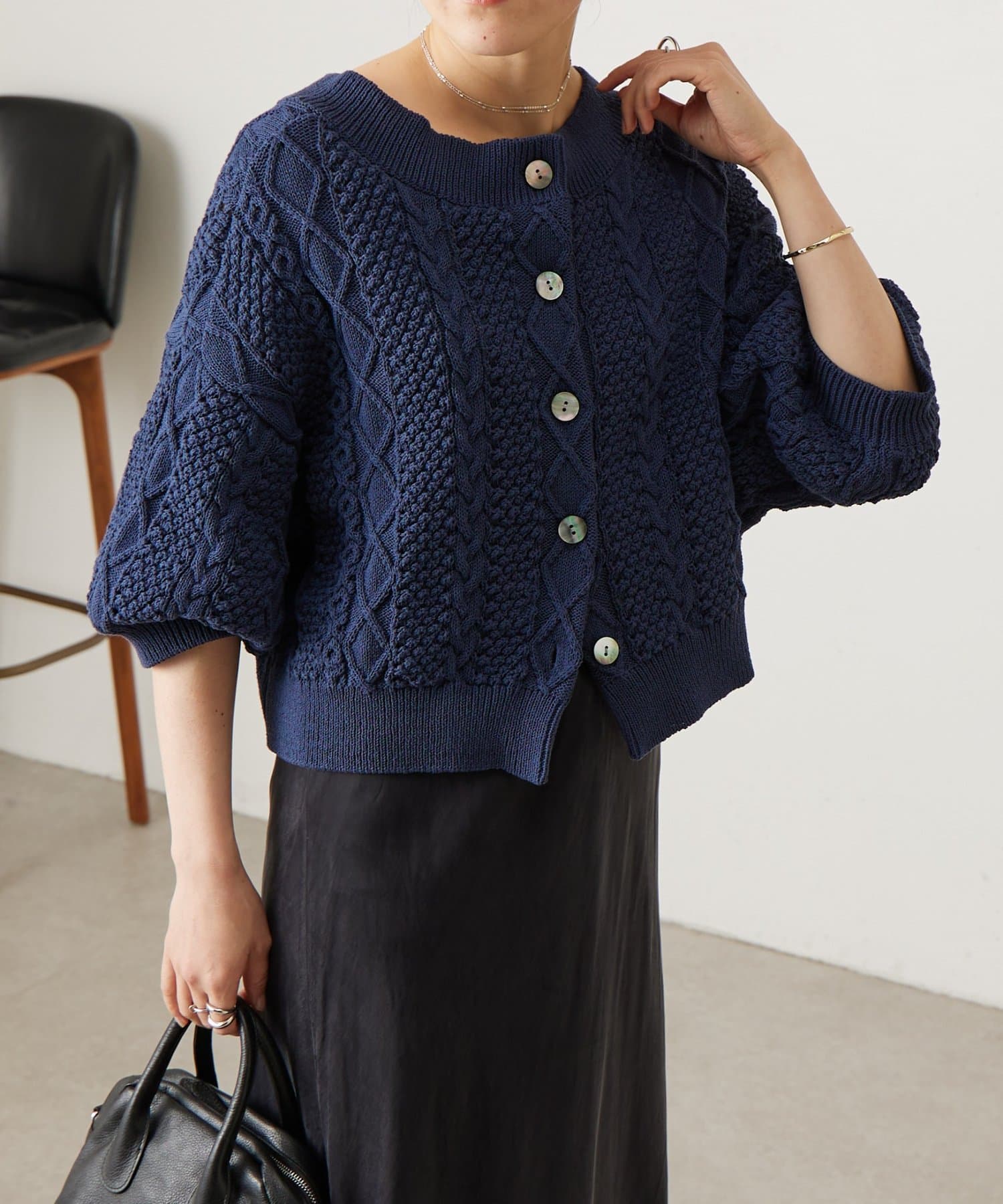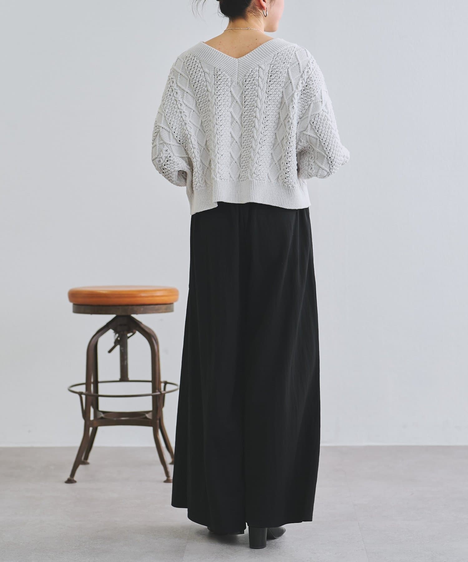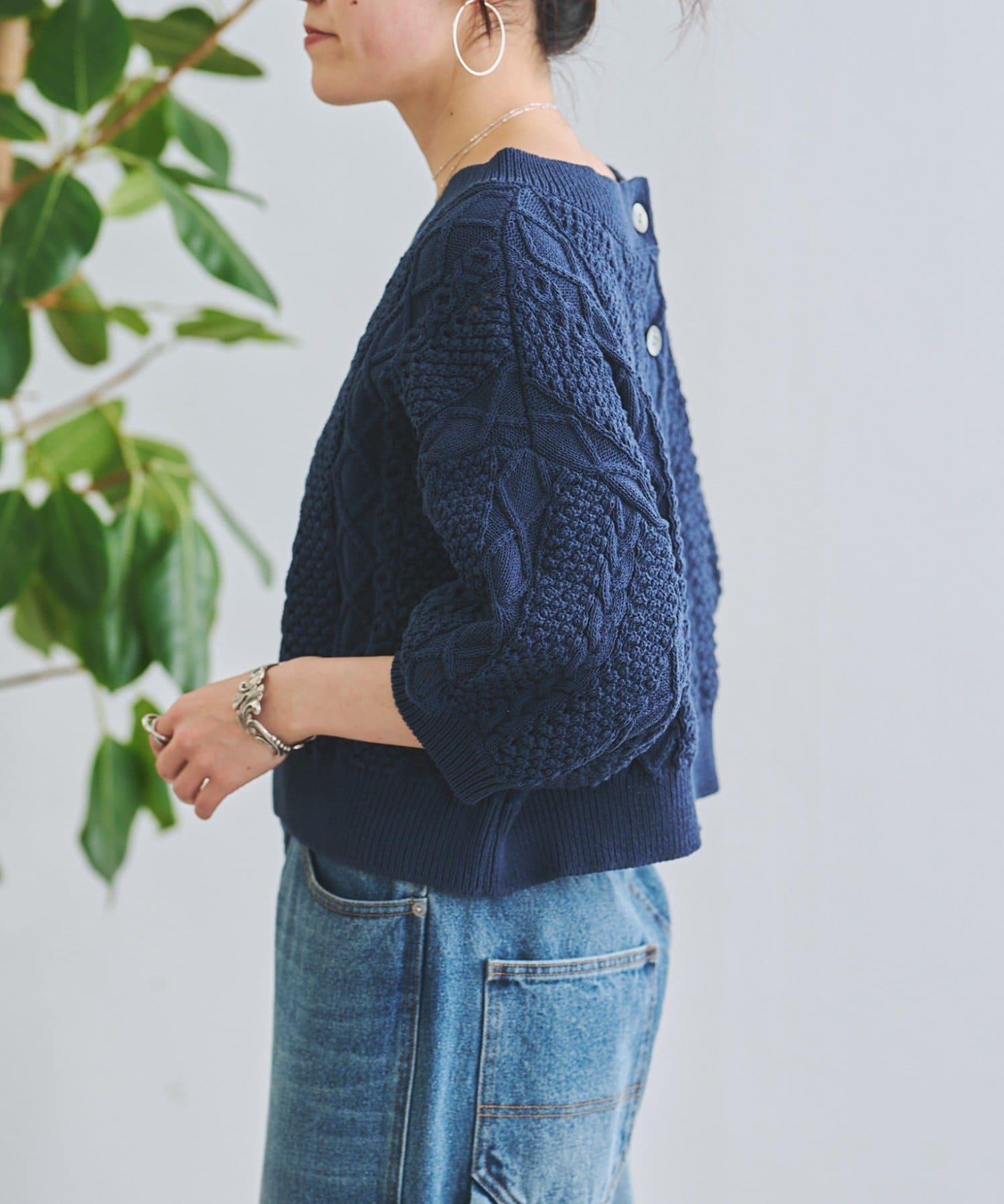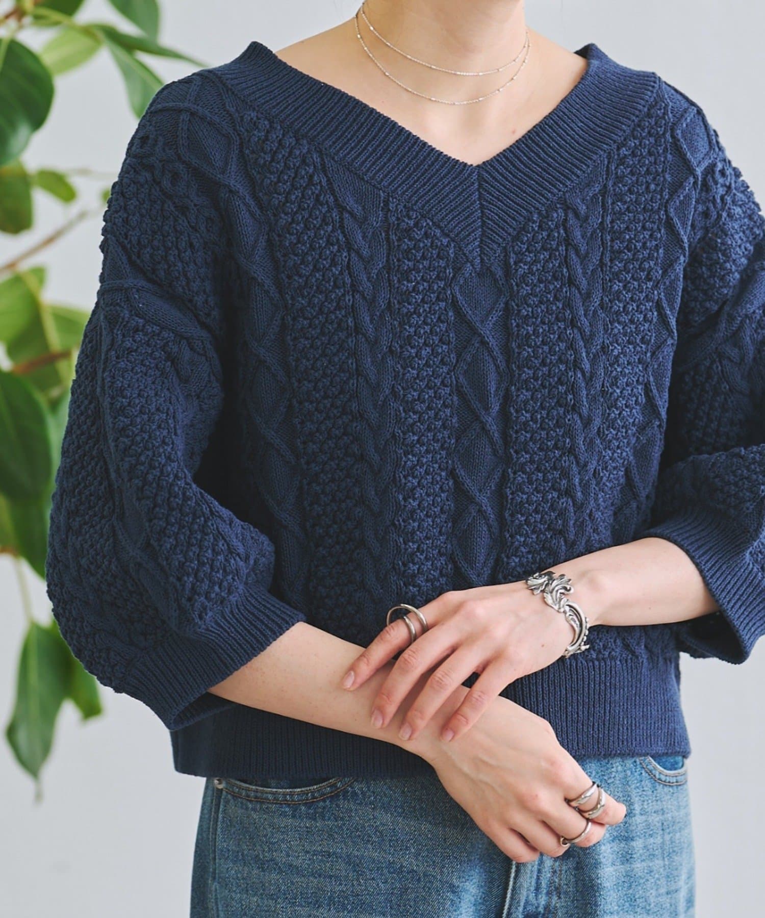立体感のあるケーブル編みが目を惹く、表情豊かなニットプルオーバー。