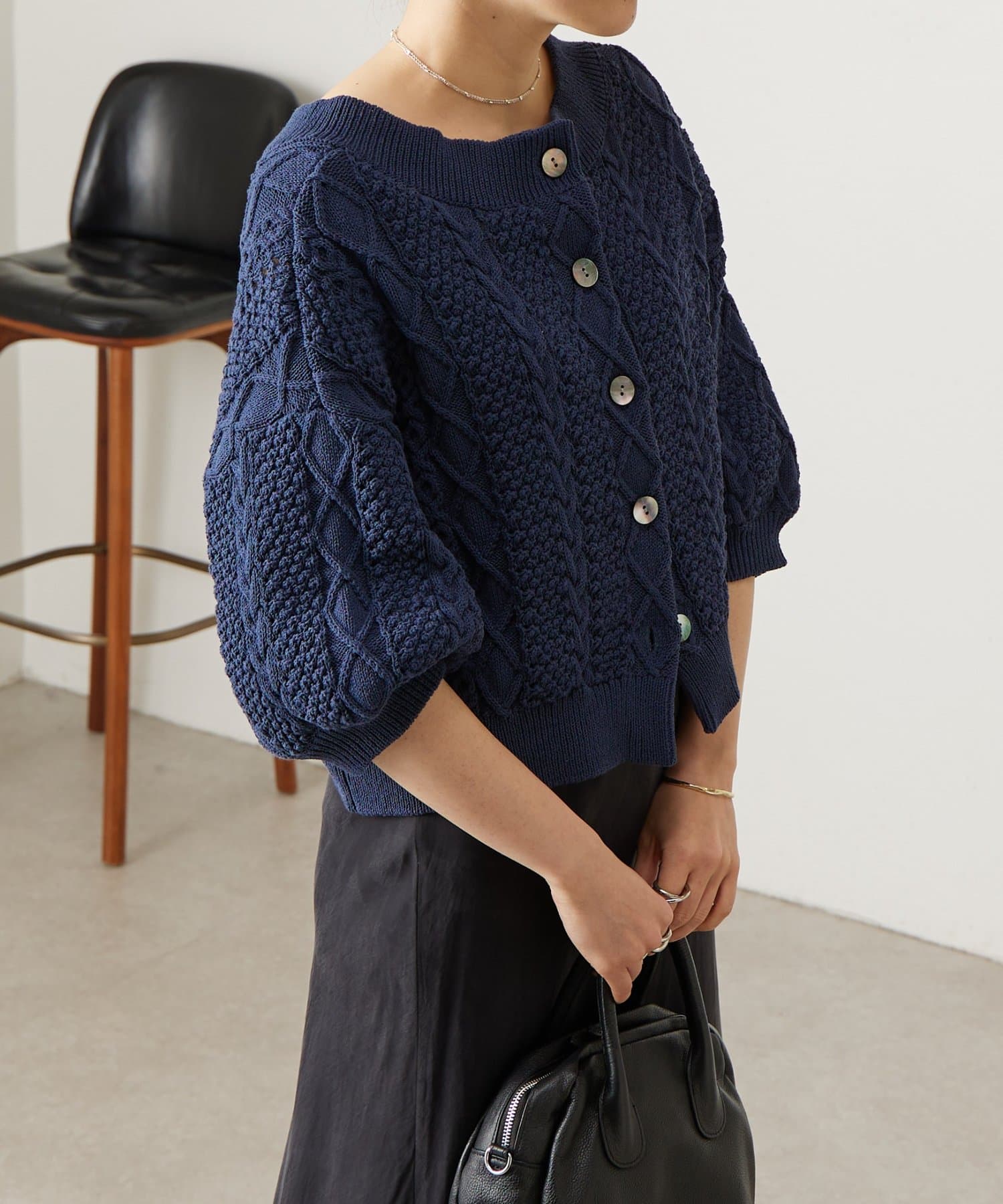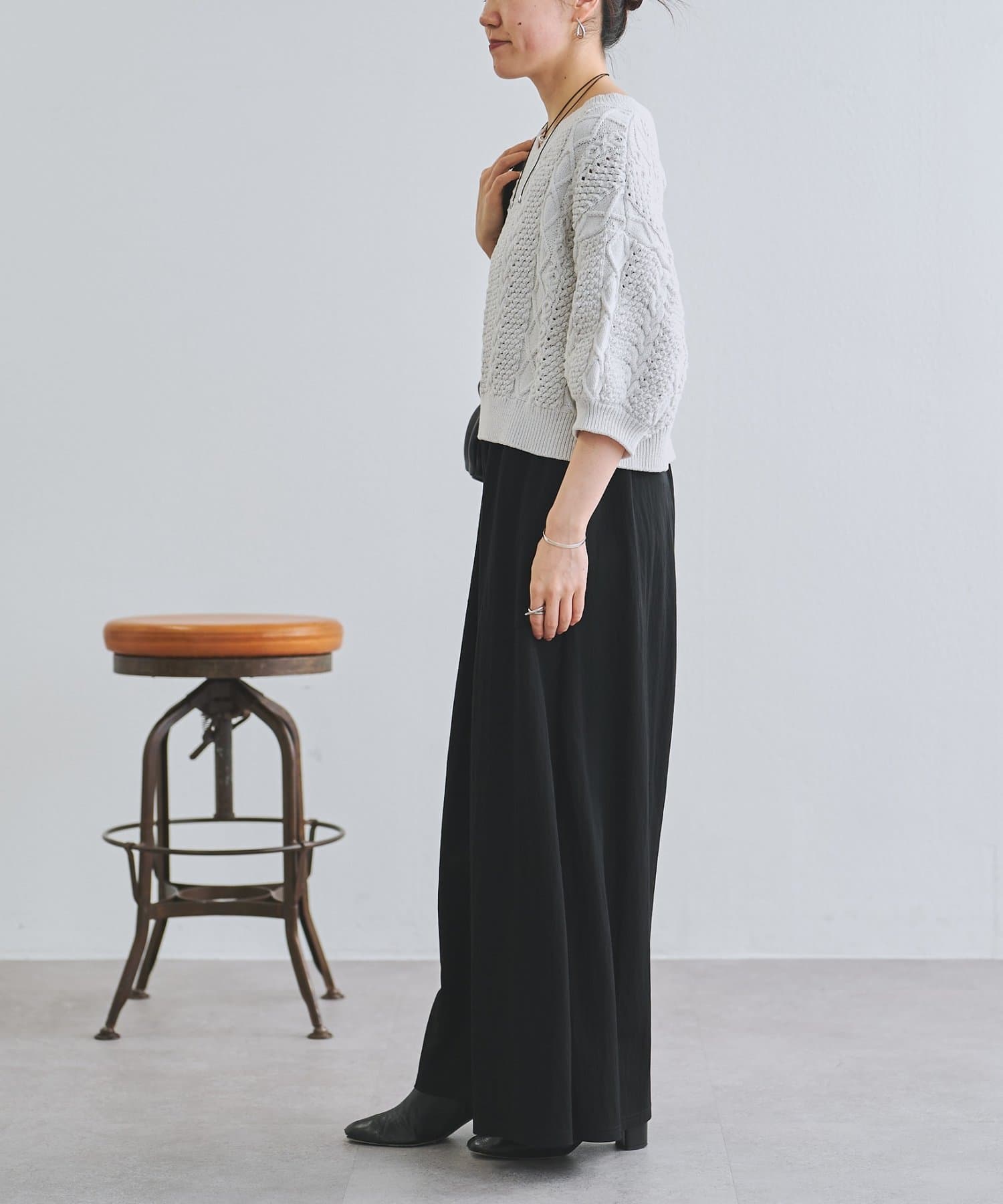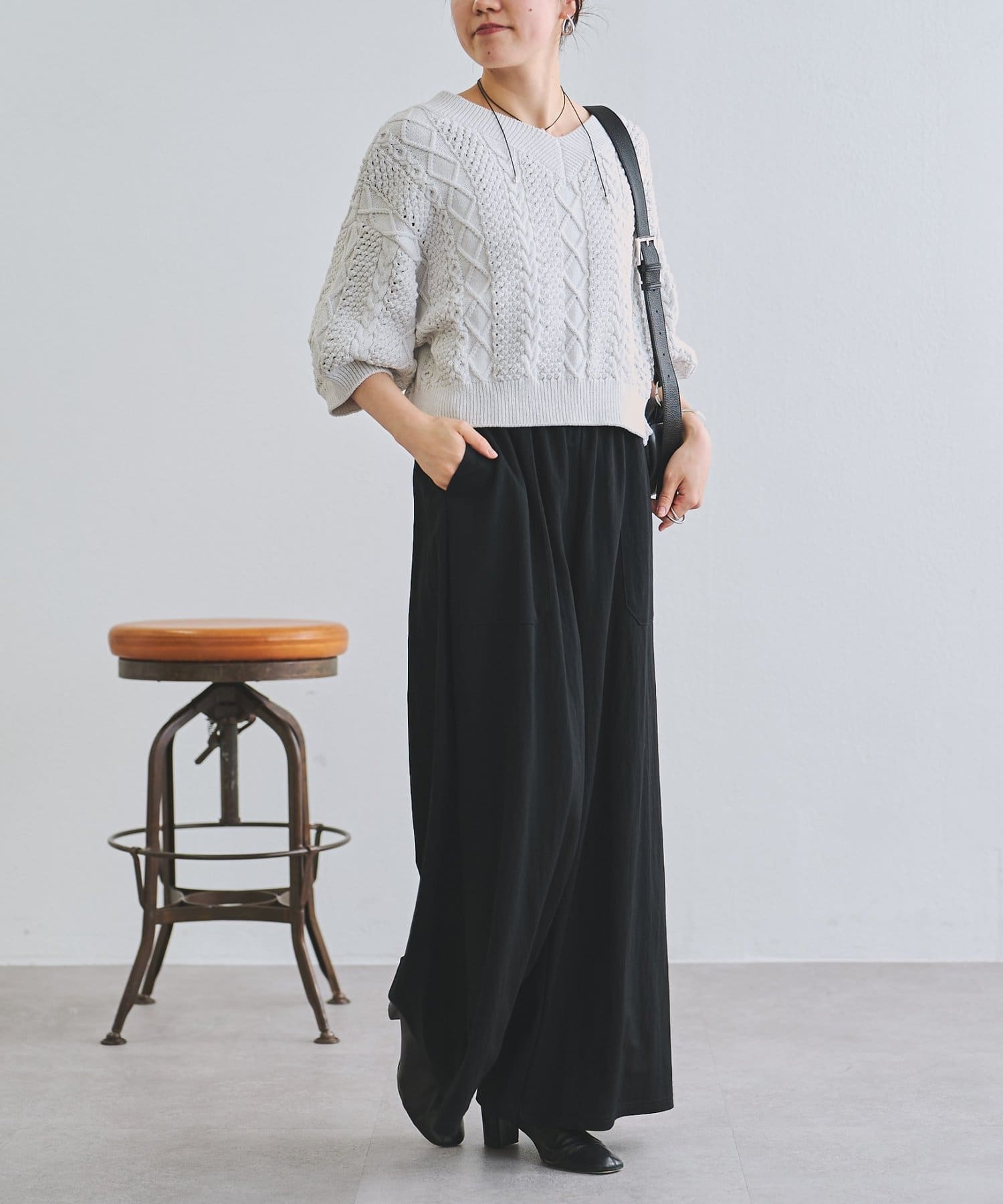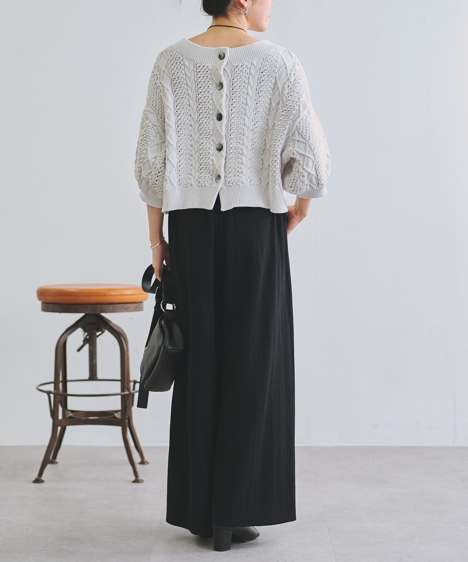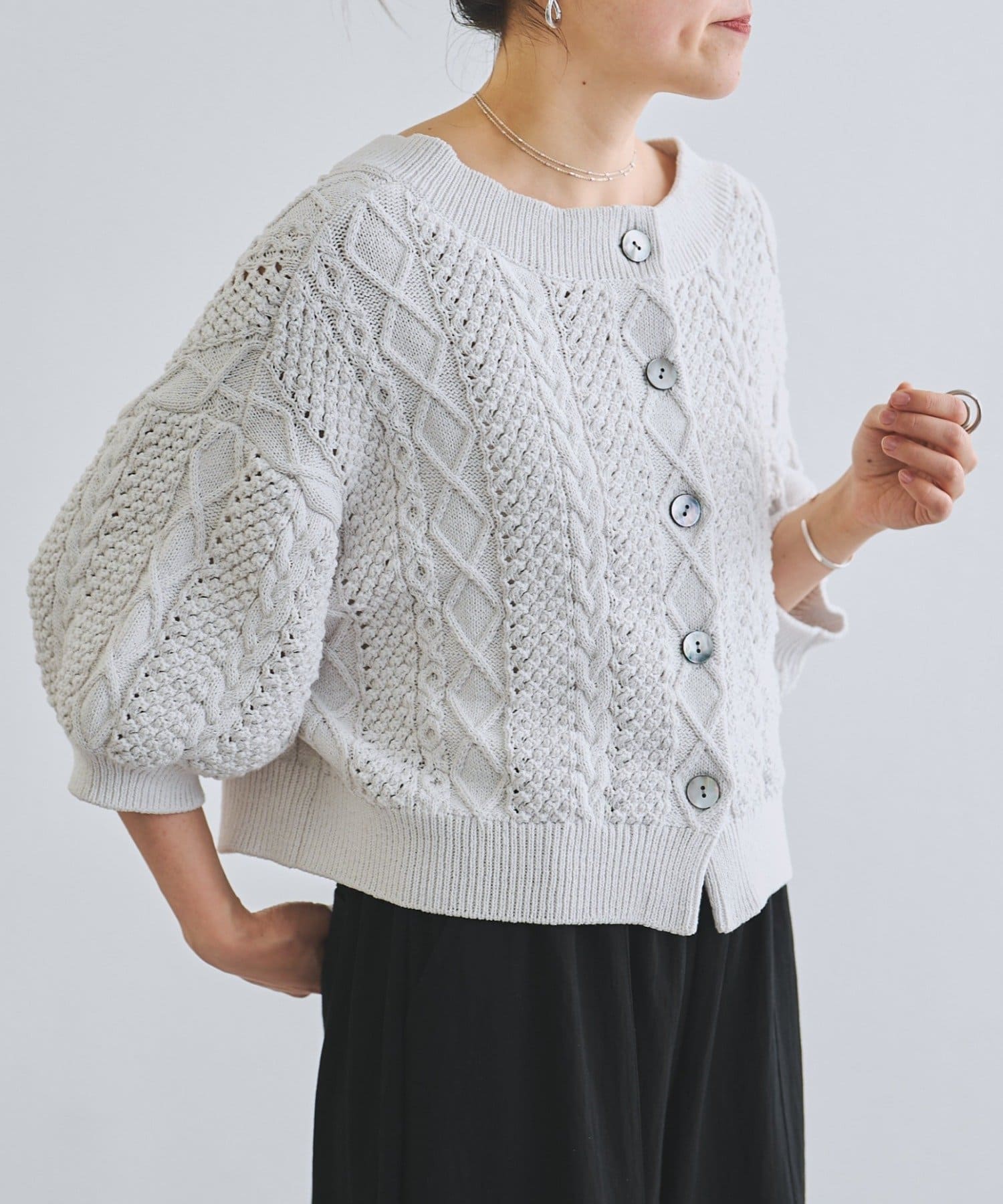 立体感のあるケーブル編みが目を惹く、表情豊かなニットプルオーバー。