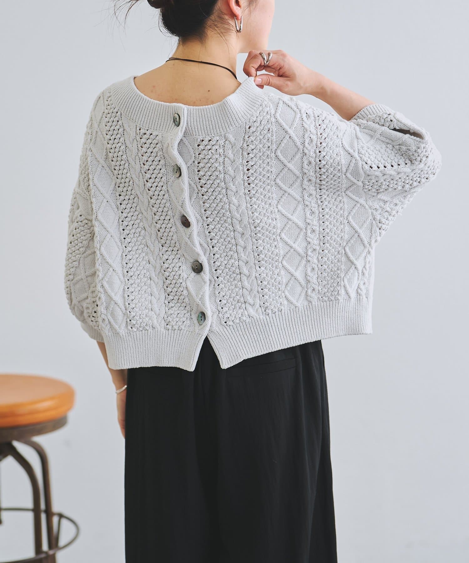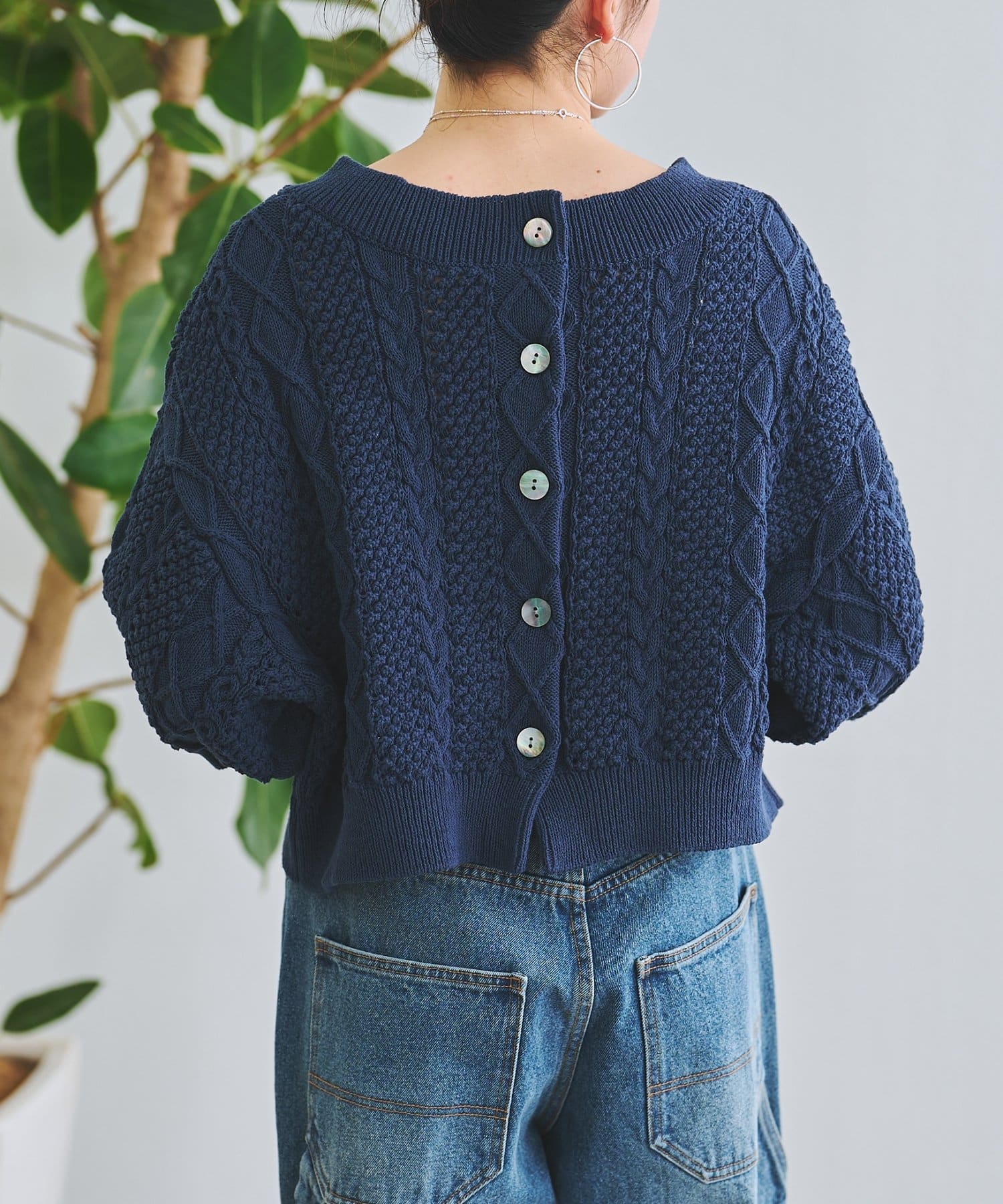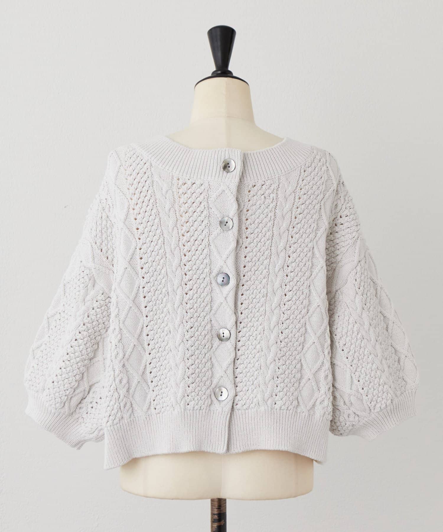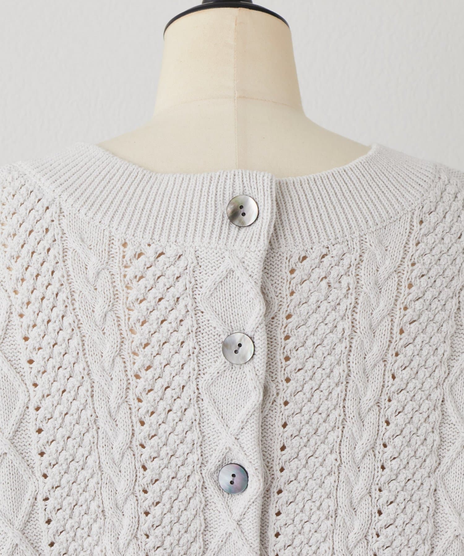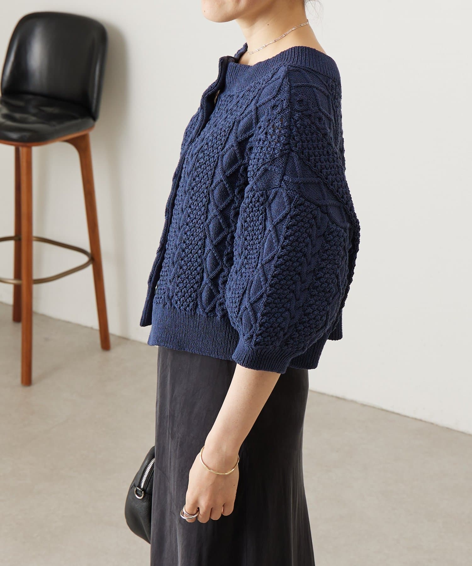 立体感のあるケーブル編みが目を惹く、表情豊かなニットプルオーバー。