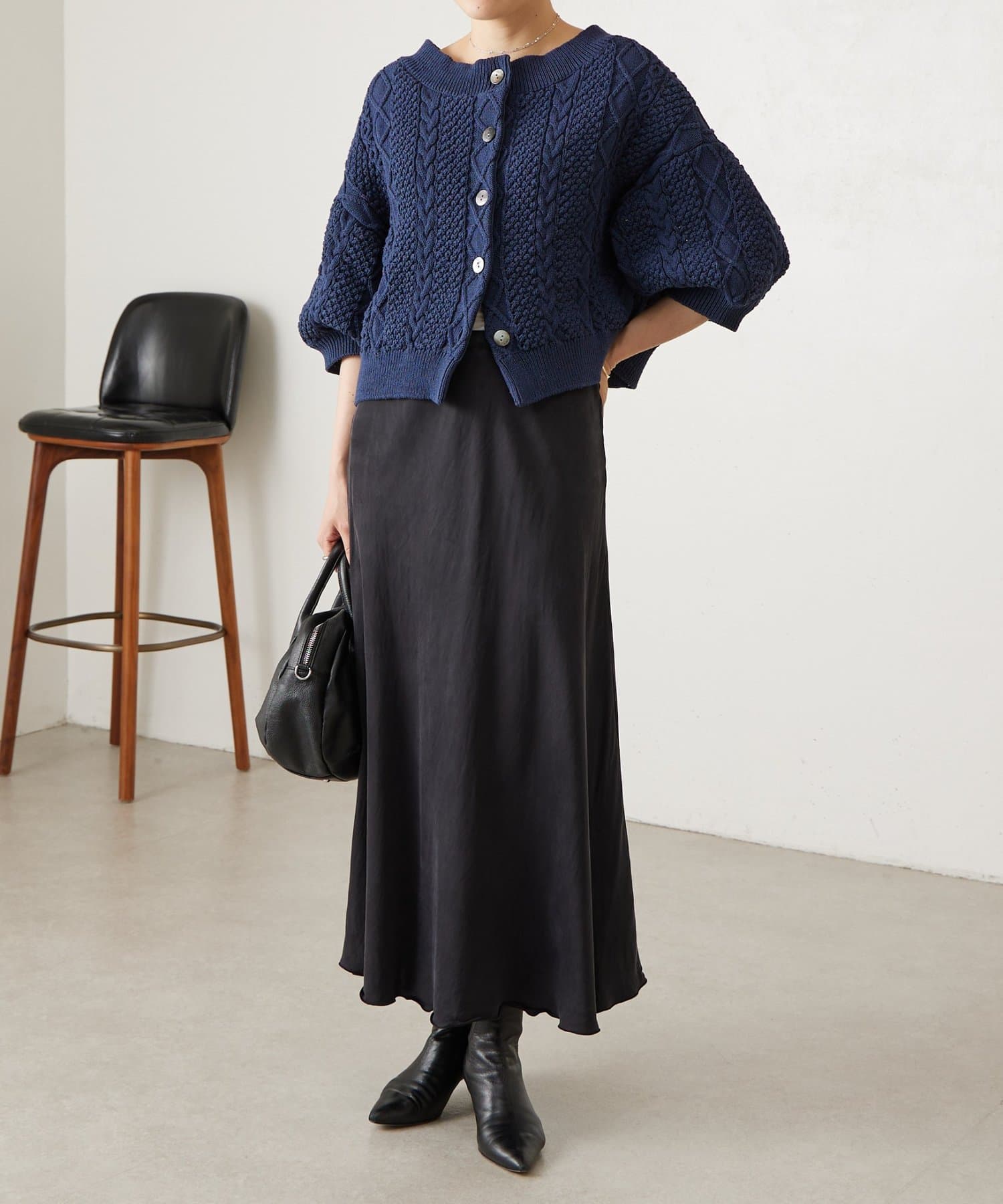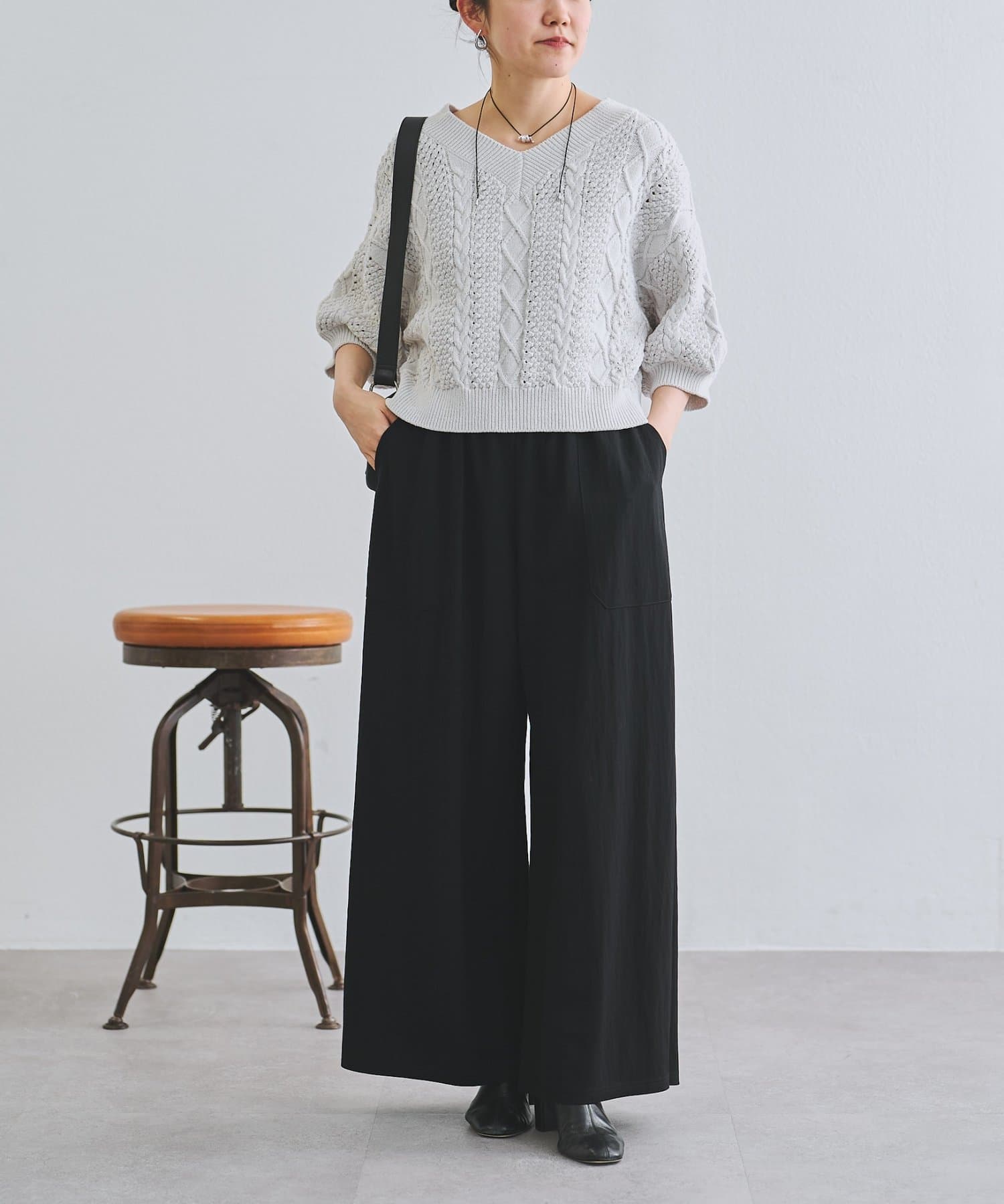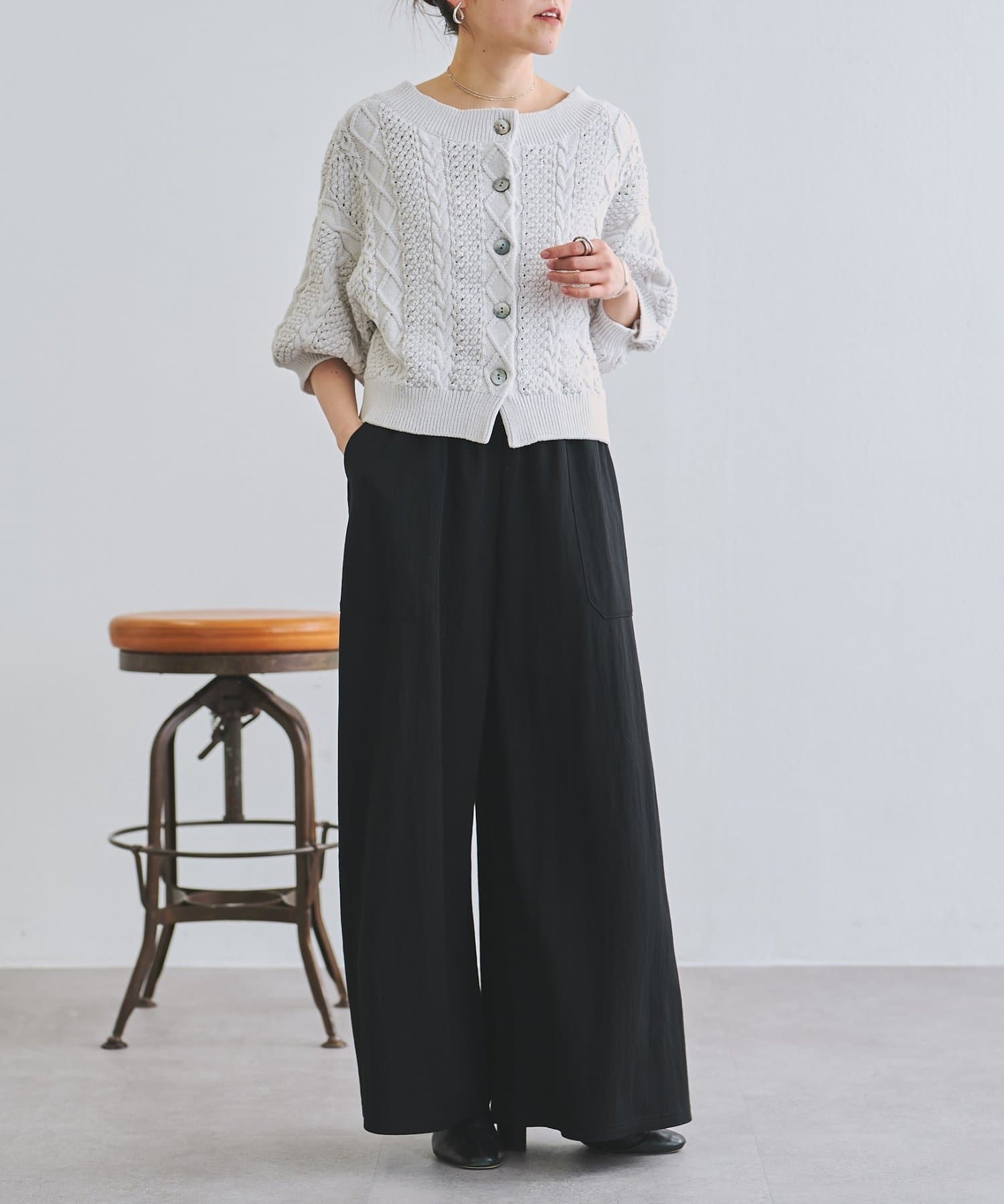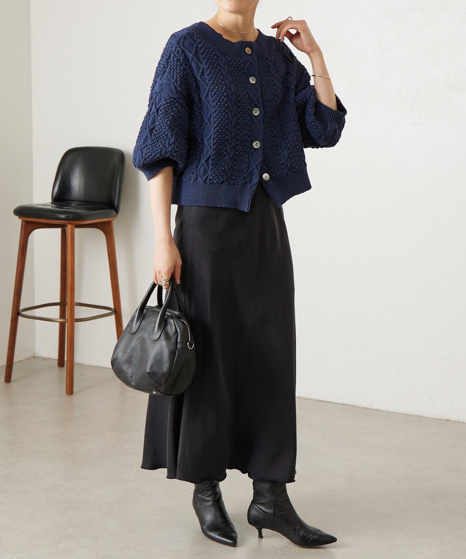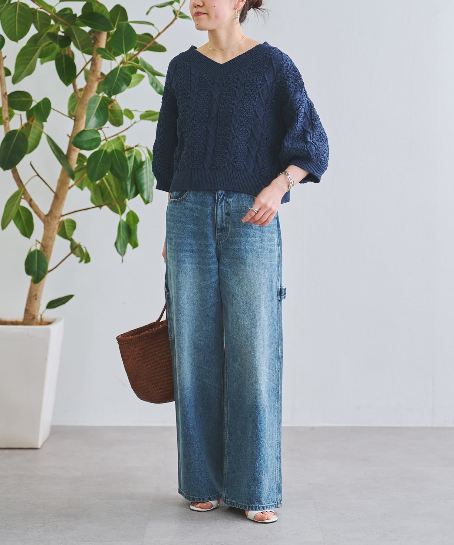 立体感のあるケーブル編みが目を惹く、表情豊かなニットプルオーバー。