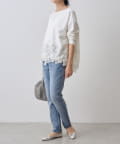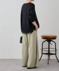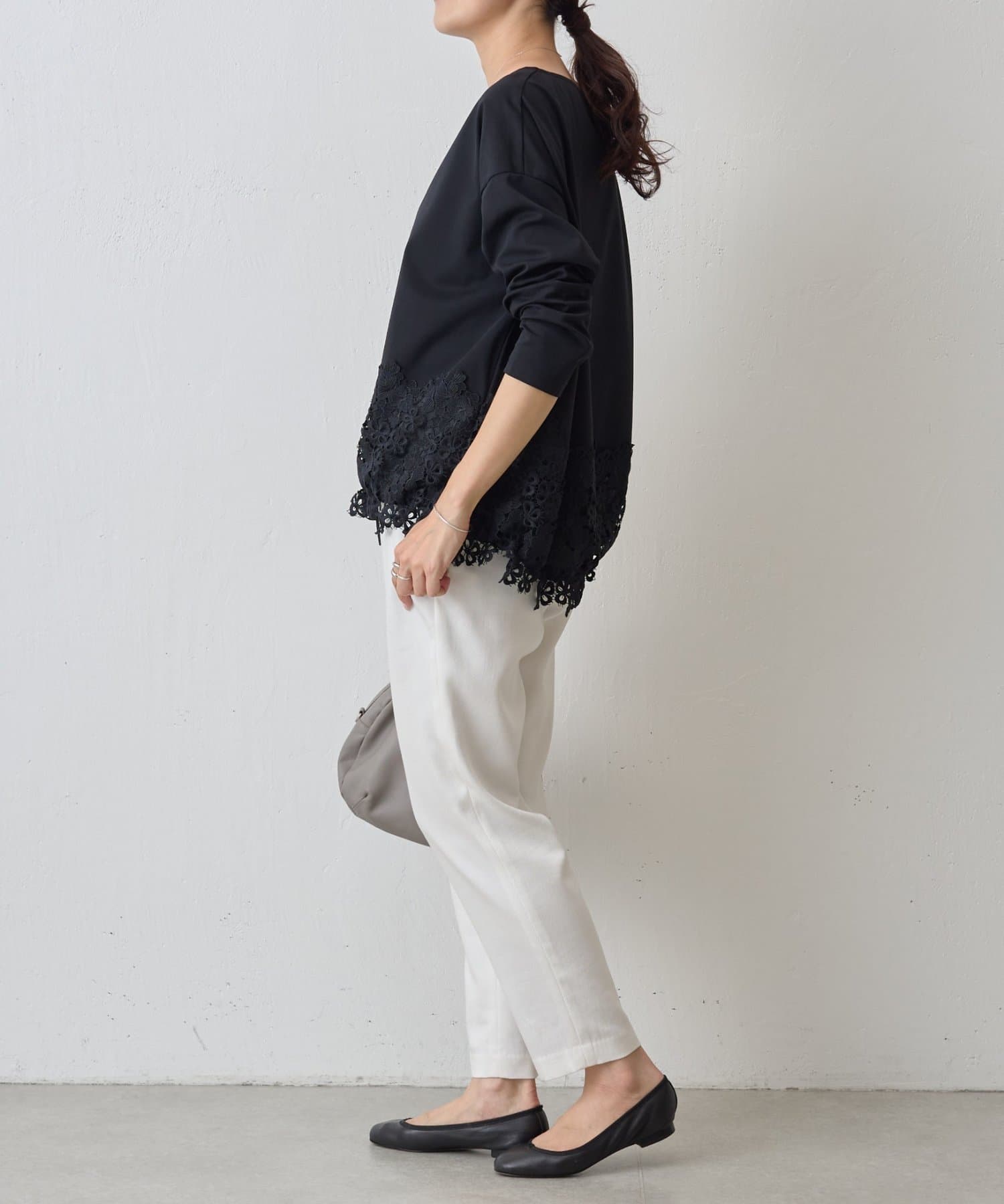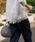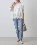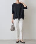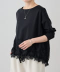 裾の絞りとレースがフェミニンな印象を添えるカットソー。