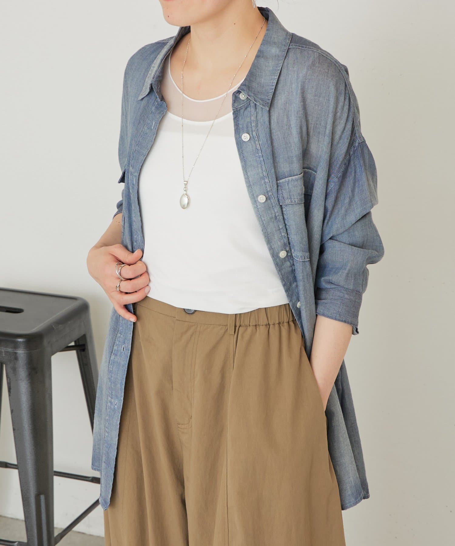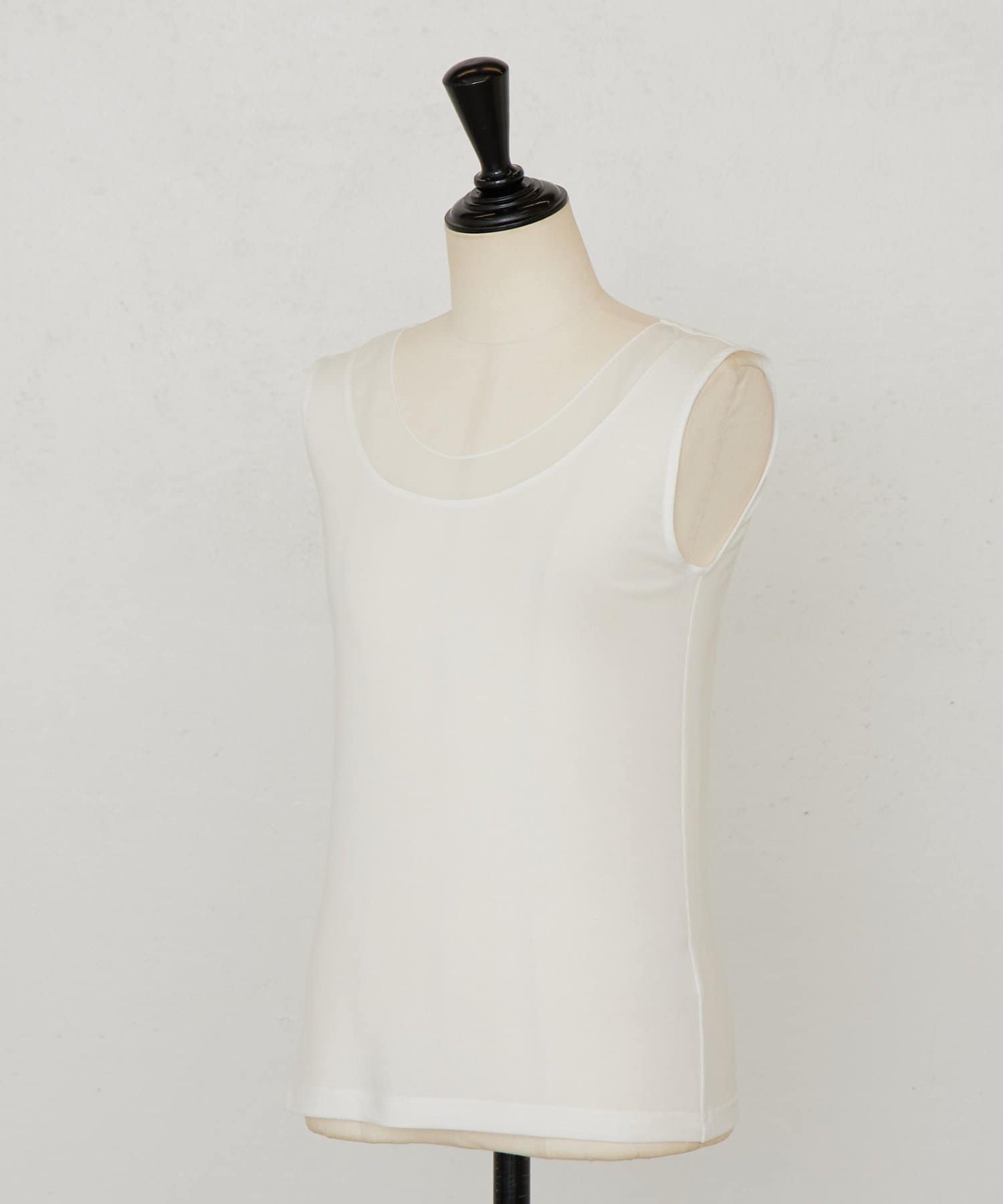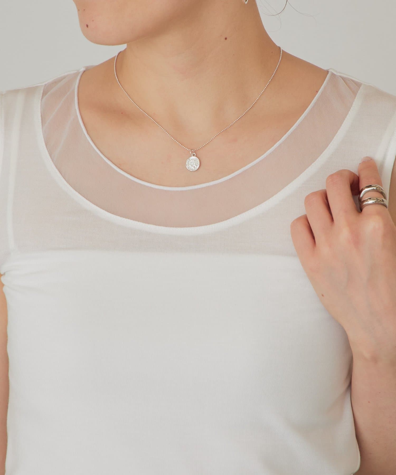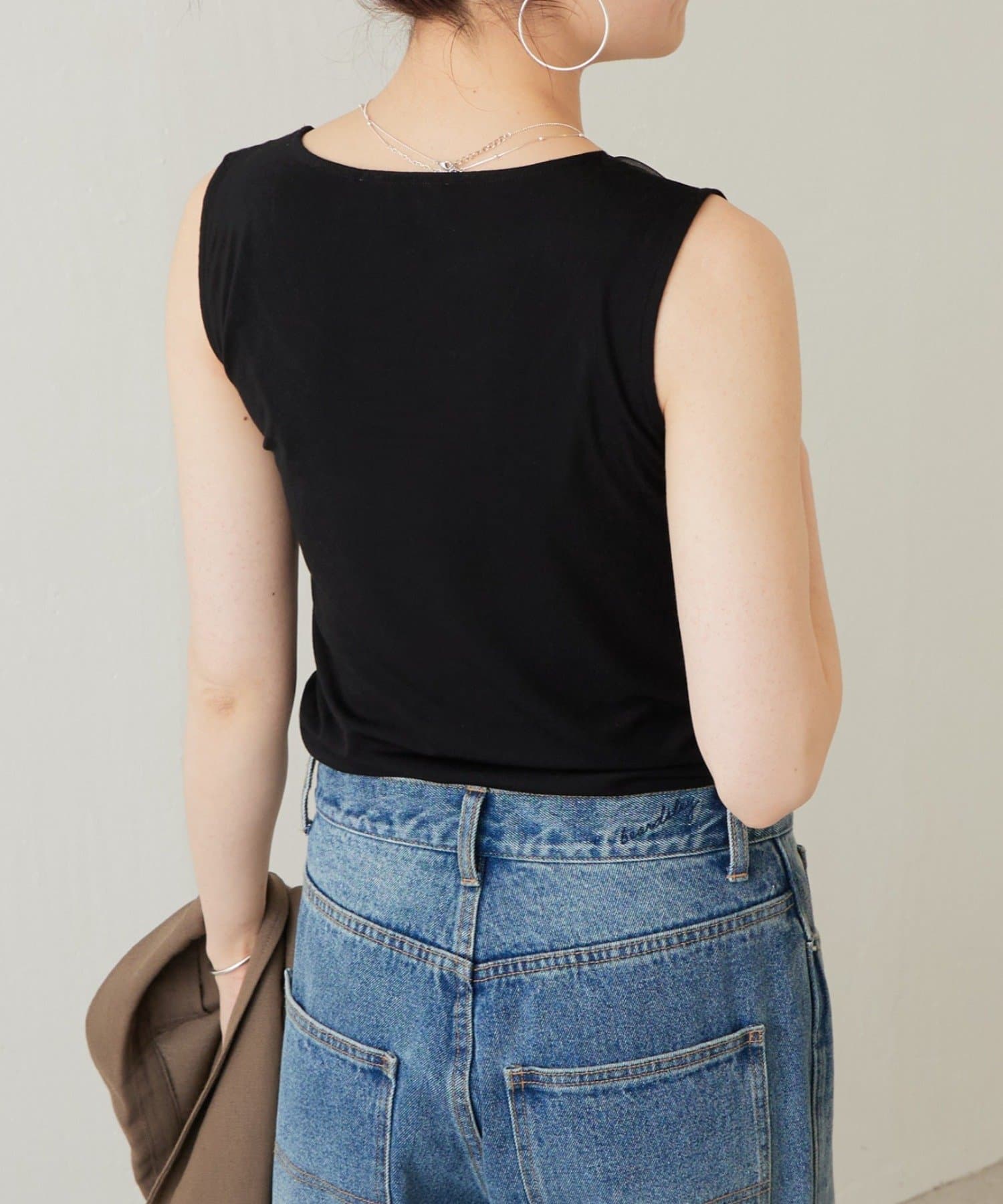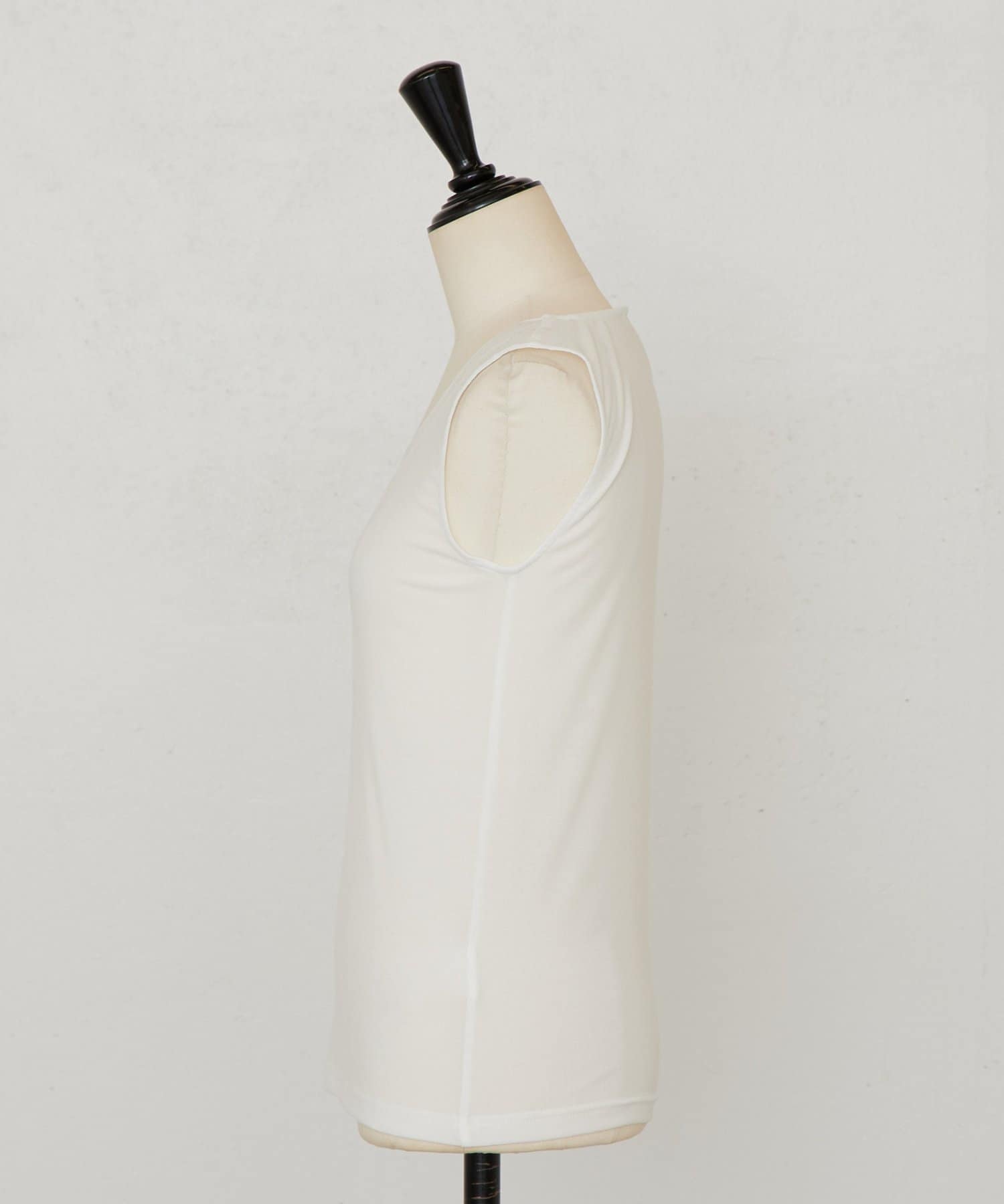 襟元のチュール切り替えが一枚でニュアンスのあるタンクトップ。