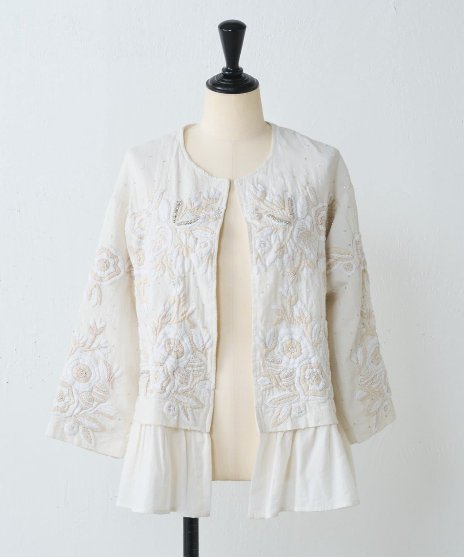 TOP > BEARDSLEY > レディース > ジャケット/アウター > ノーカラージャケット > 《2/12(木)12:00予約開始》ハンド刺繍裾フリルジャケット