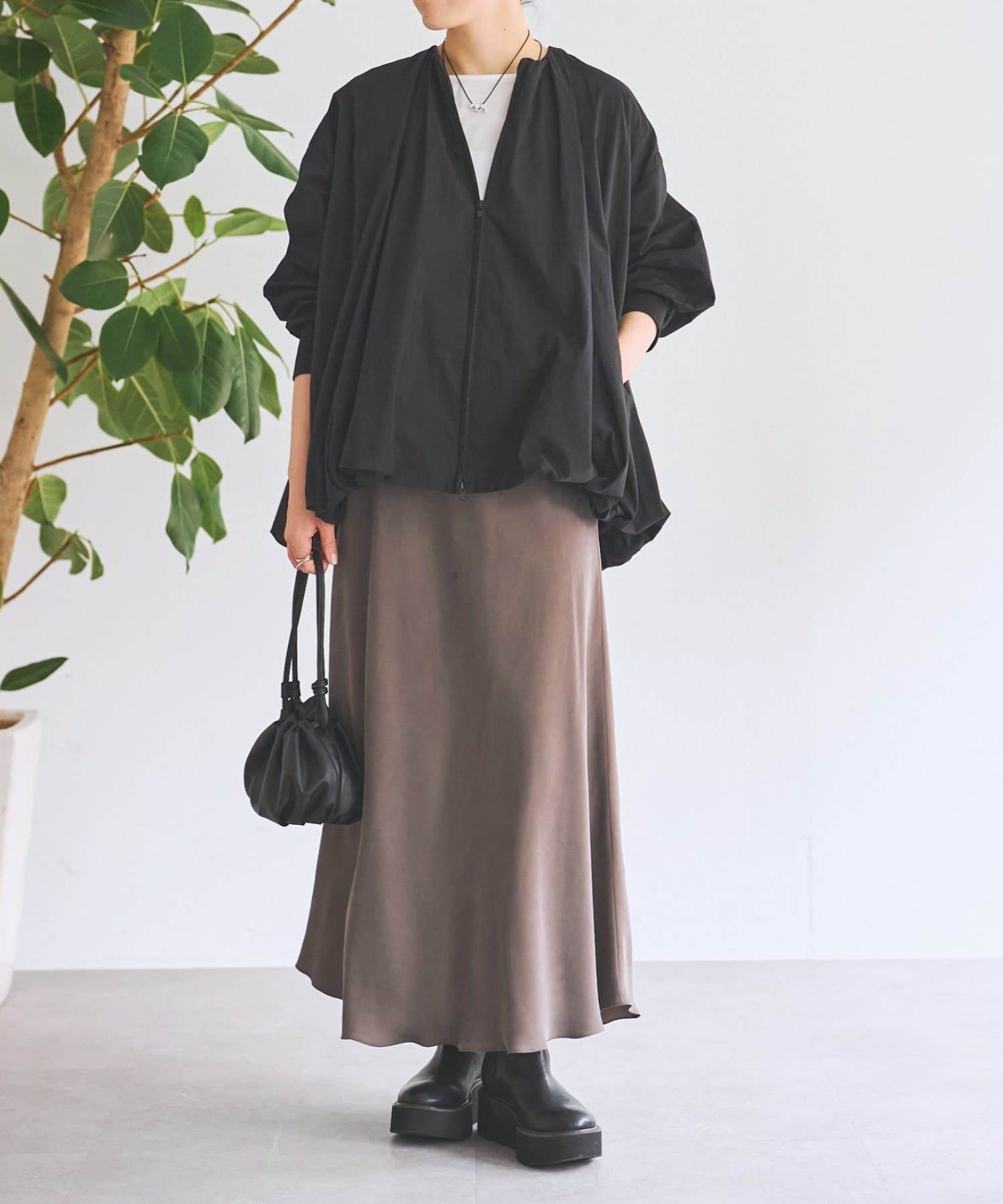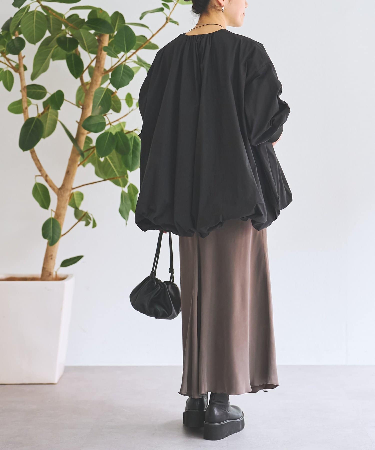 ギャザーをふんだんに取り入れ、立体感あるシルエットが目を引くバルーンブルゾン。