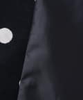 衿元はノーカラーですっきりと。腰回りがかくれるハーフ丈です。