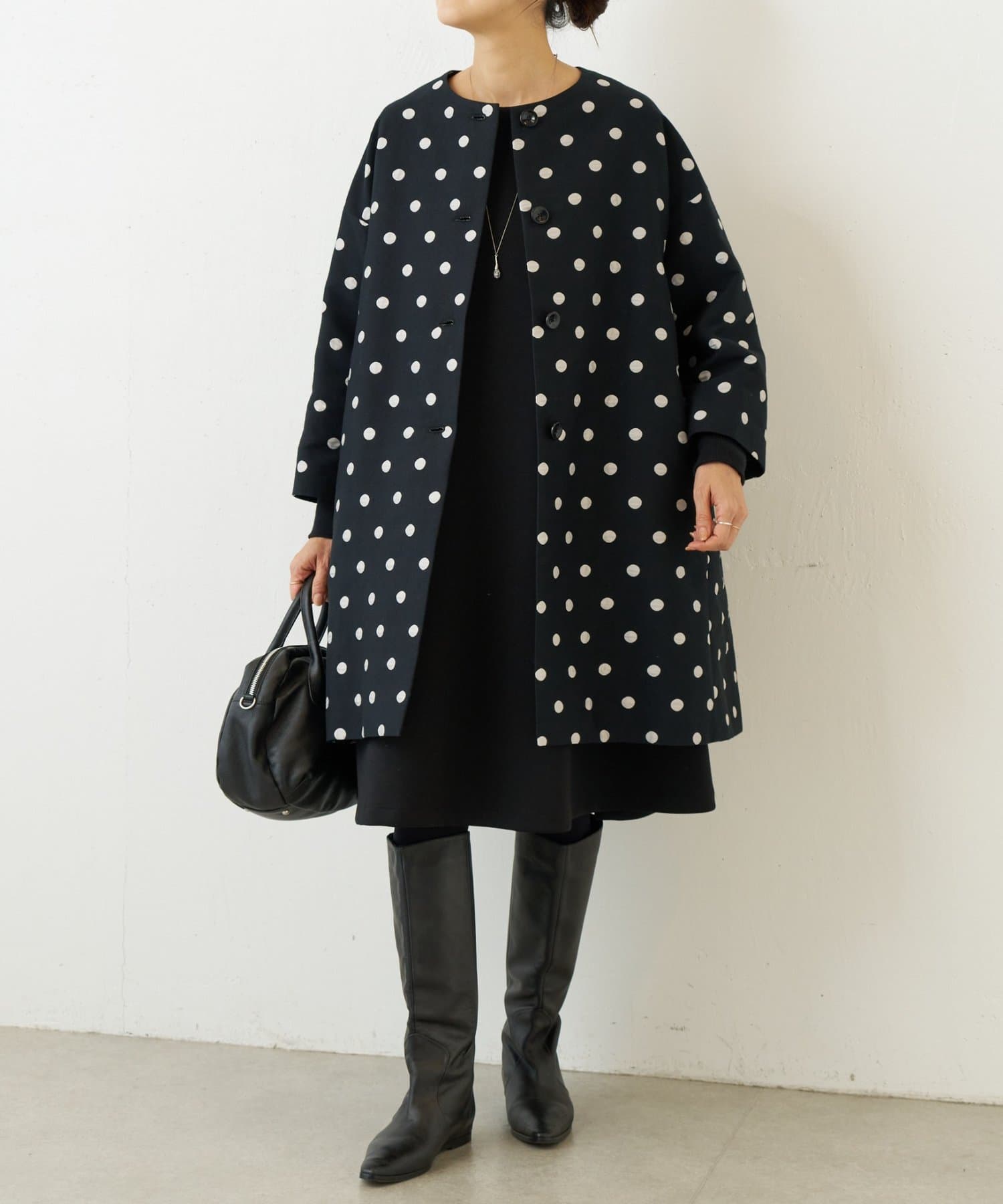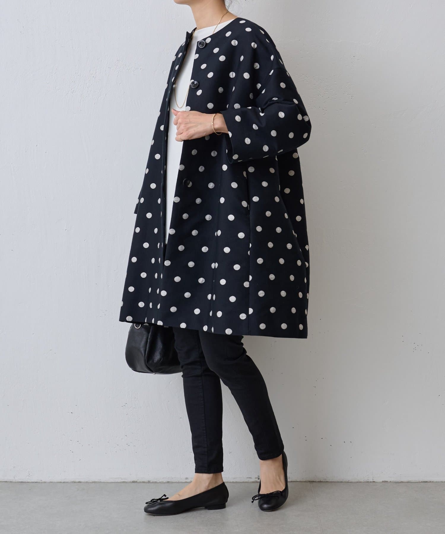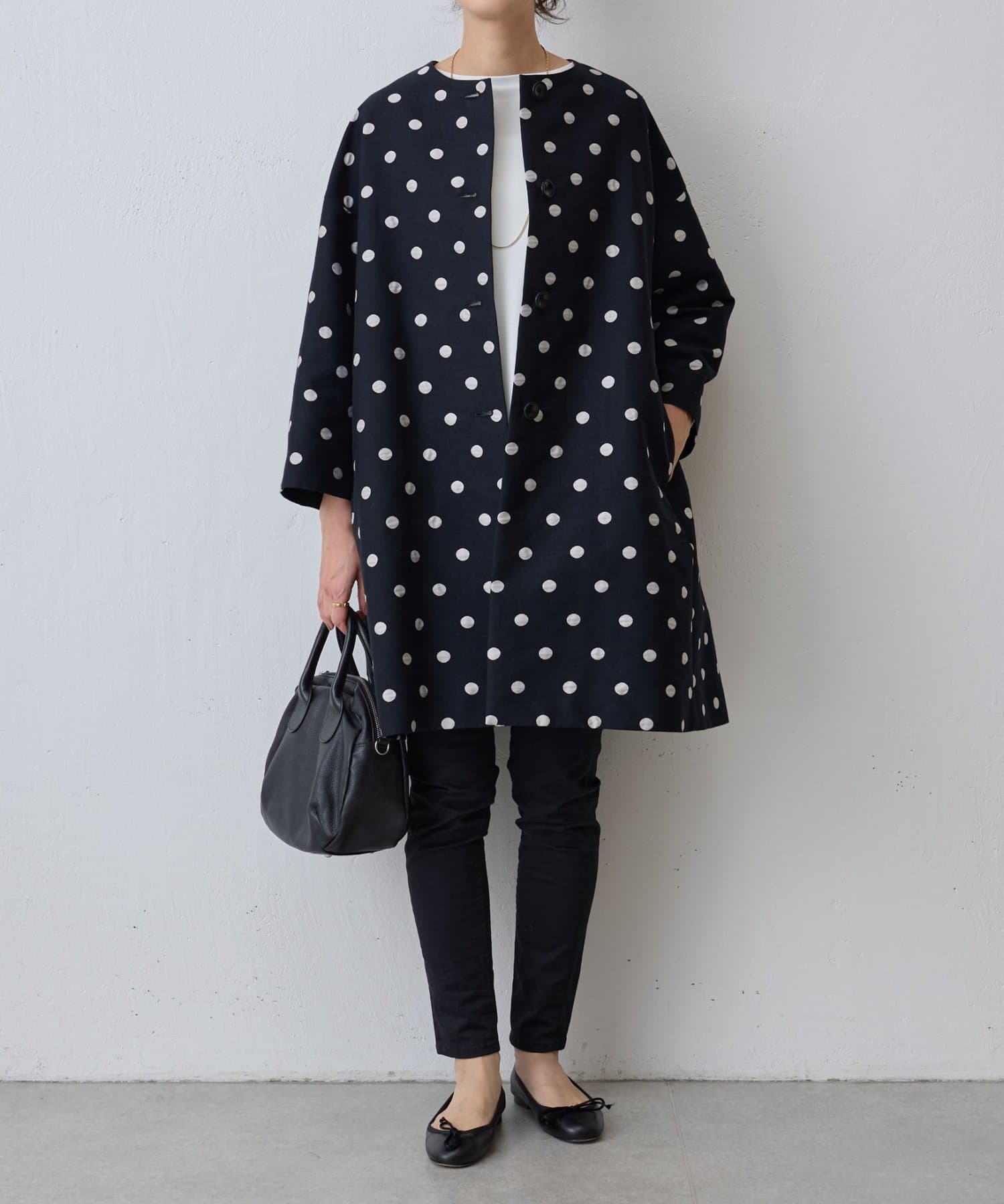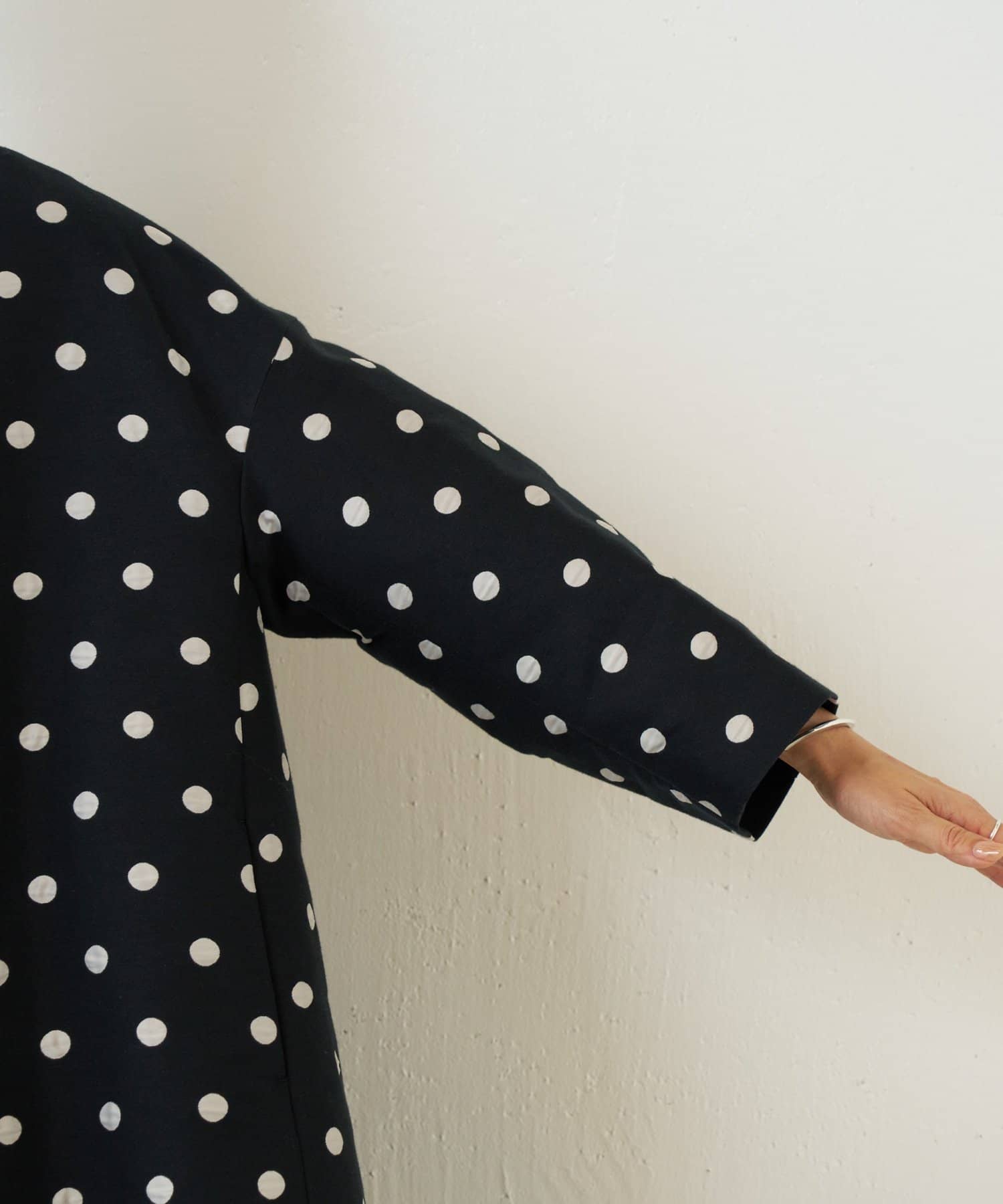 大きすぎないドットと、ホワイトではなく、グレージュのような色味のドット柄なのでシックにまとまります。