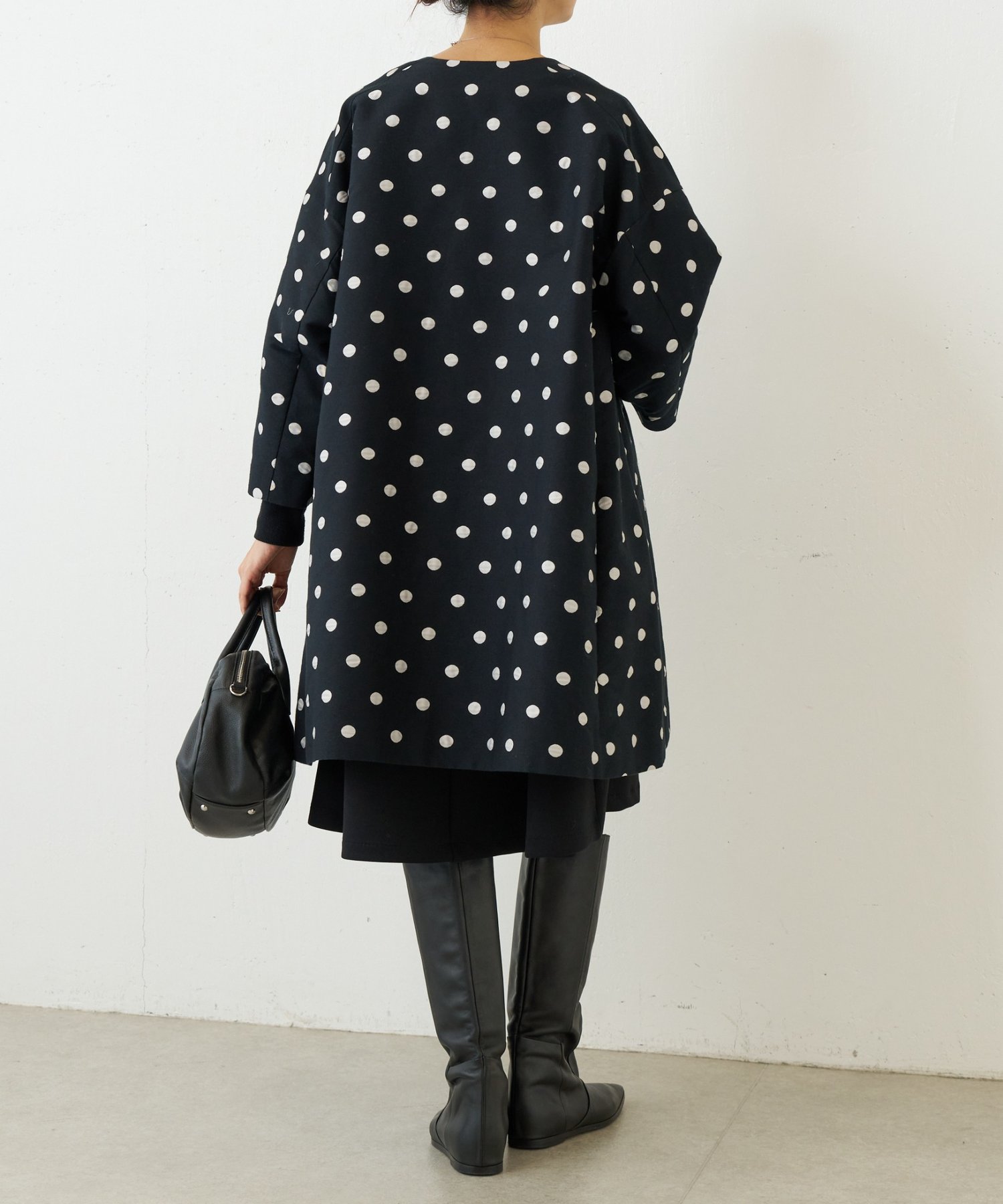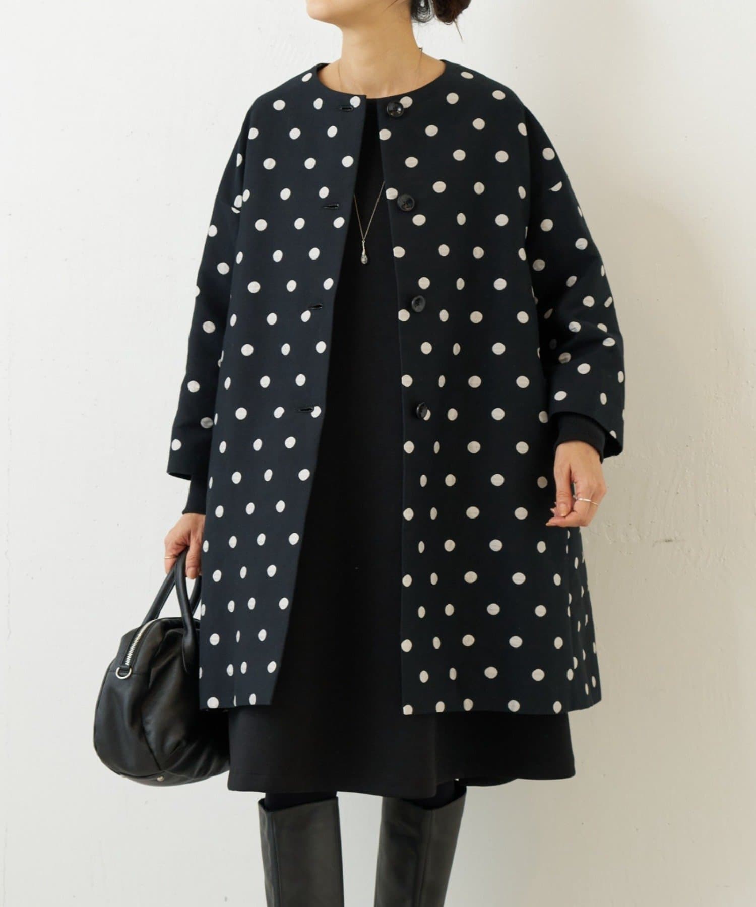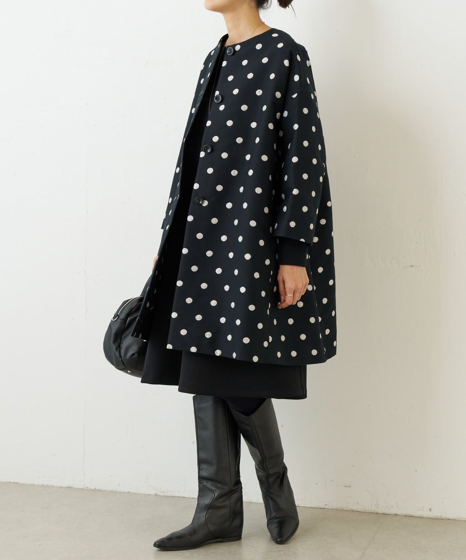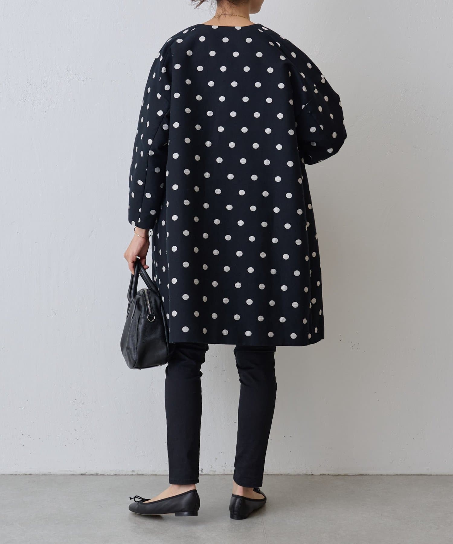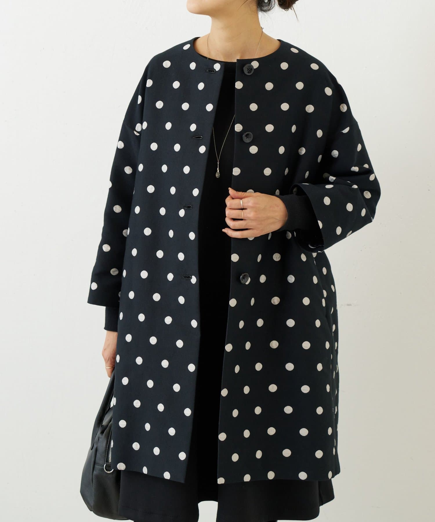 大きすぎないドットと、ホワイトではなく、グレージュのような色味のドット柄なのでシックにまとまります。