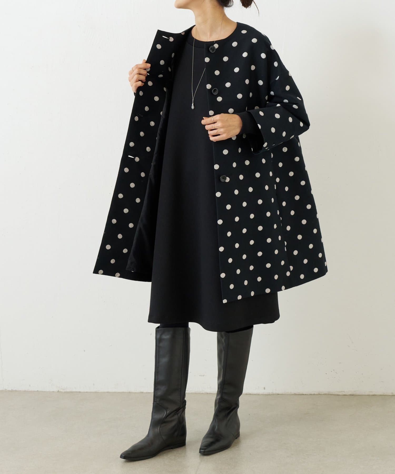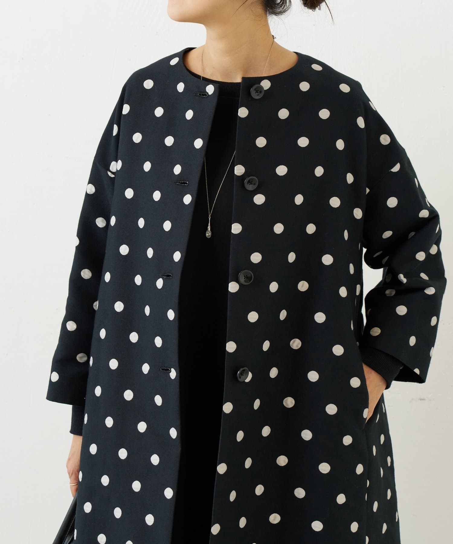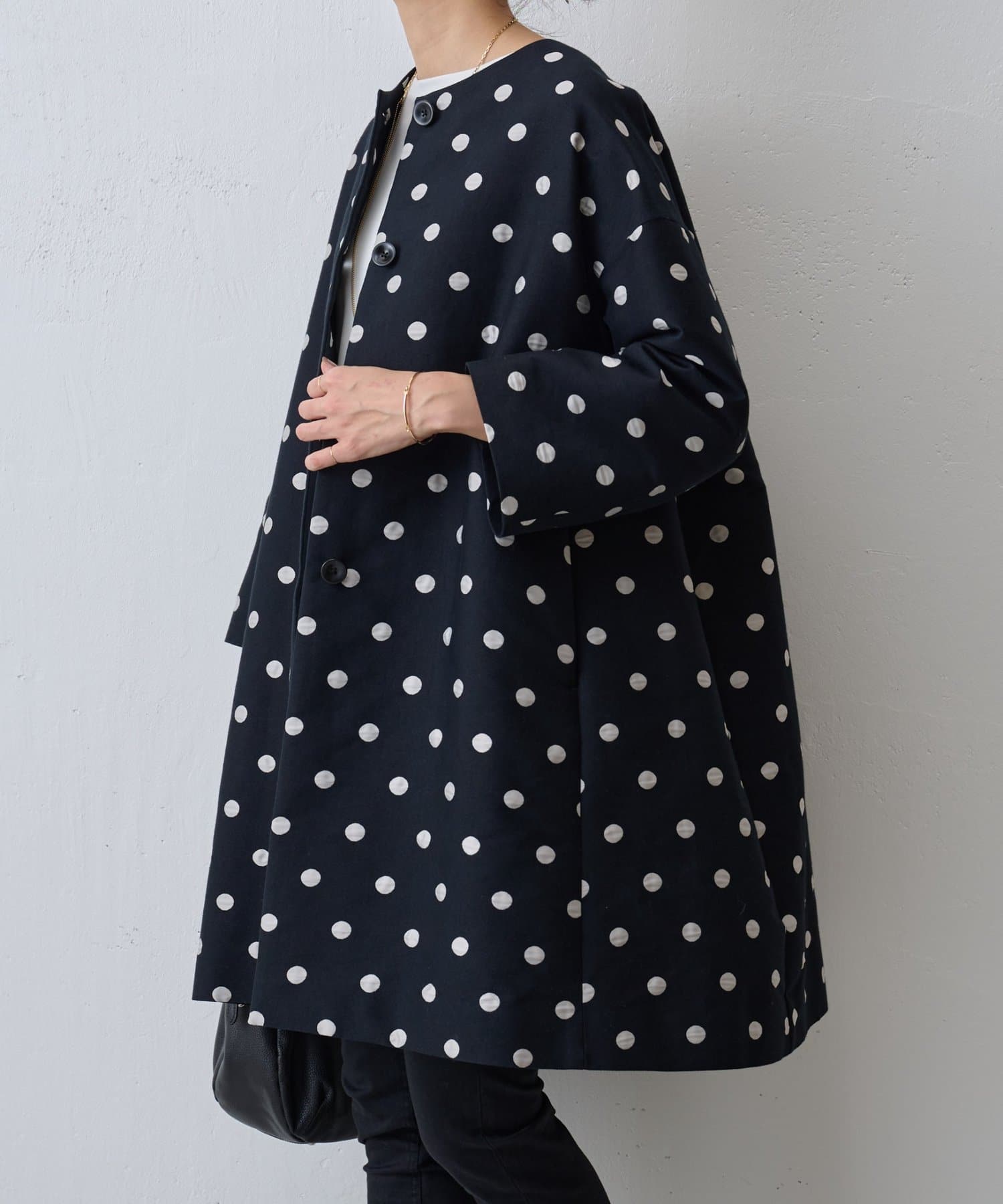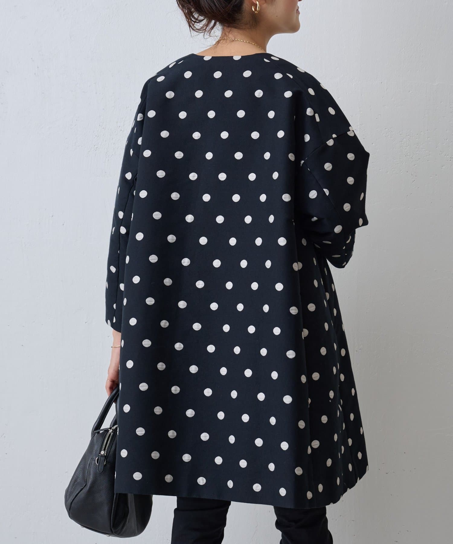 大きすぎないドットと、ホワイトではなく、グレージュのような色味のドット柄なのでシックにまとまります。