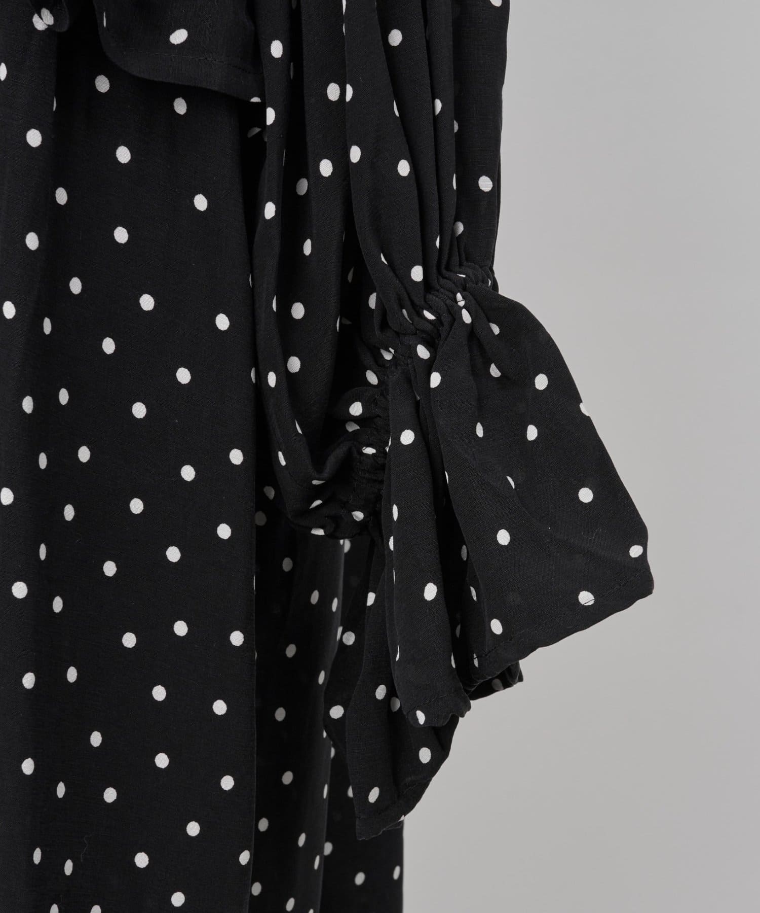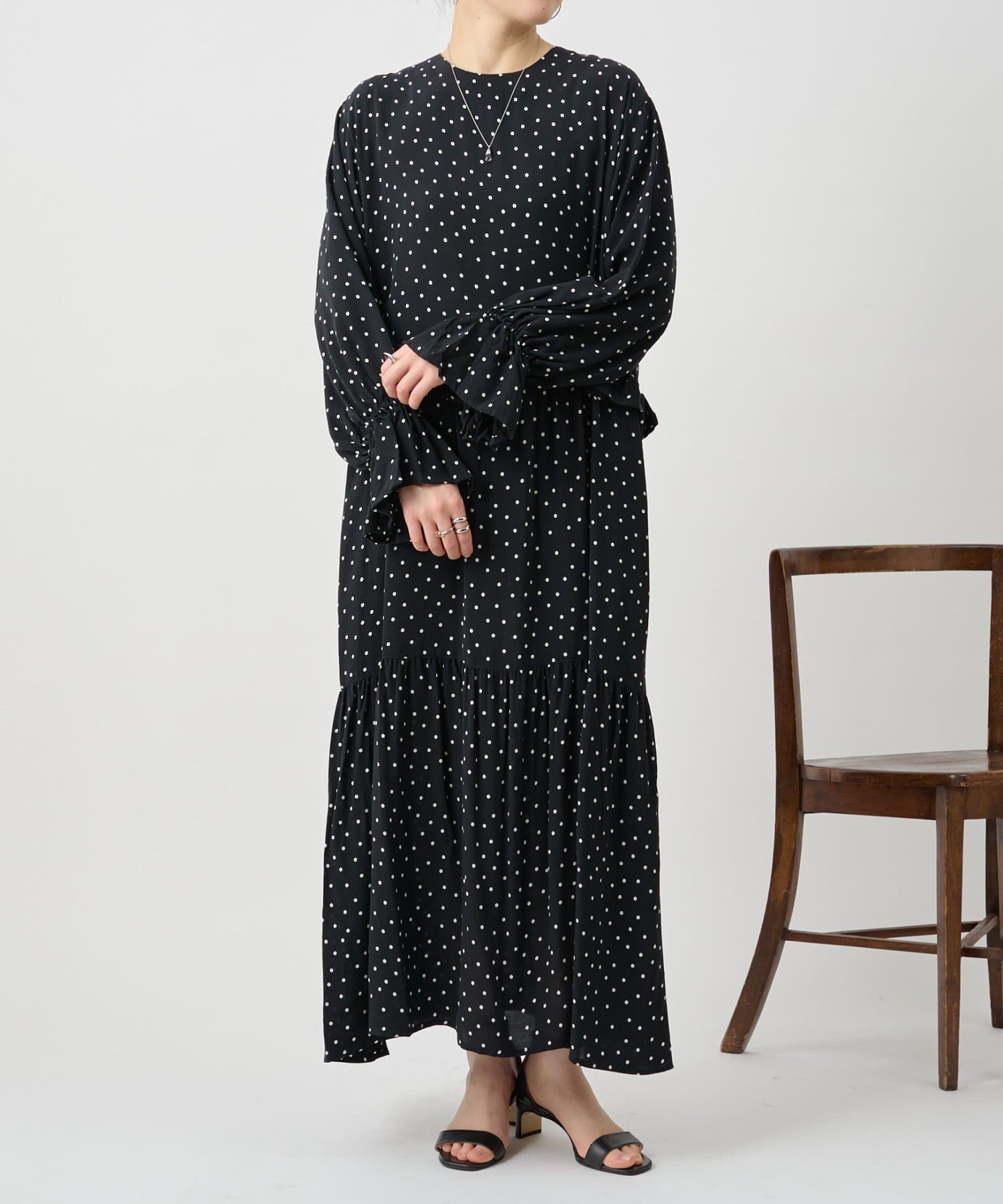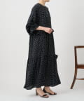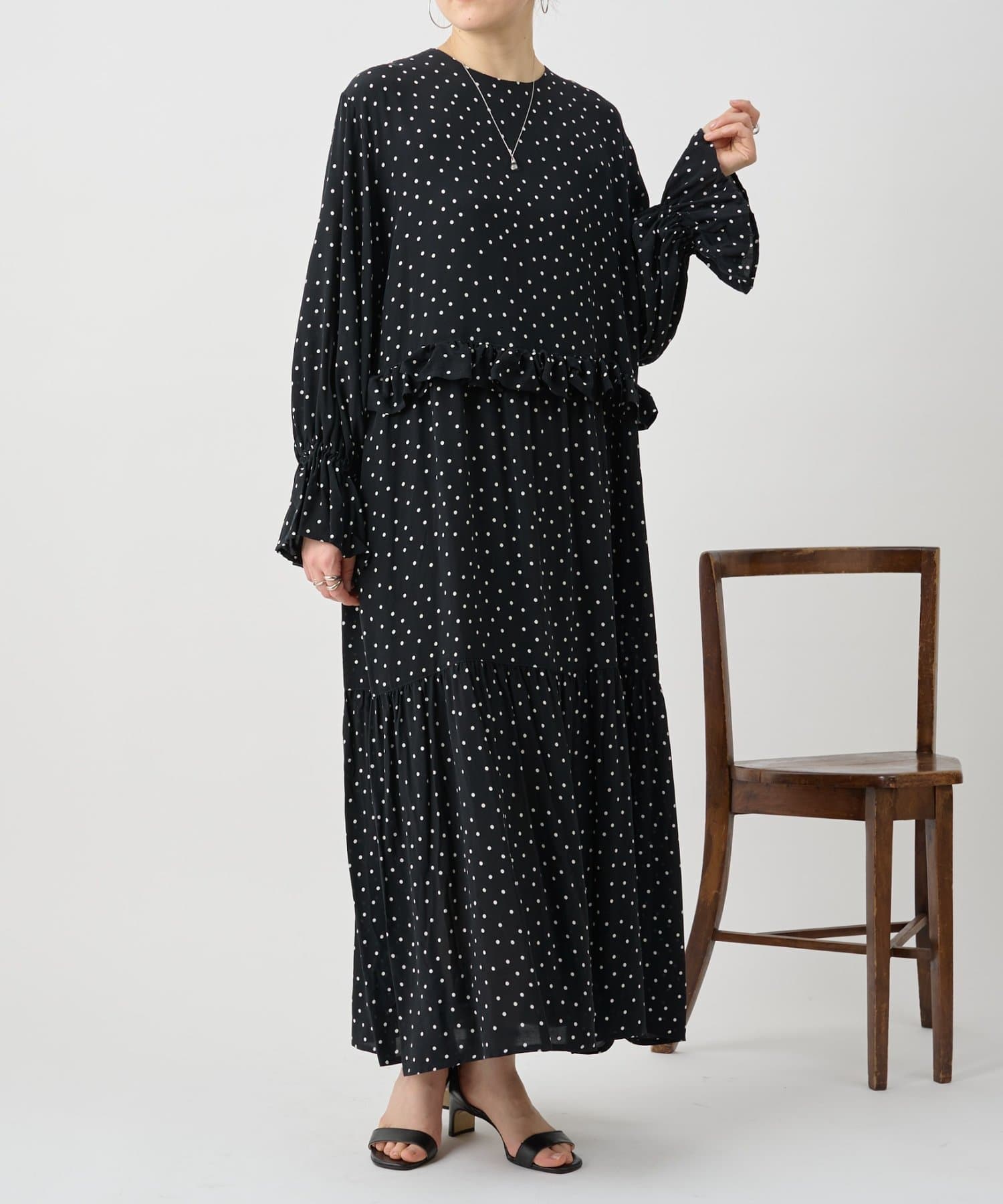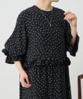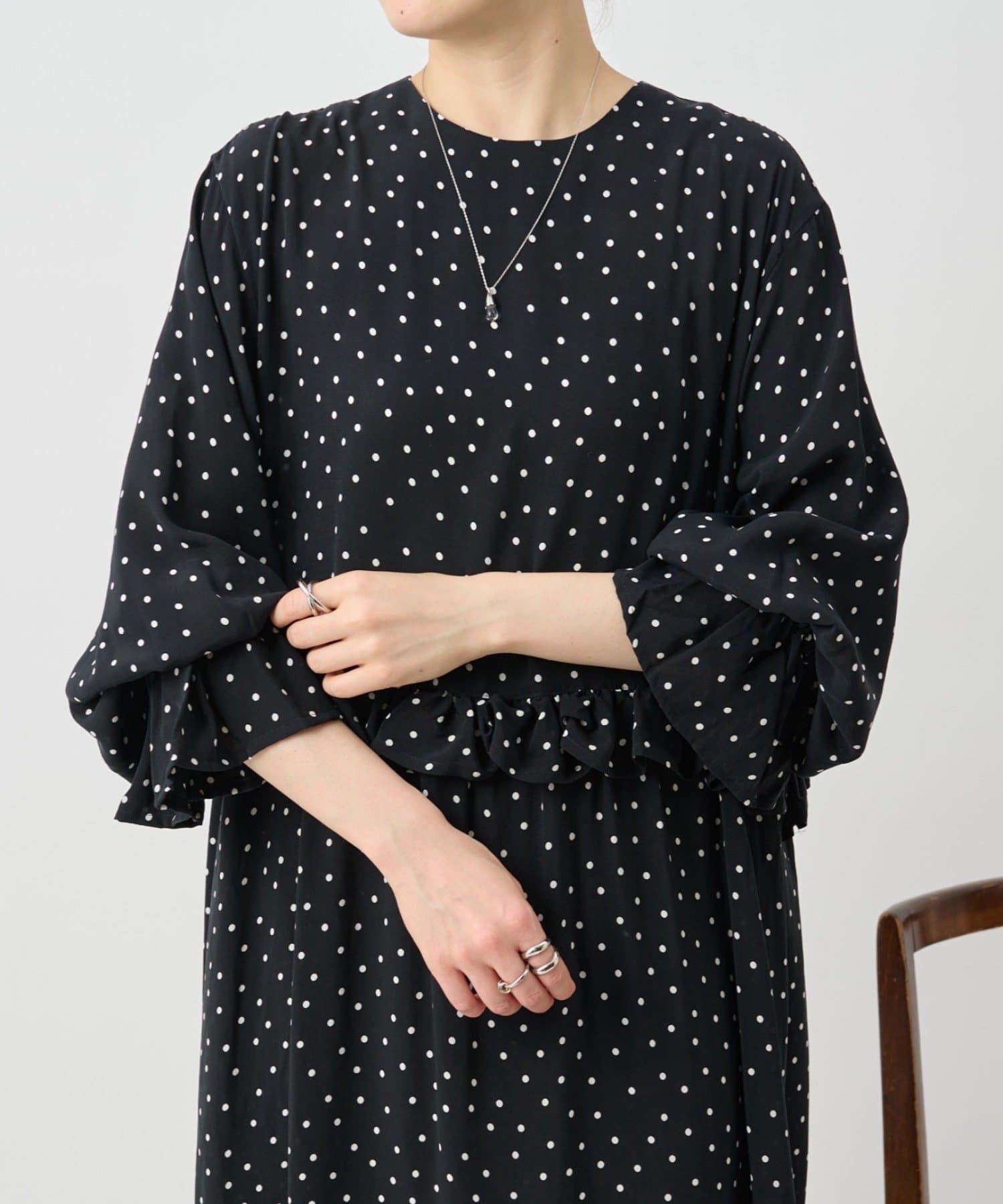 ランダムドット柄が目を惹く、華やかなフリルコンビワンピース。