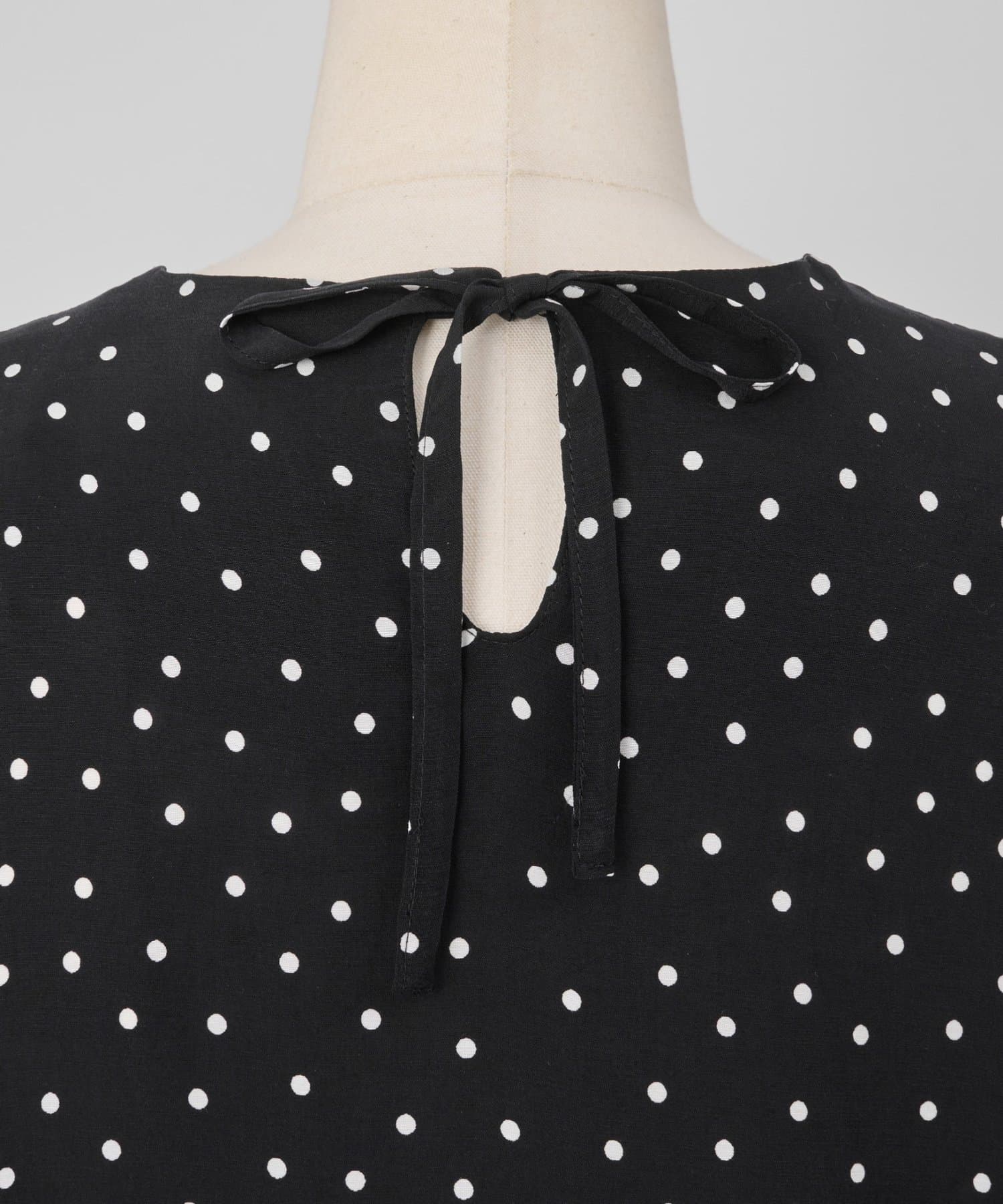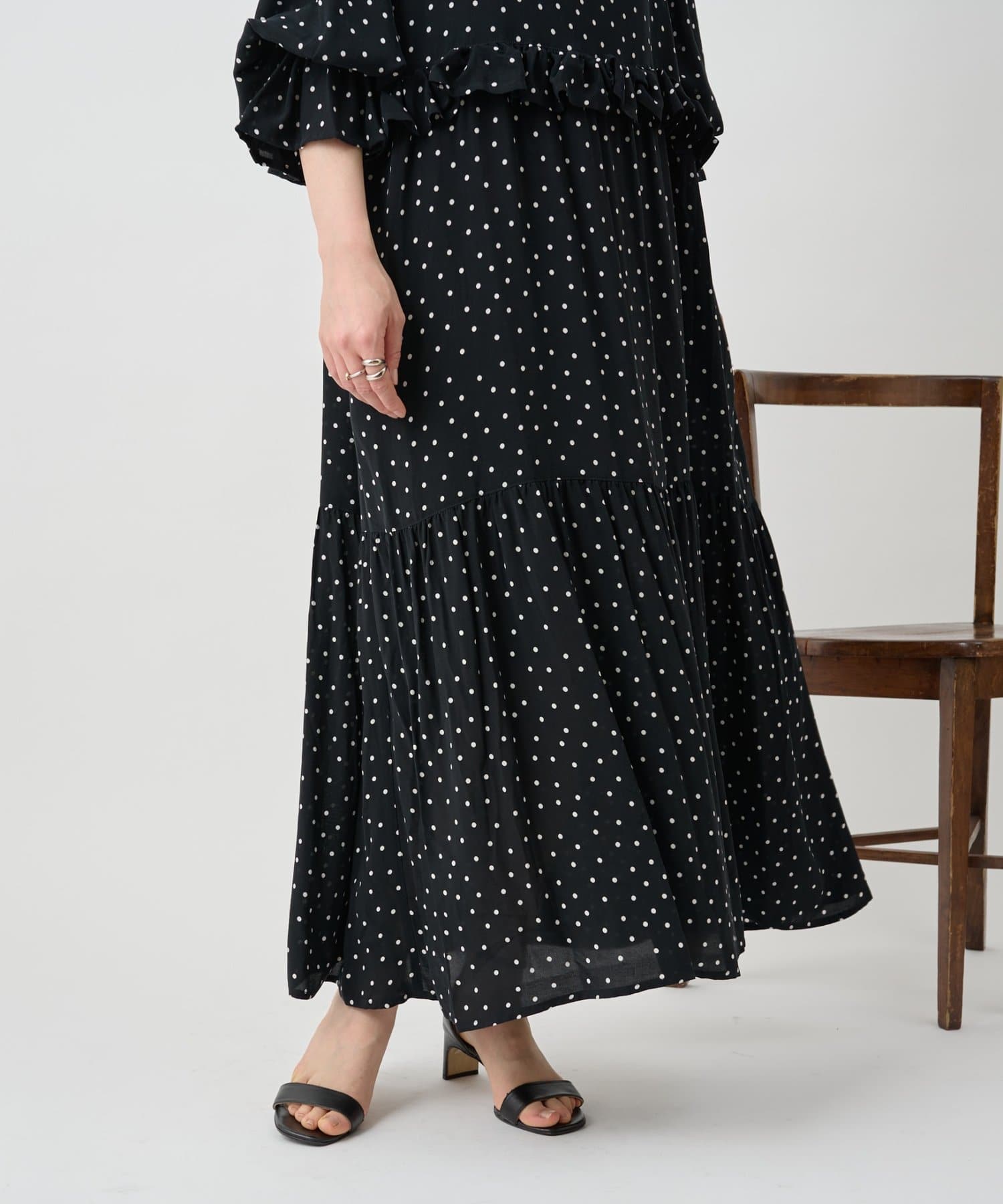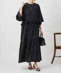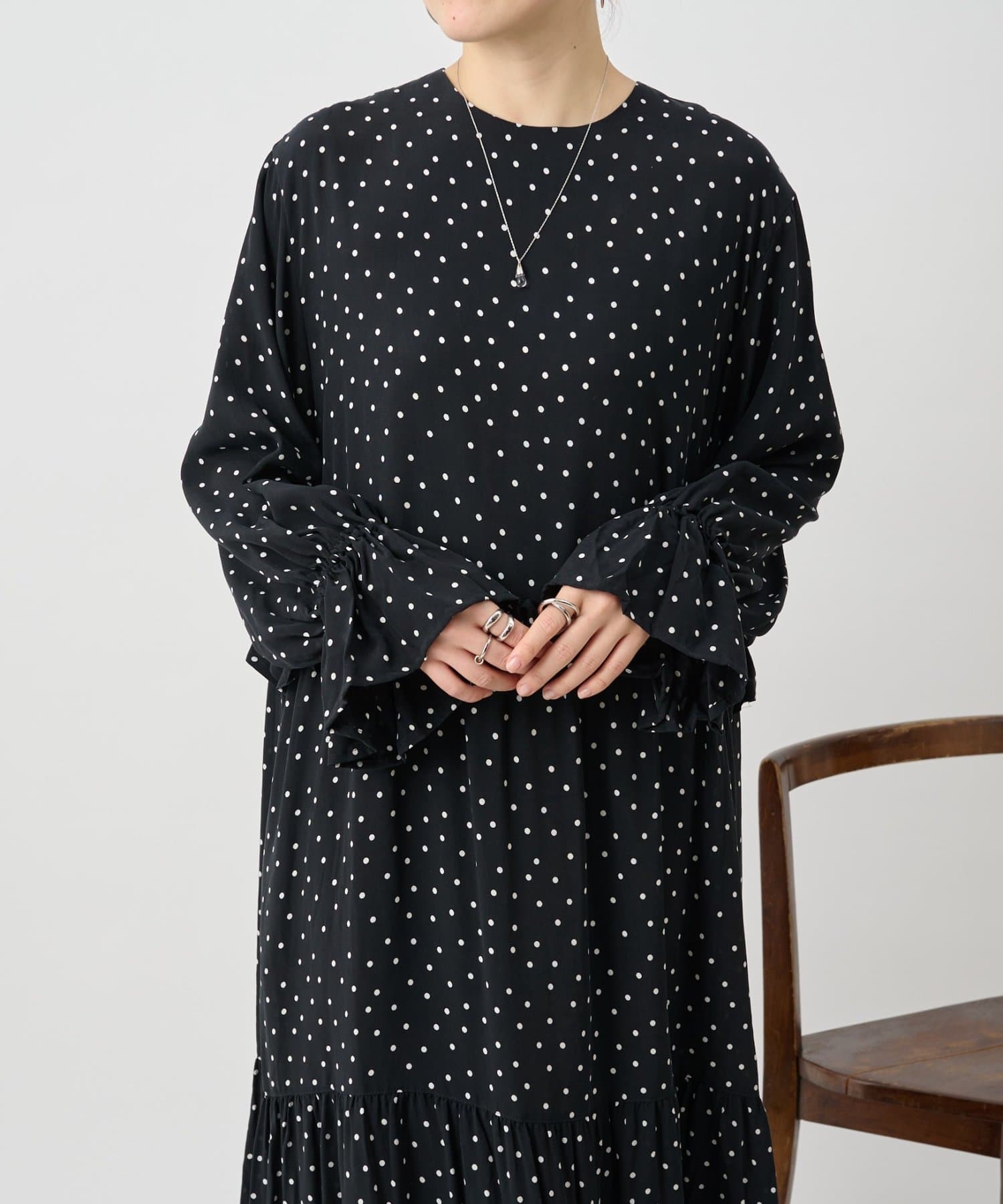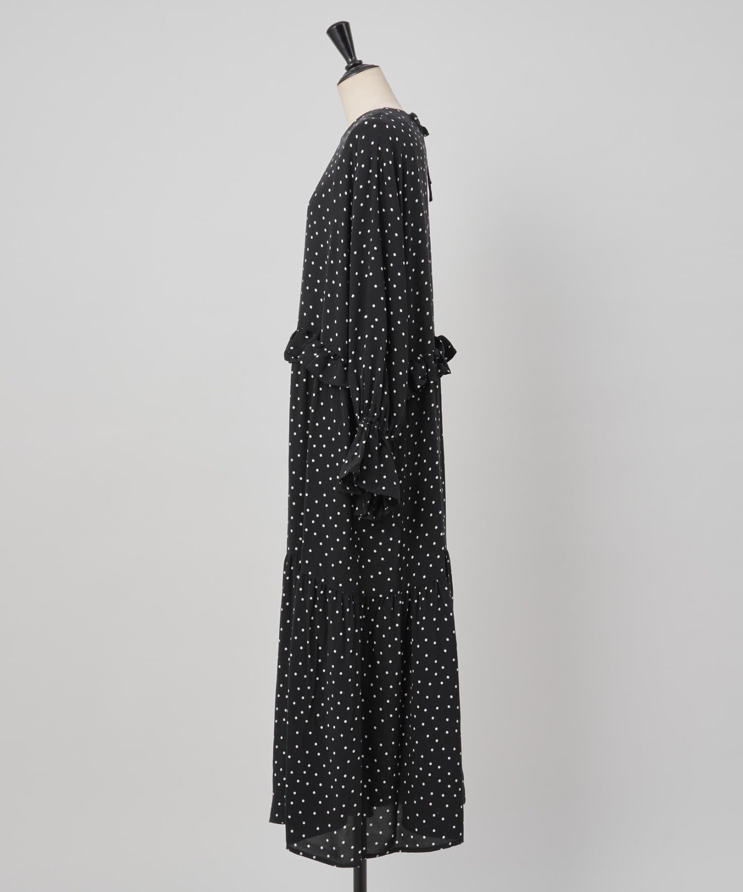 ランダムドット柄が目を惹く、華やかなフリルコンビワンピース。