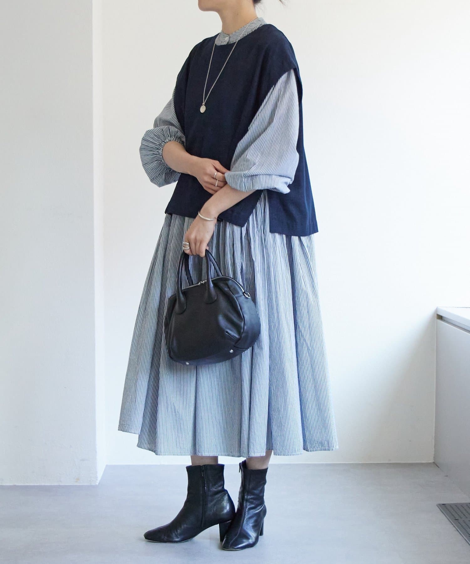 • 164cm・1サイズ・ネイビー(ストライプ)着用