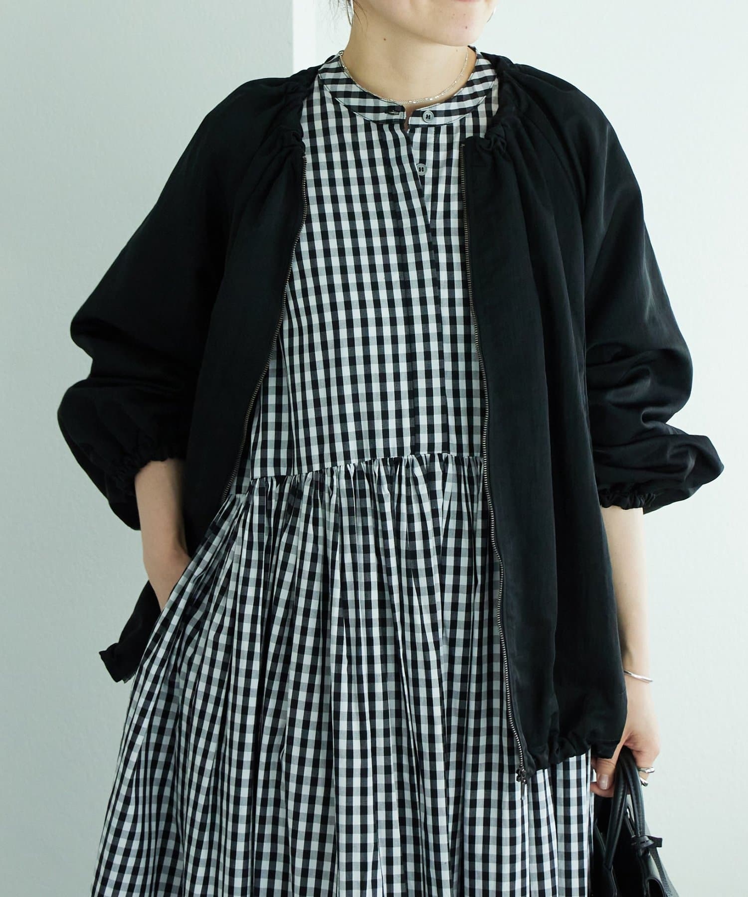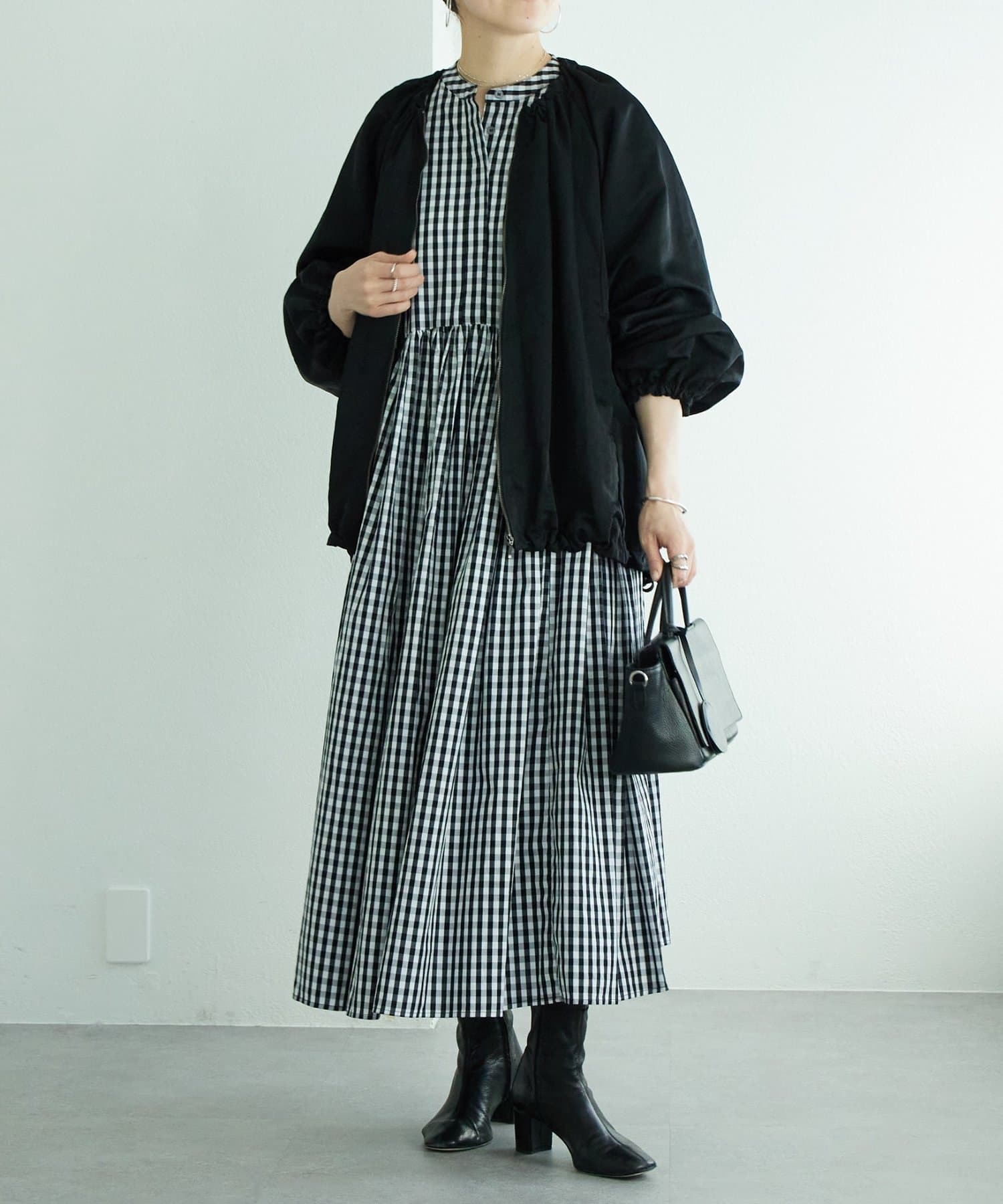• 162cm・1サイズ・ブラック(チェック)着用
