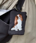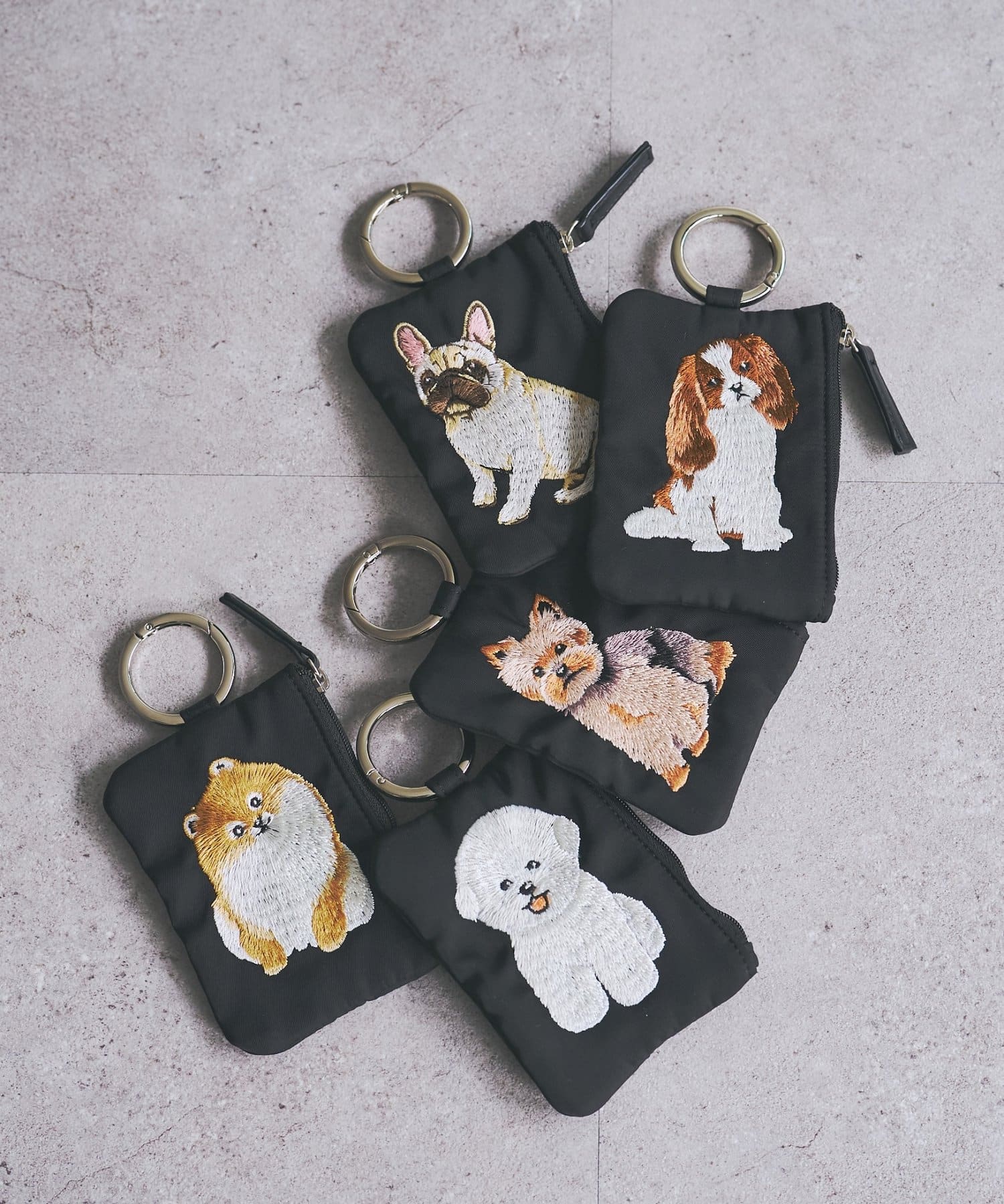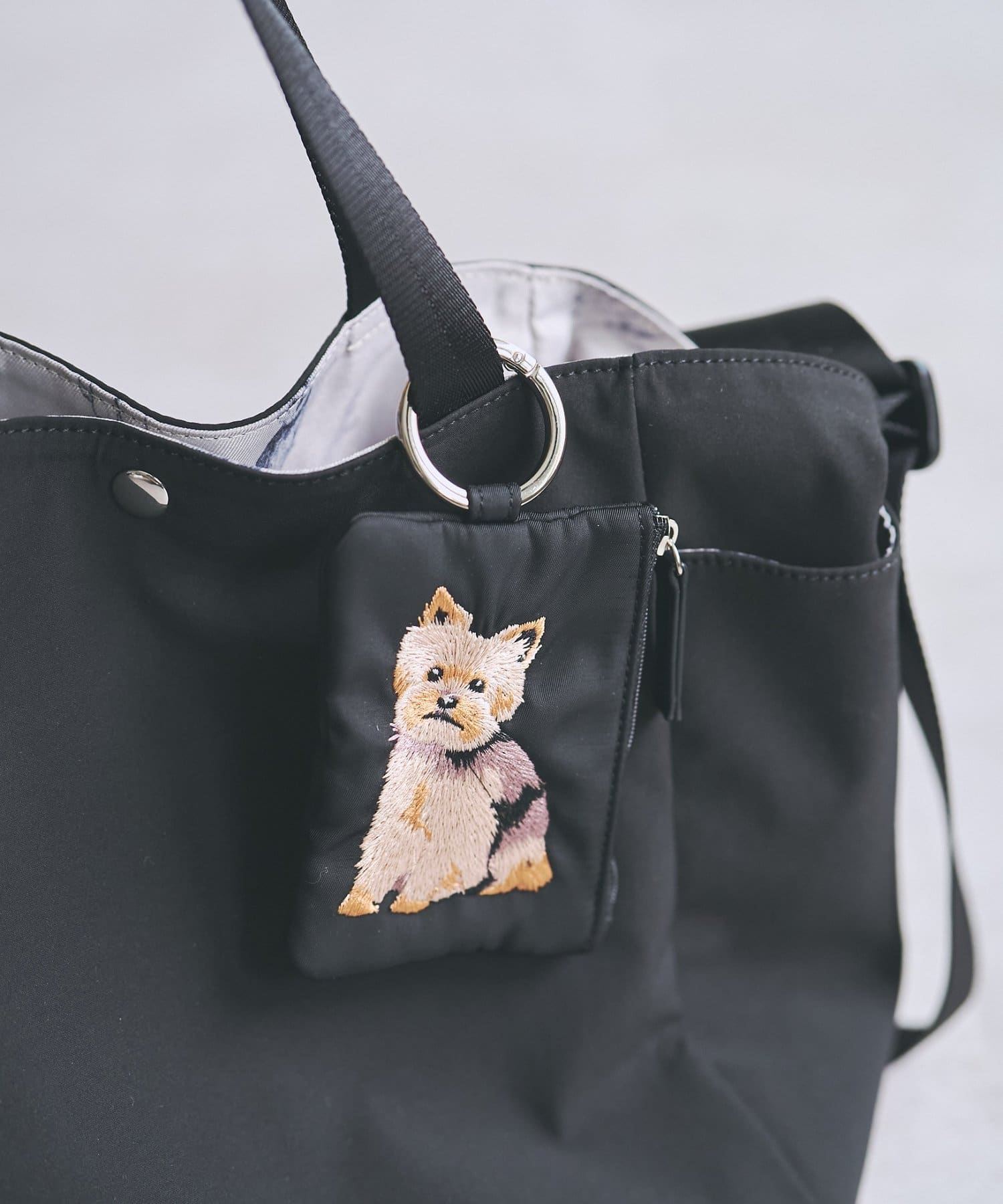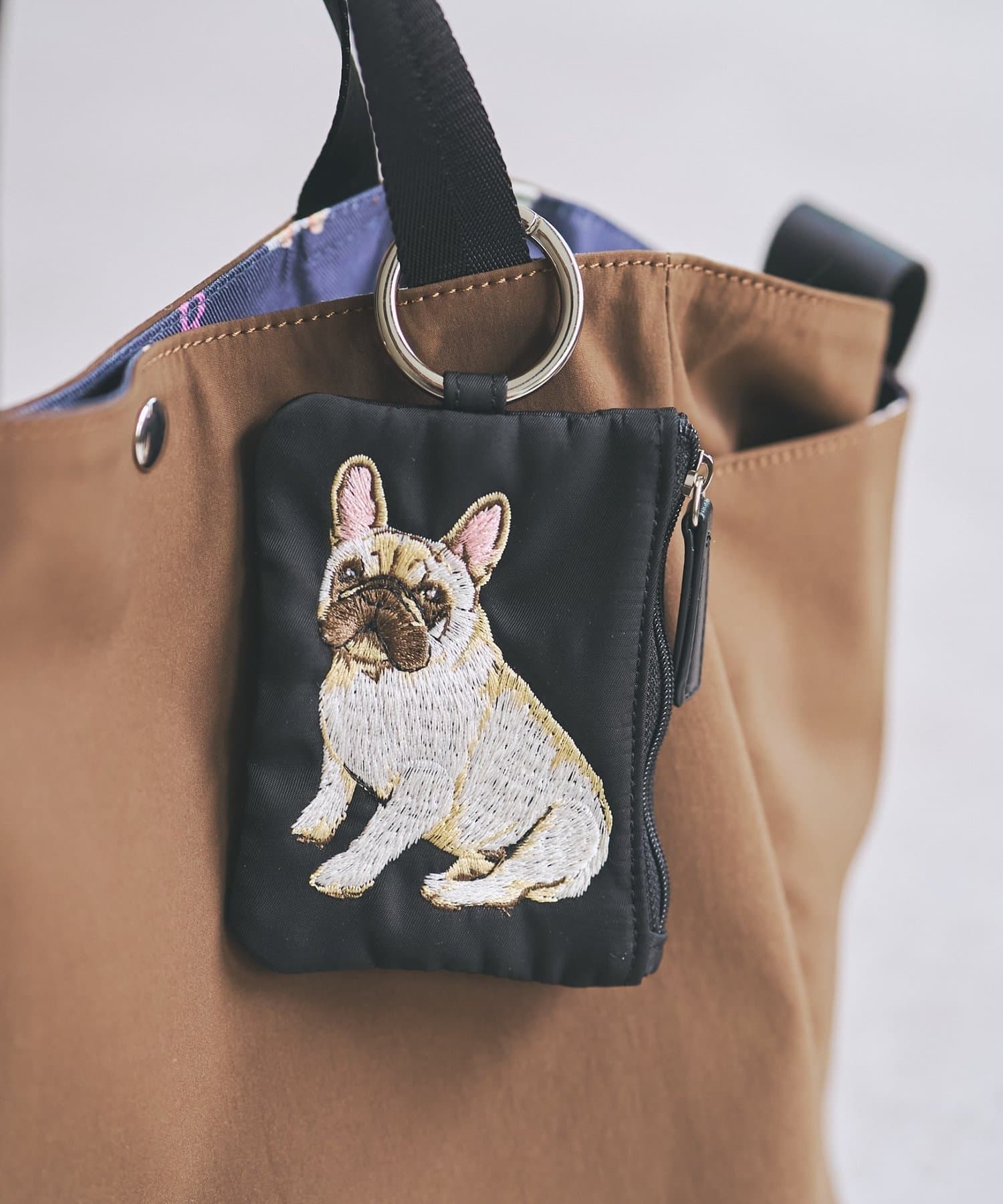 ブラックの表地にかわいらしい愛犬たちを刺繍で表現。