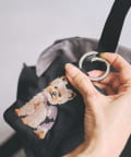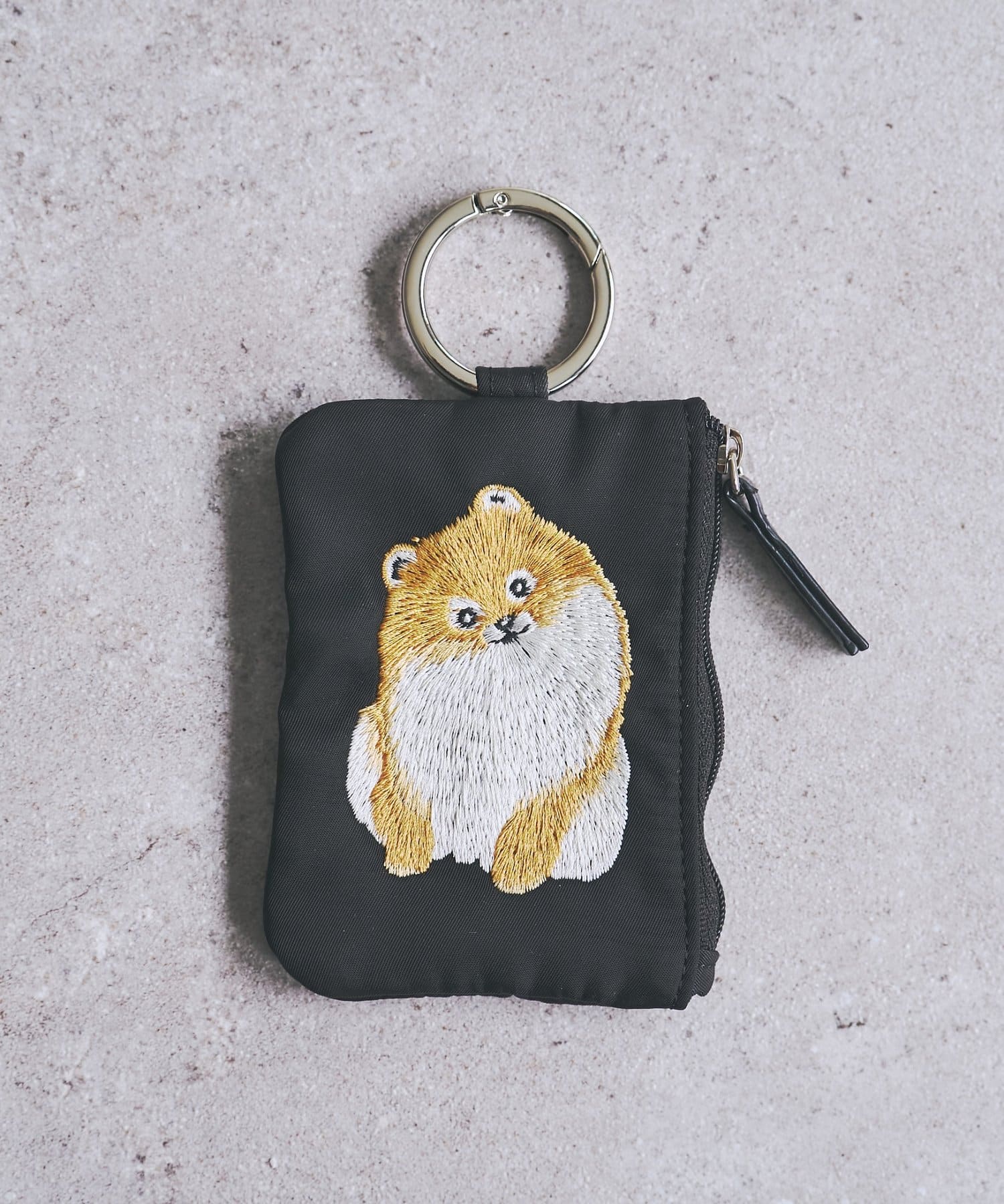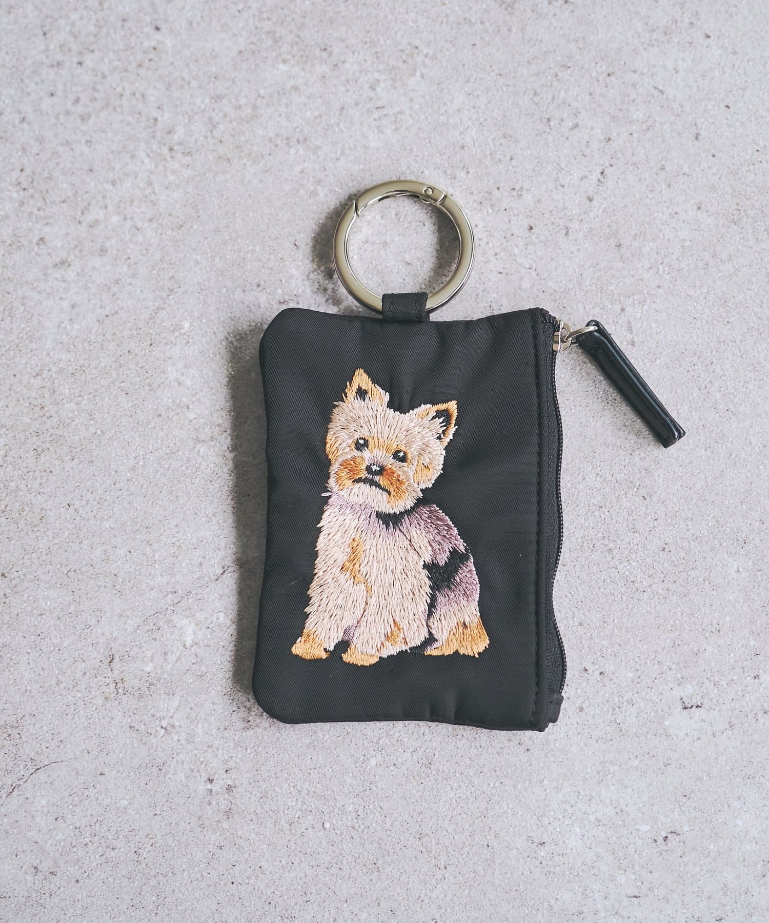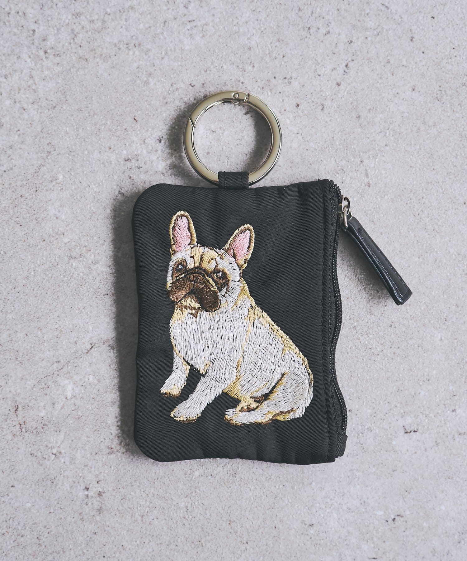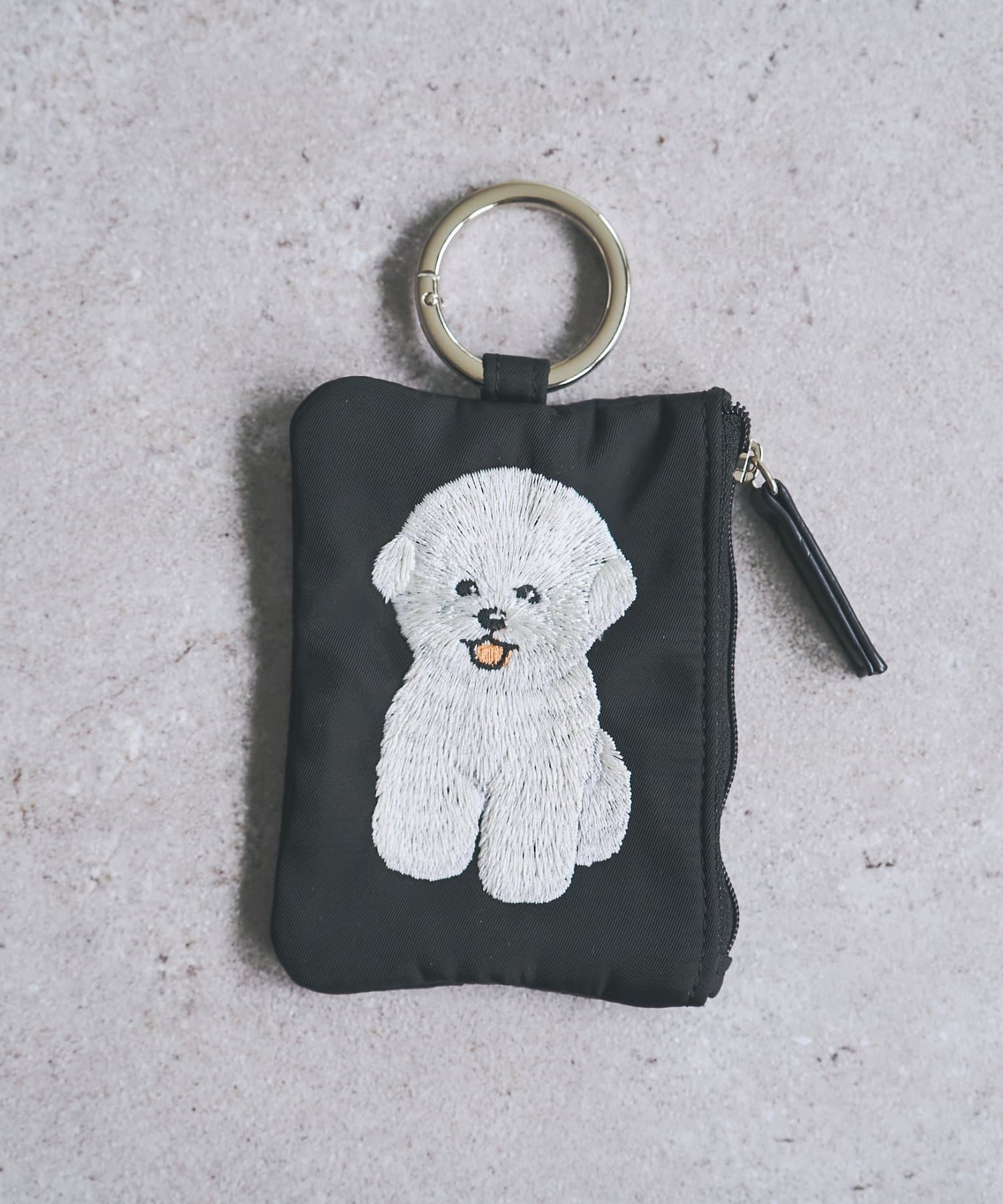 ブラックの表地にかわいらしい愛犬たちを刺繍で表現。