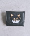 ブラックのスムースレザーの二つ折りのお財布で、フラップ部分には【sampo】オリジナルデザインの、かわいらしい愛犬たちを刺繍で表現しています。