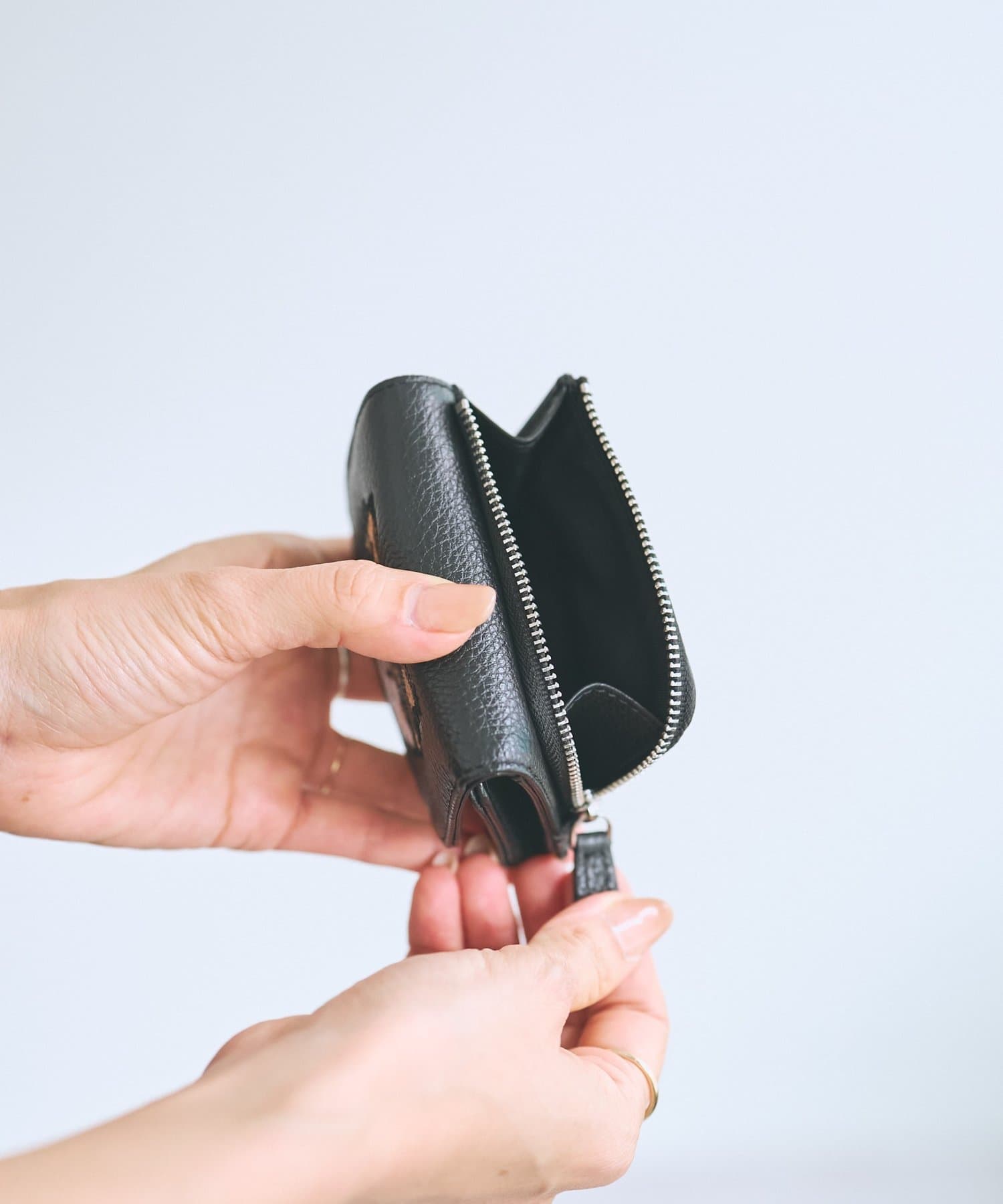 小銭入れ部分はL字ファスナーで間口がしっかり開き、出し入れしやすいのがポイント。
