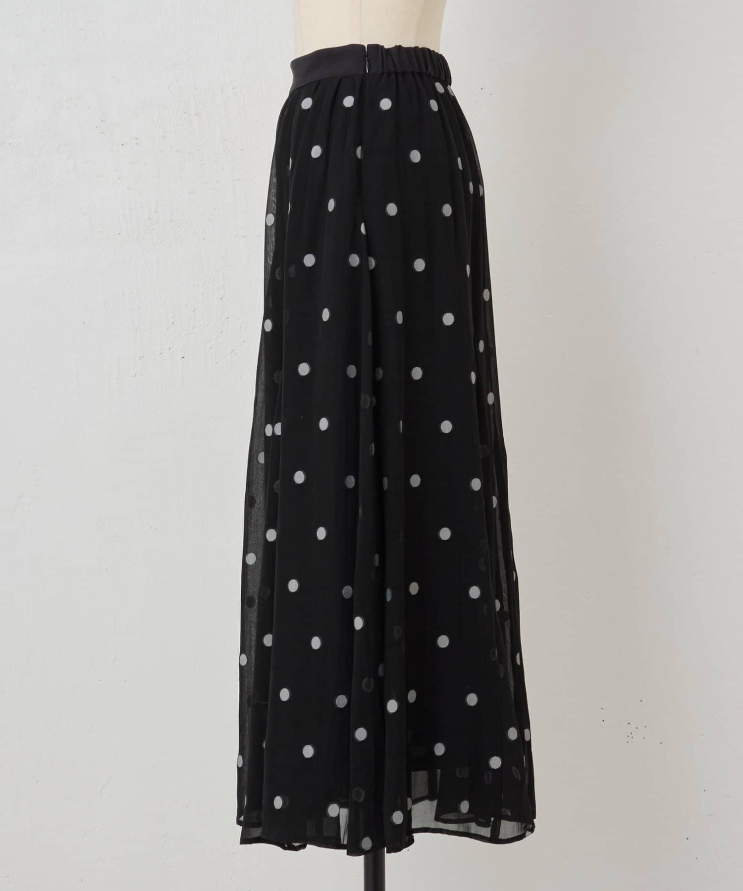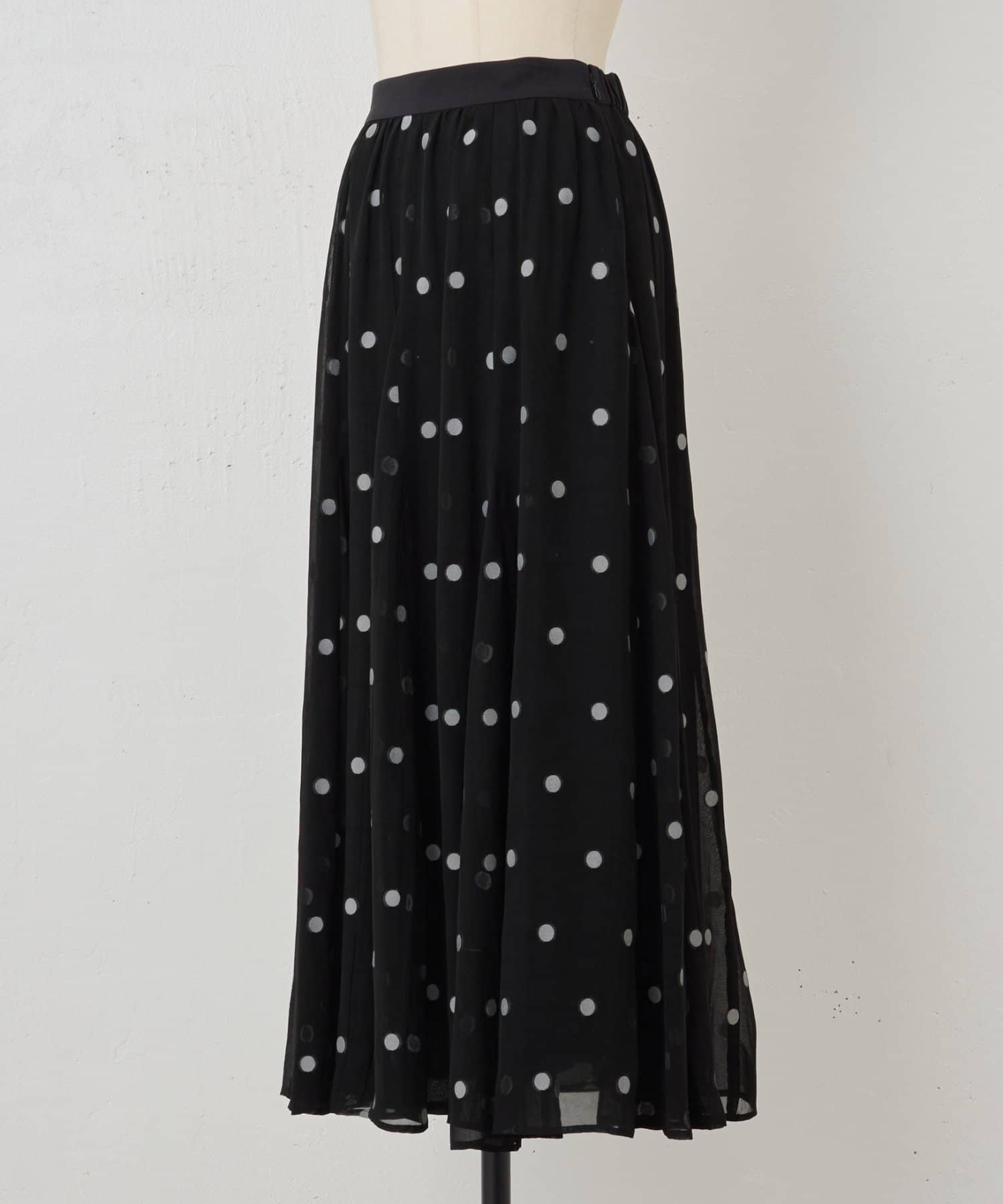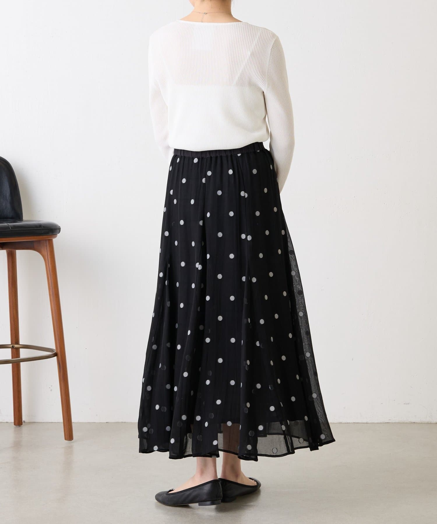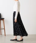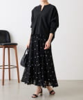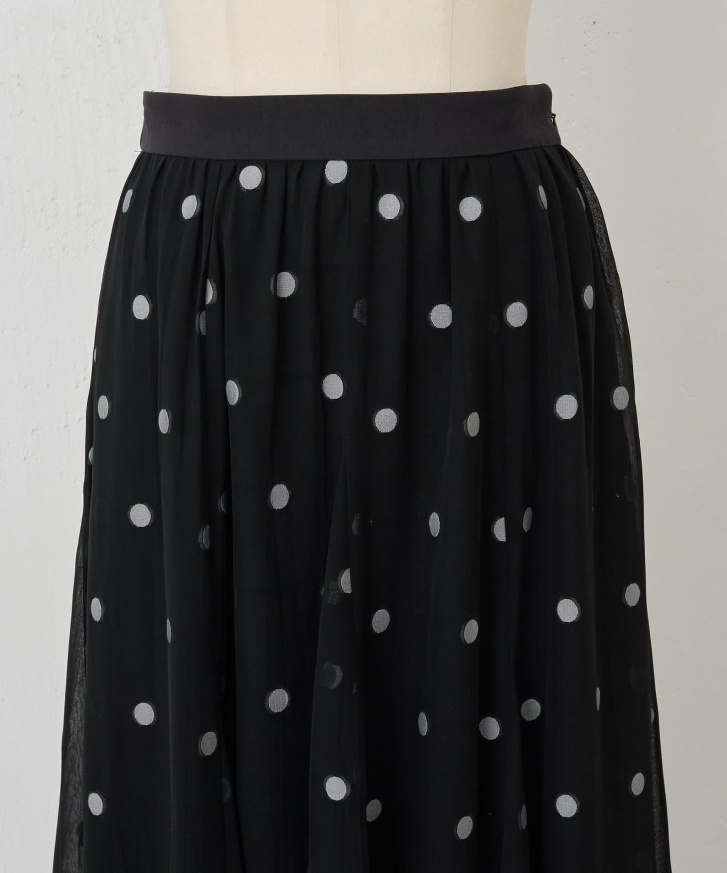 透け感のある素材に、ドットジャガードを施したフレアスカート。
