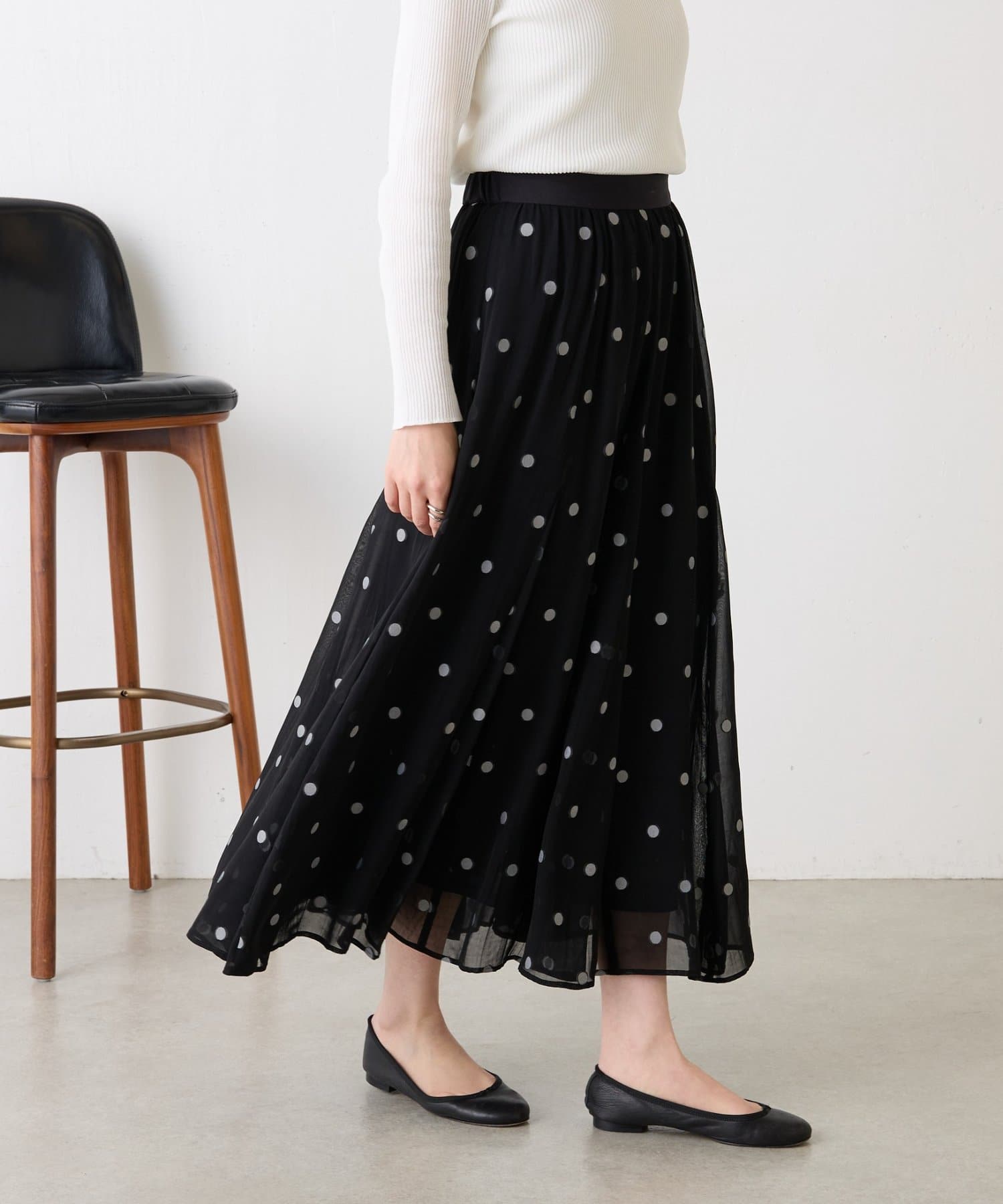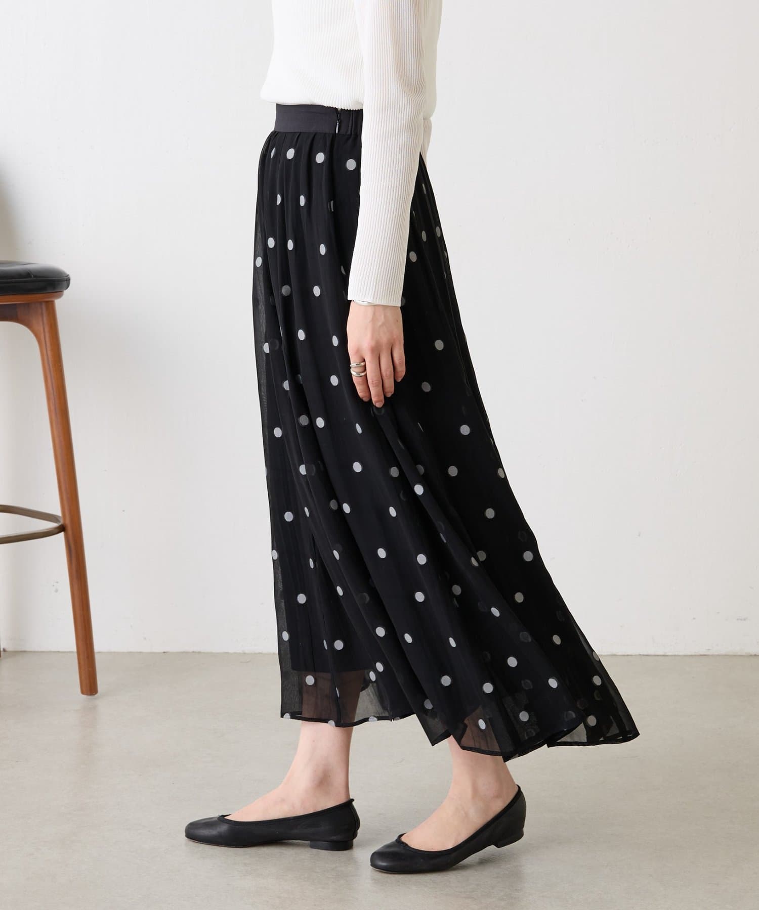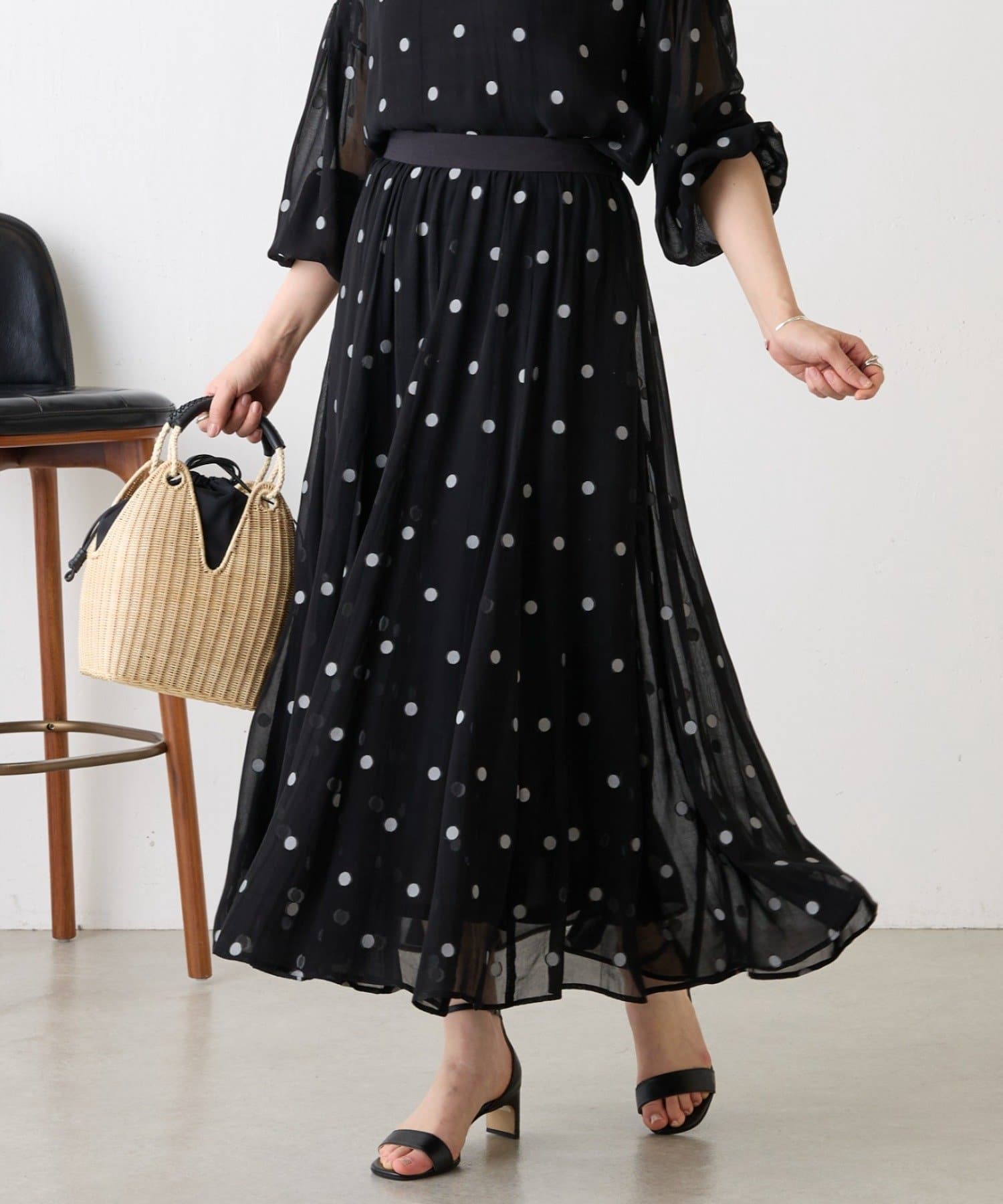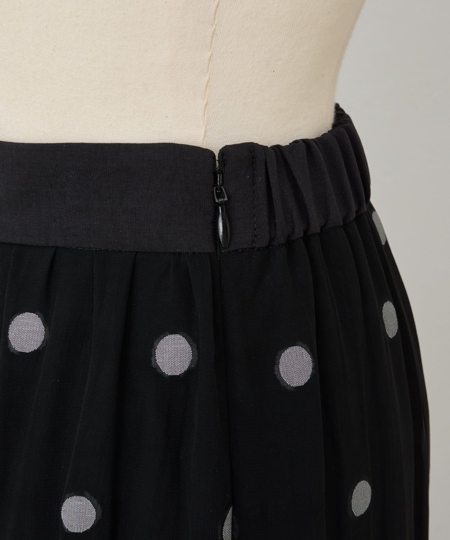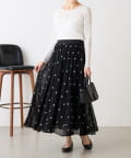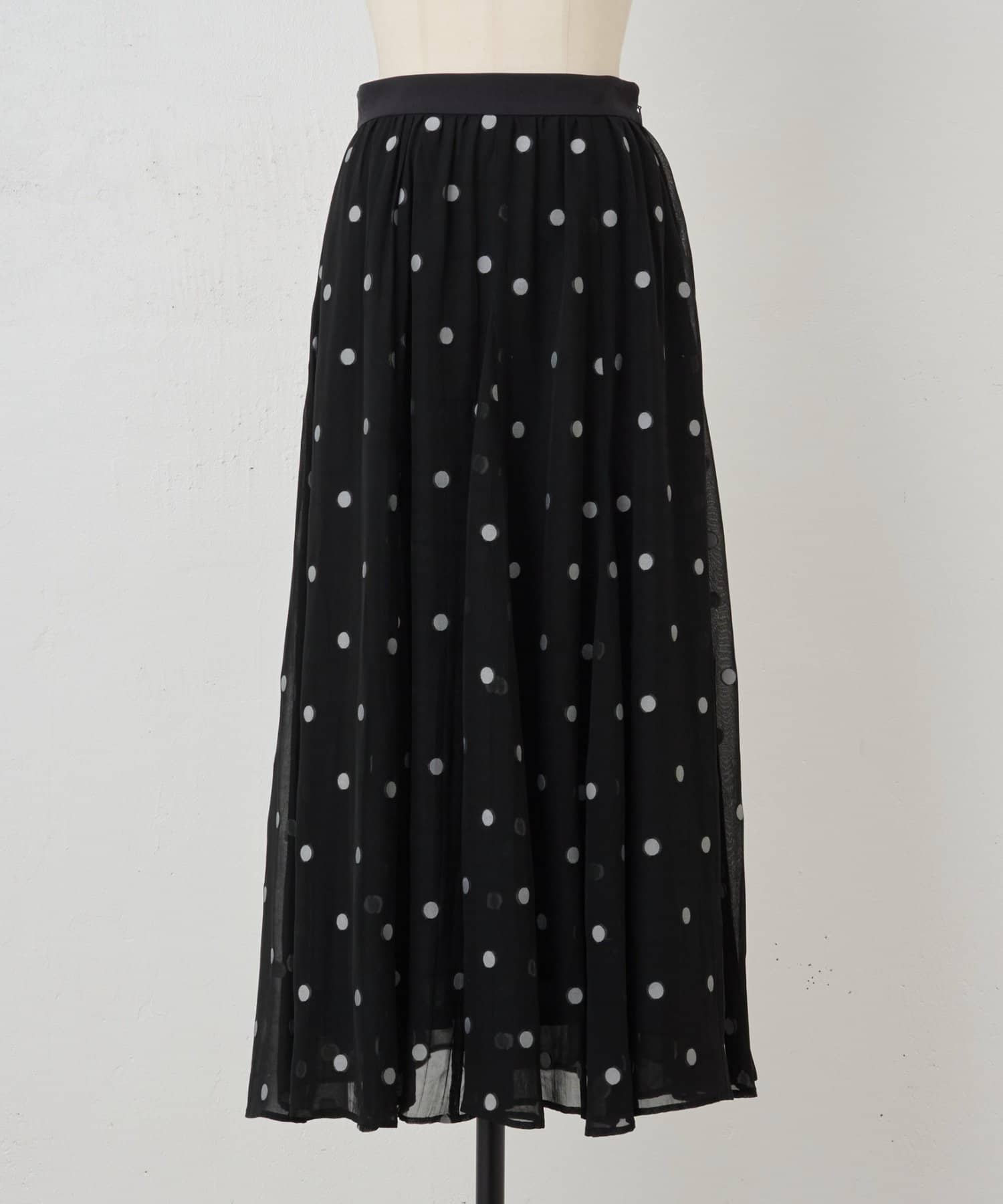 透け感のある素材に、ドットジャガードを施したフレアスカート。