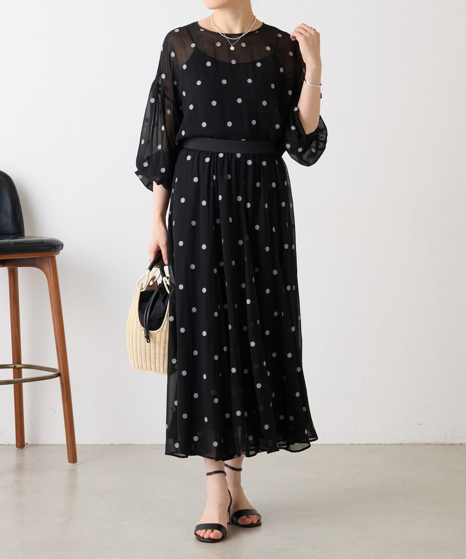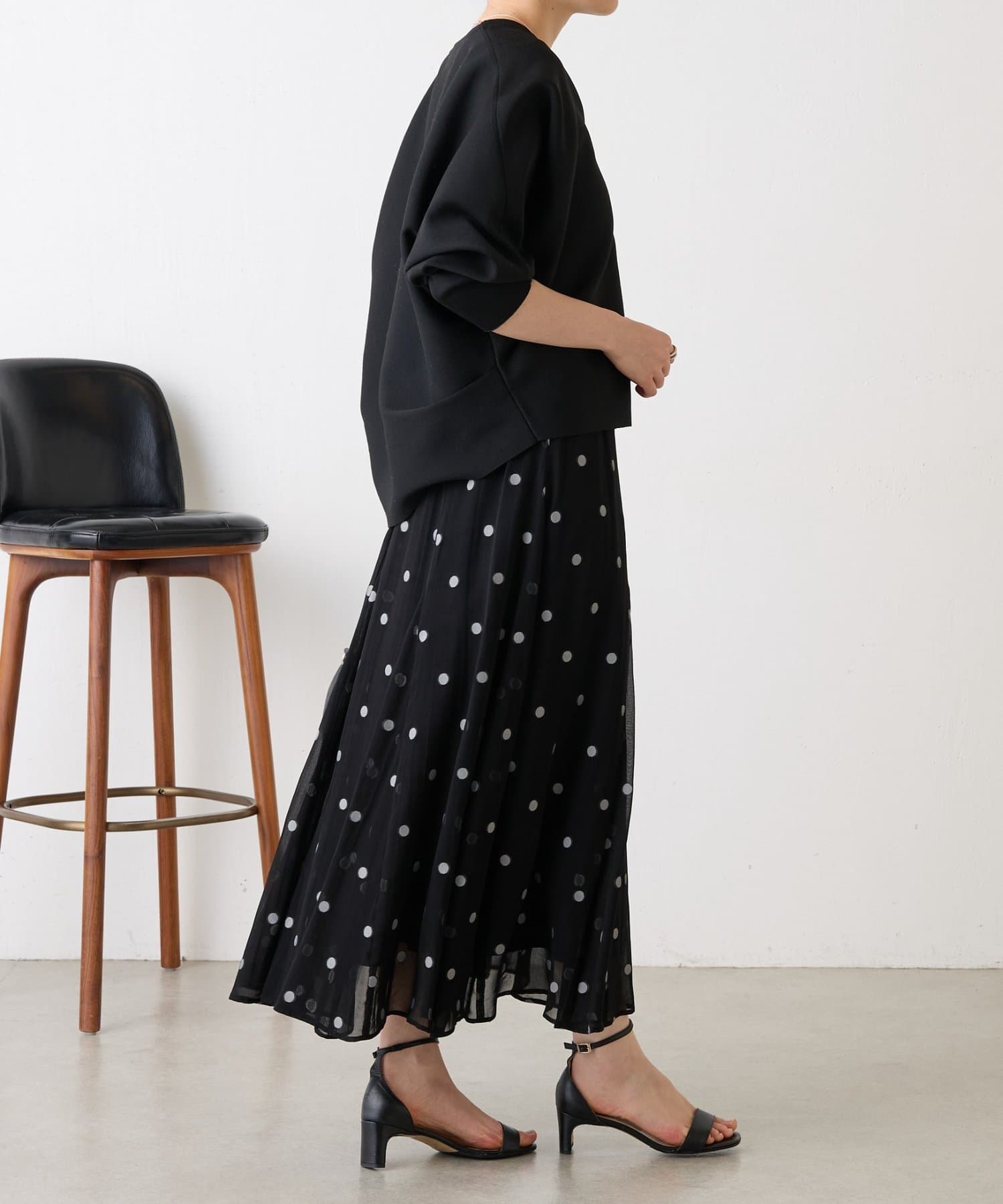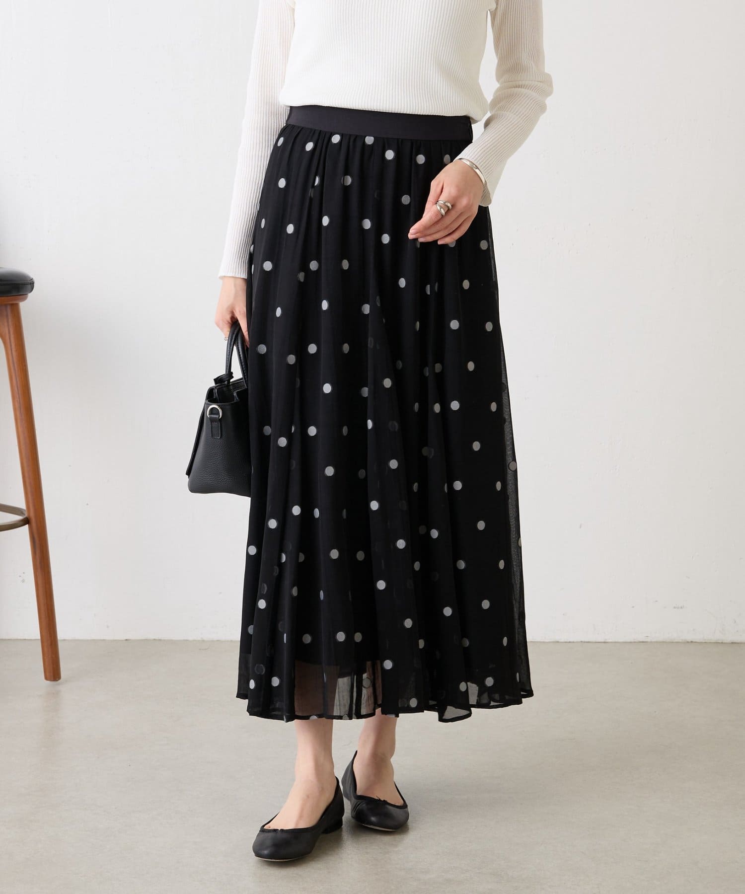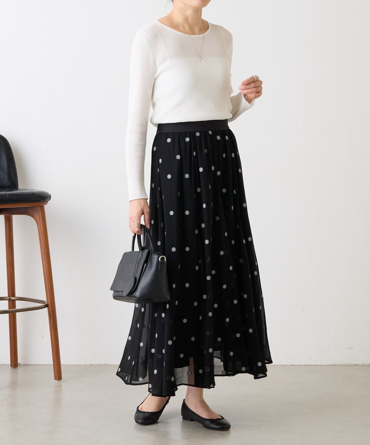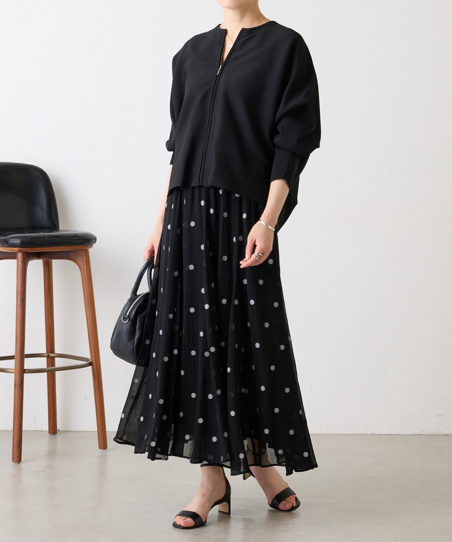 甘くなりがちなドット柄も、ジャガードならではの繊細な表情で落ち着いた印象に仕上げています。