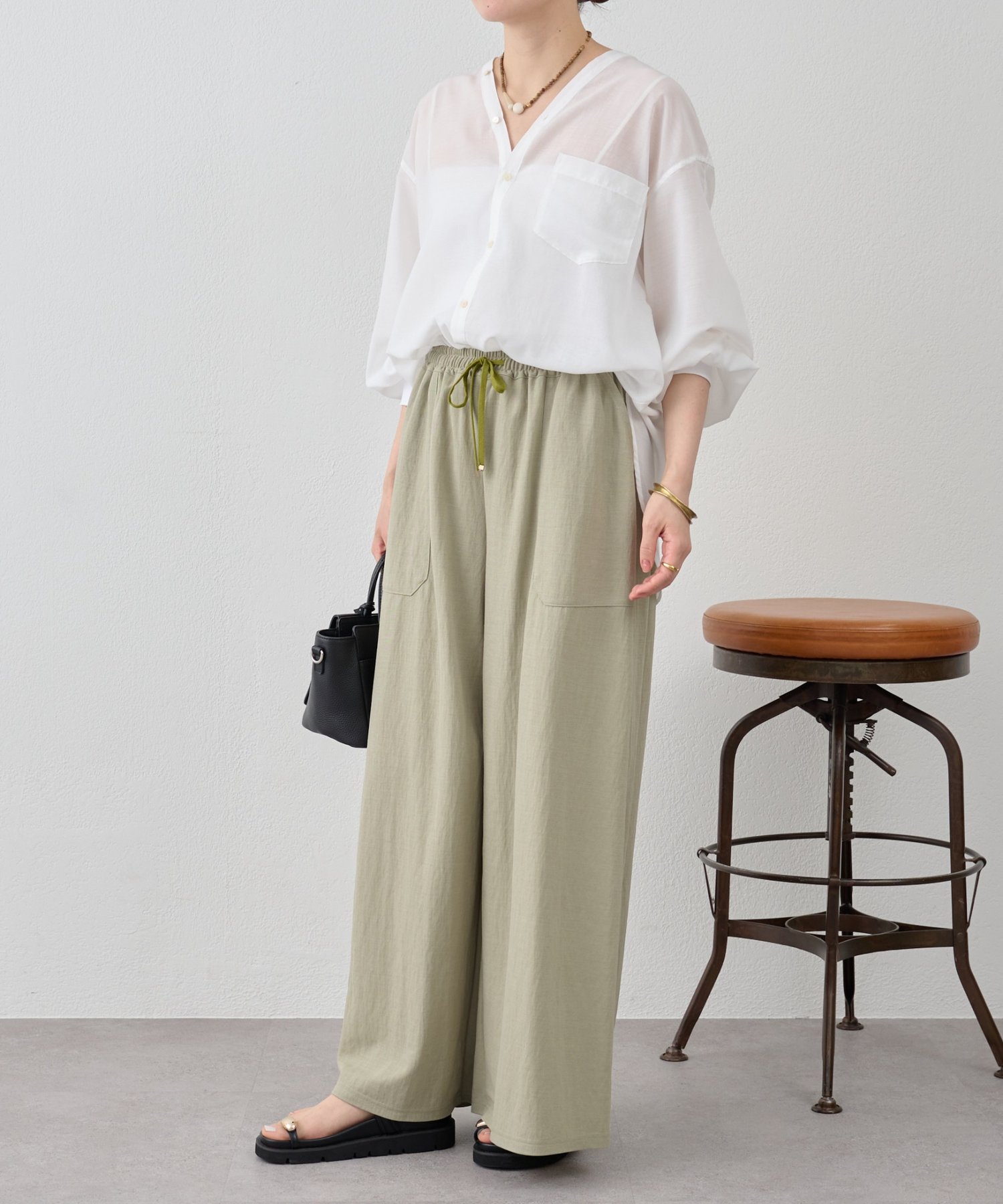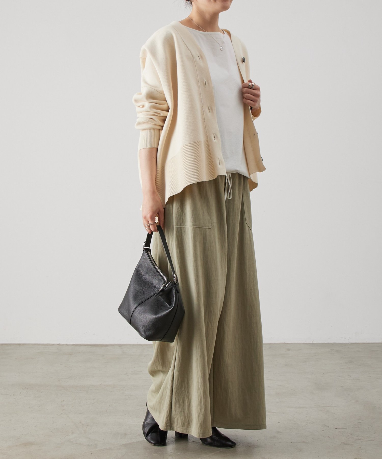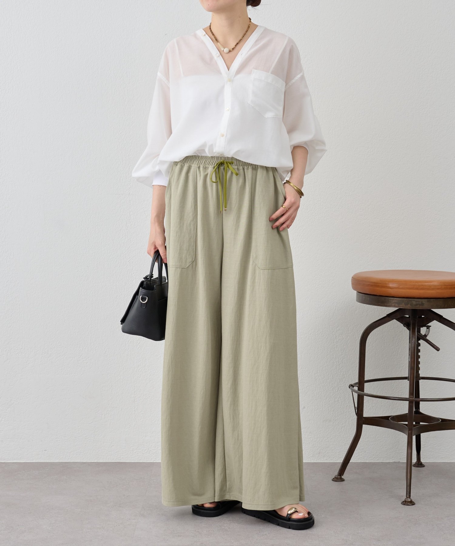 夏場も快適に着られる軽やかさと、品のよさを兼ね備えたワイドパンツ。