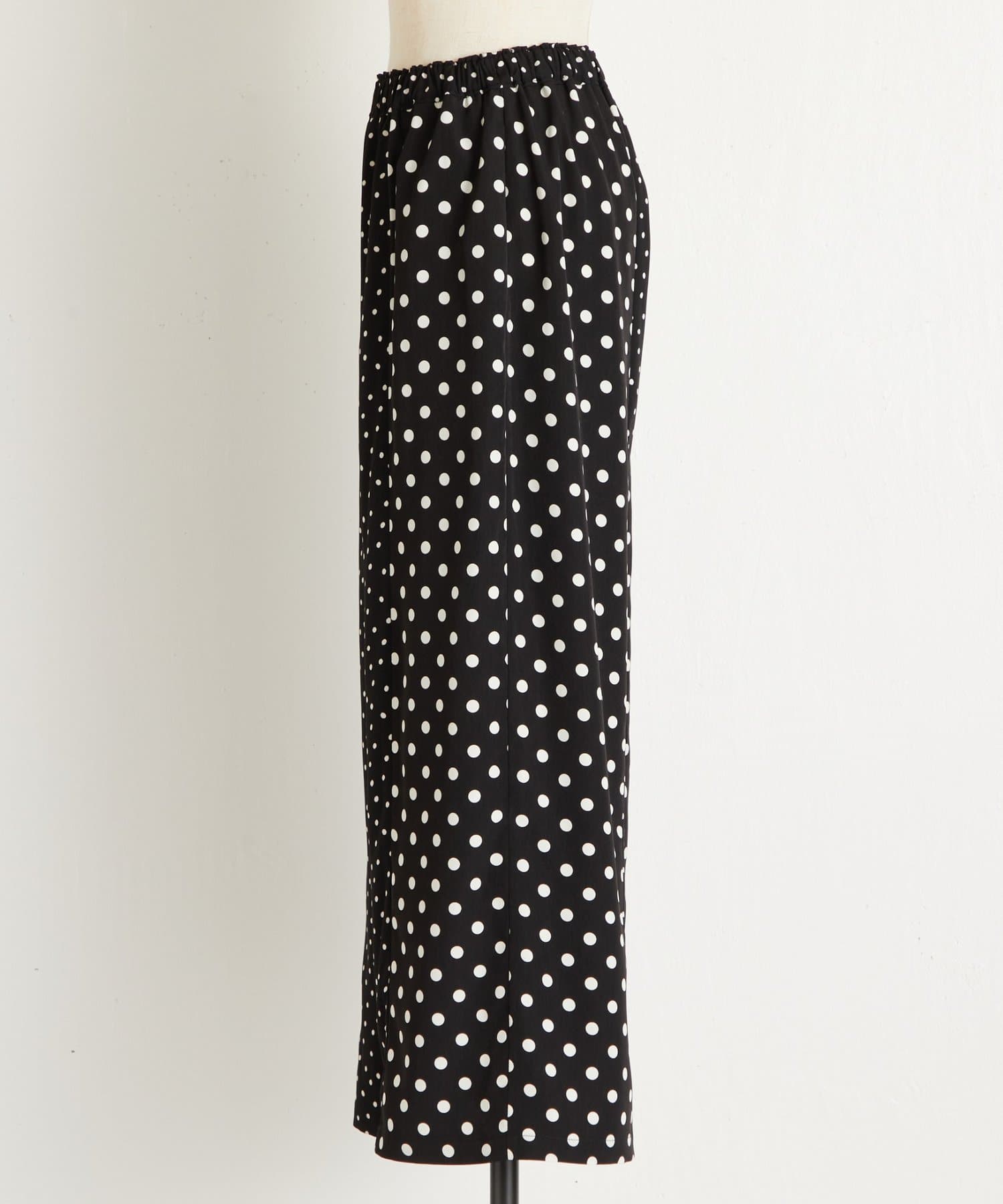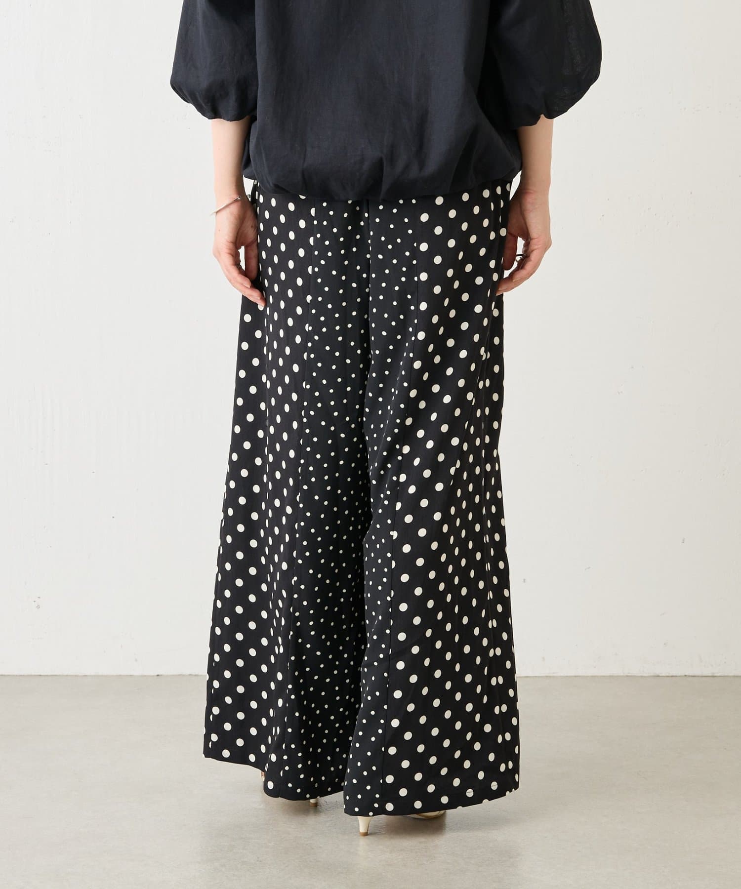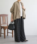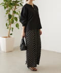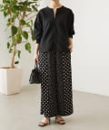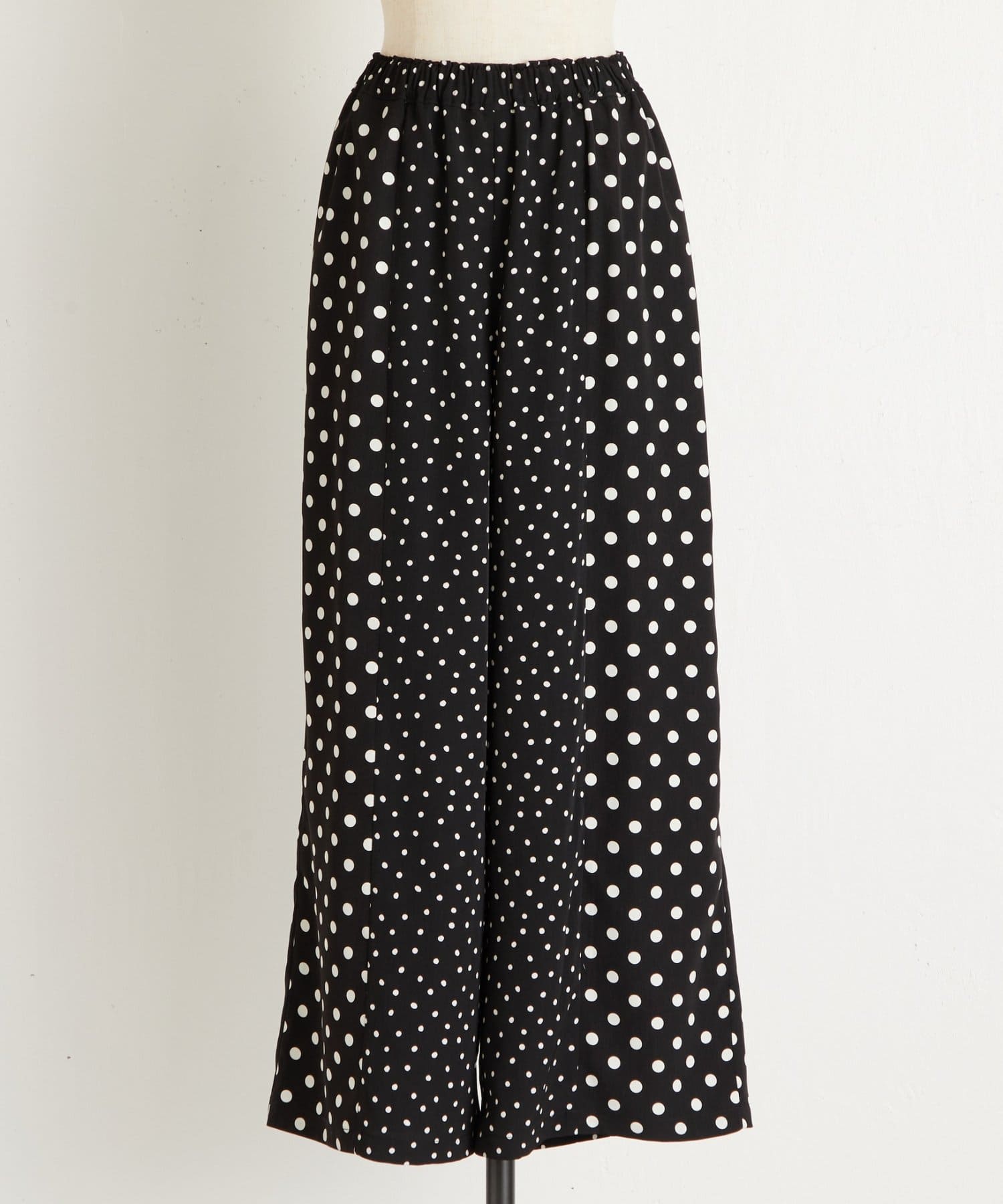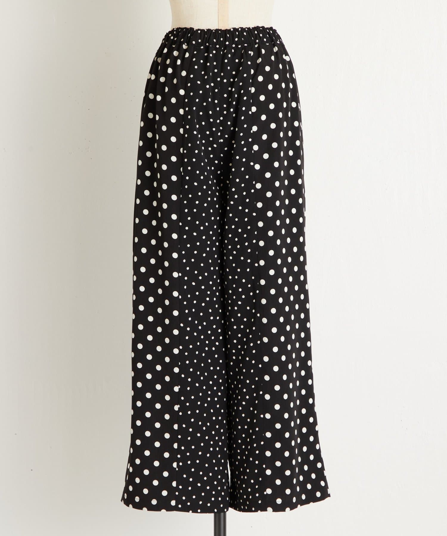 大小のドット柄を組み合わせたワイドパンツ。