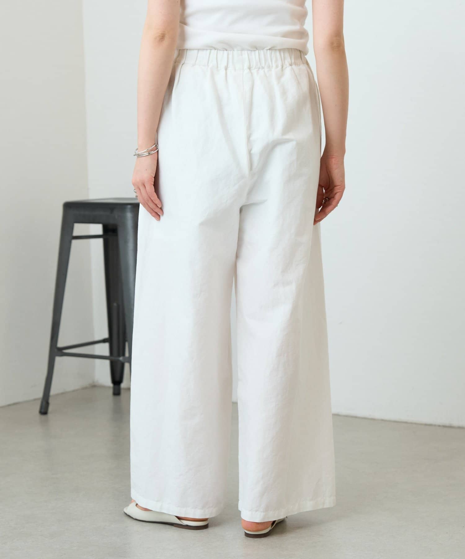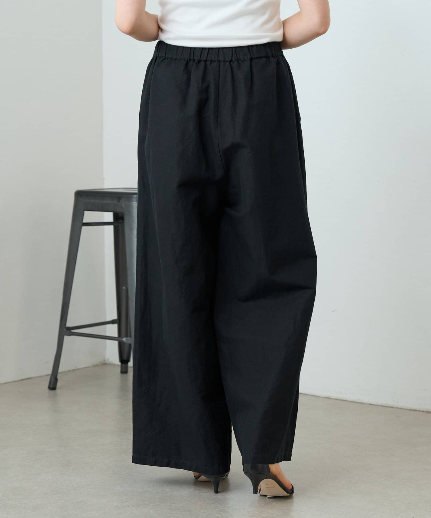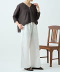 ウエストゴム仕様とゆったりとしたワイドシルエットでリラックス感があります。