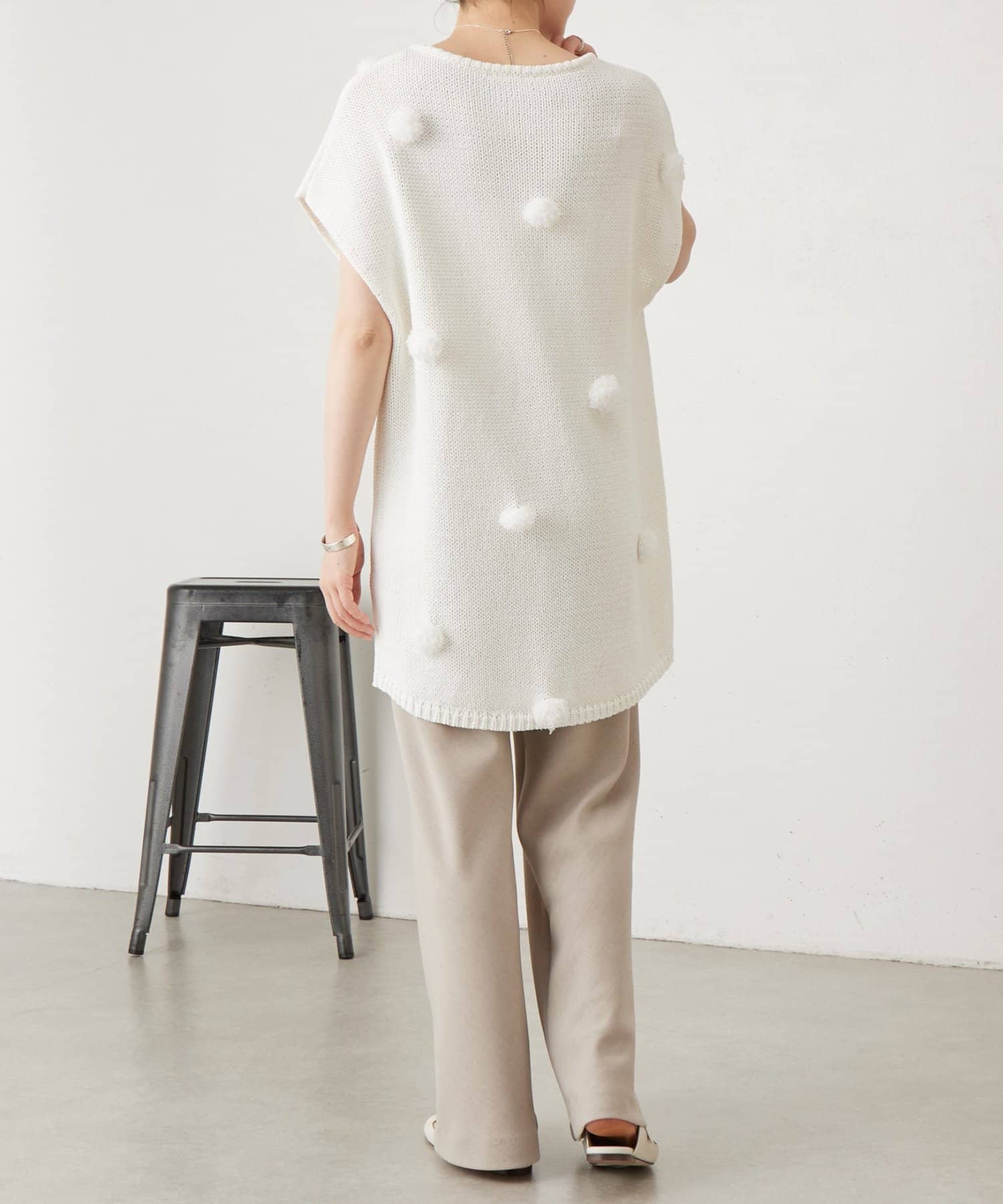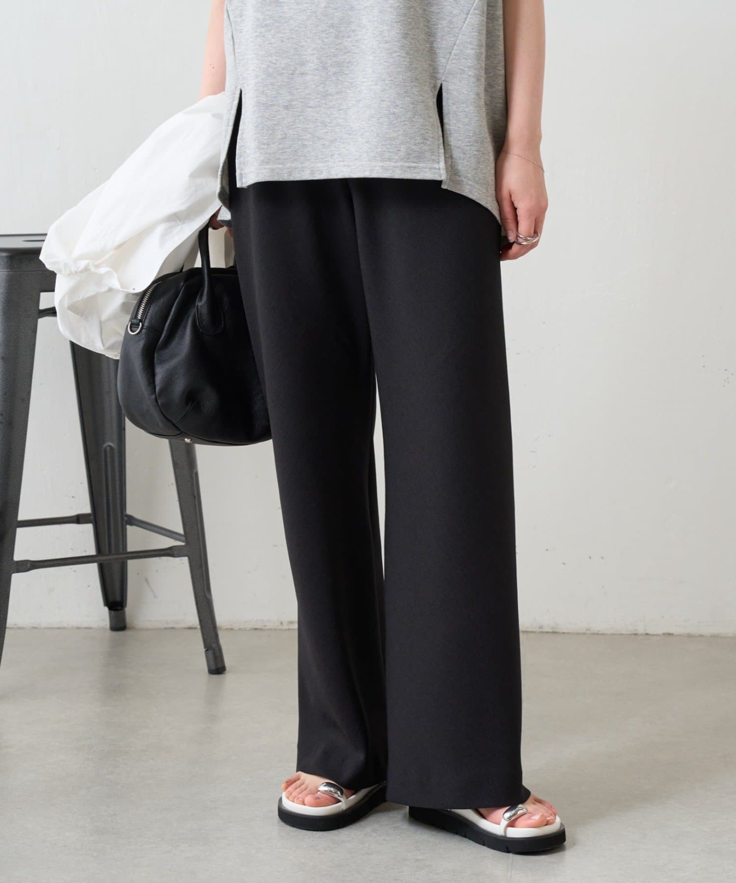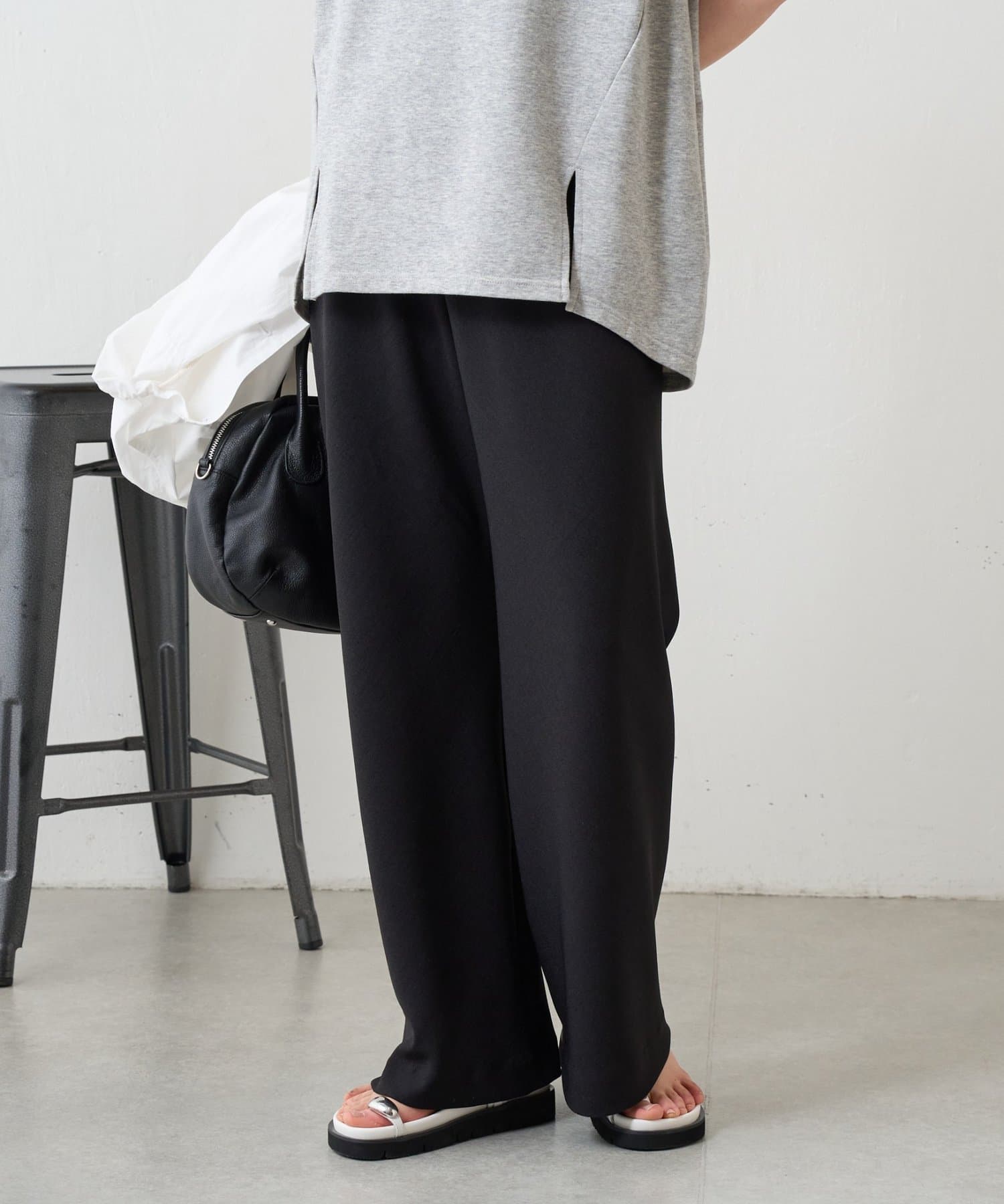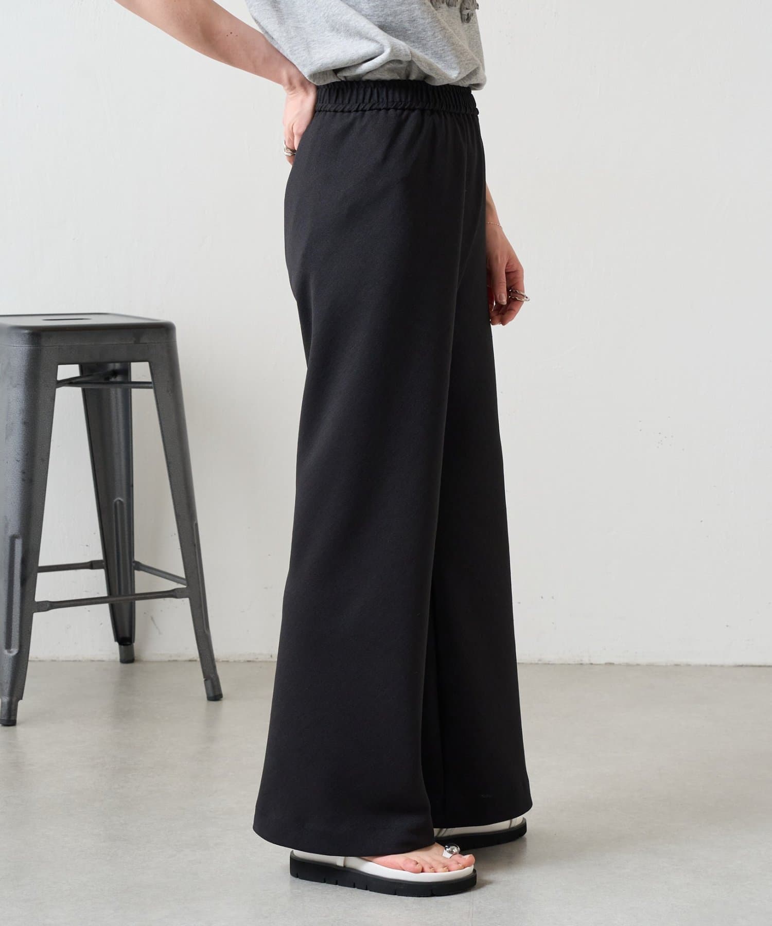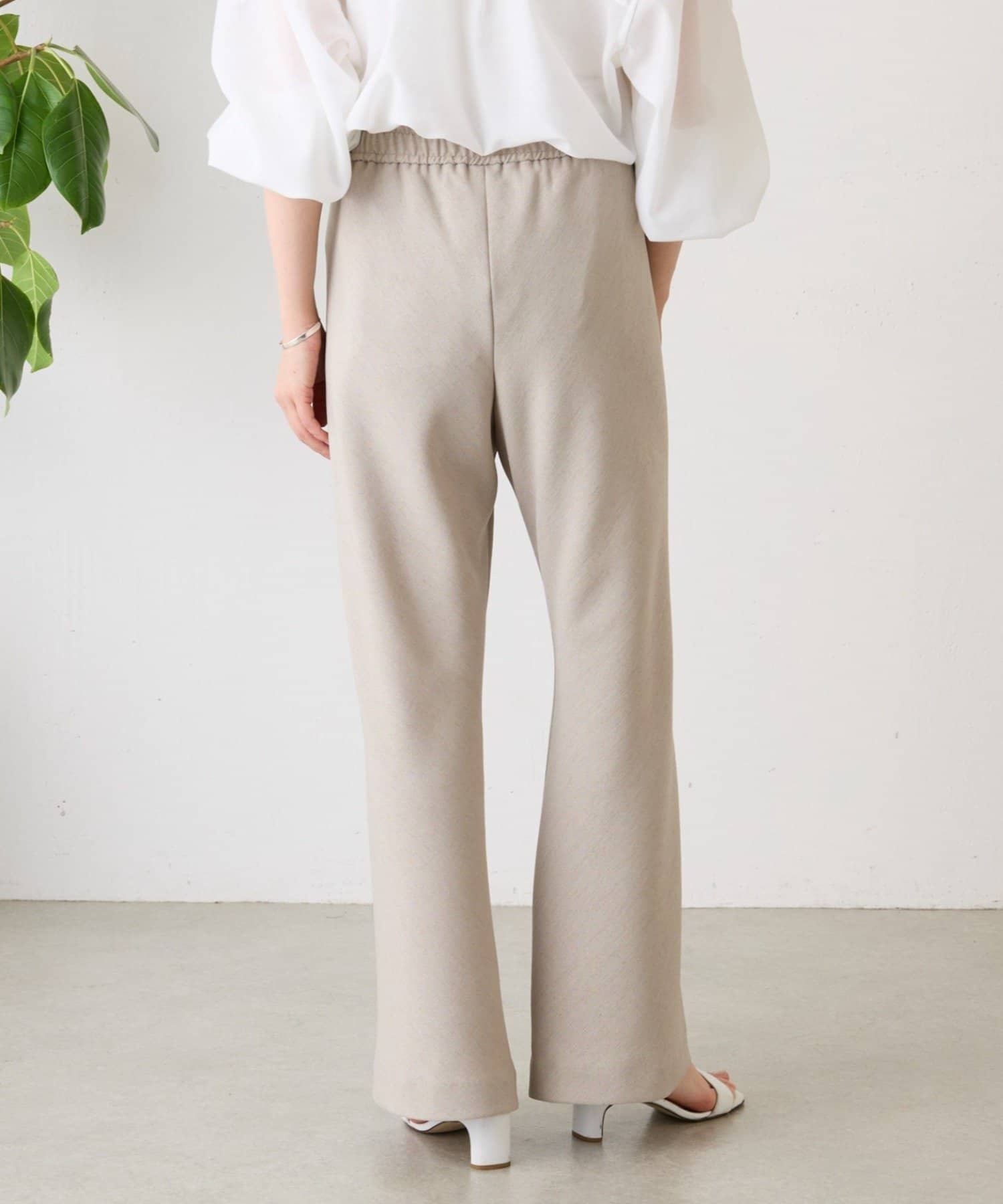 ウエストは一周総ゴム仕様で、リラックス感がありながらもすっきりとした印象です。