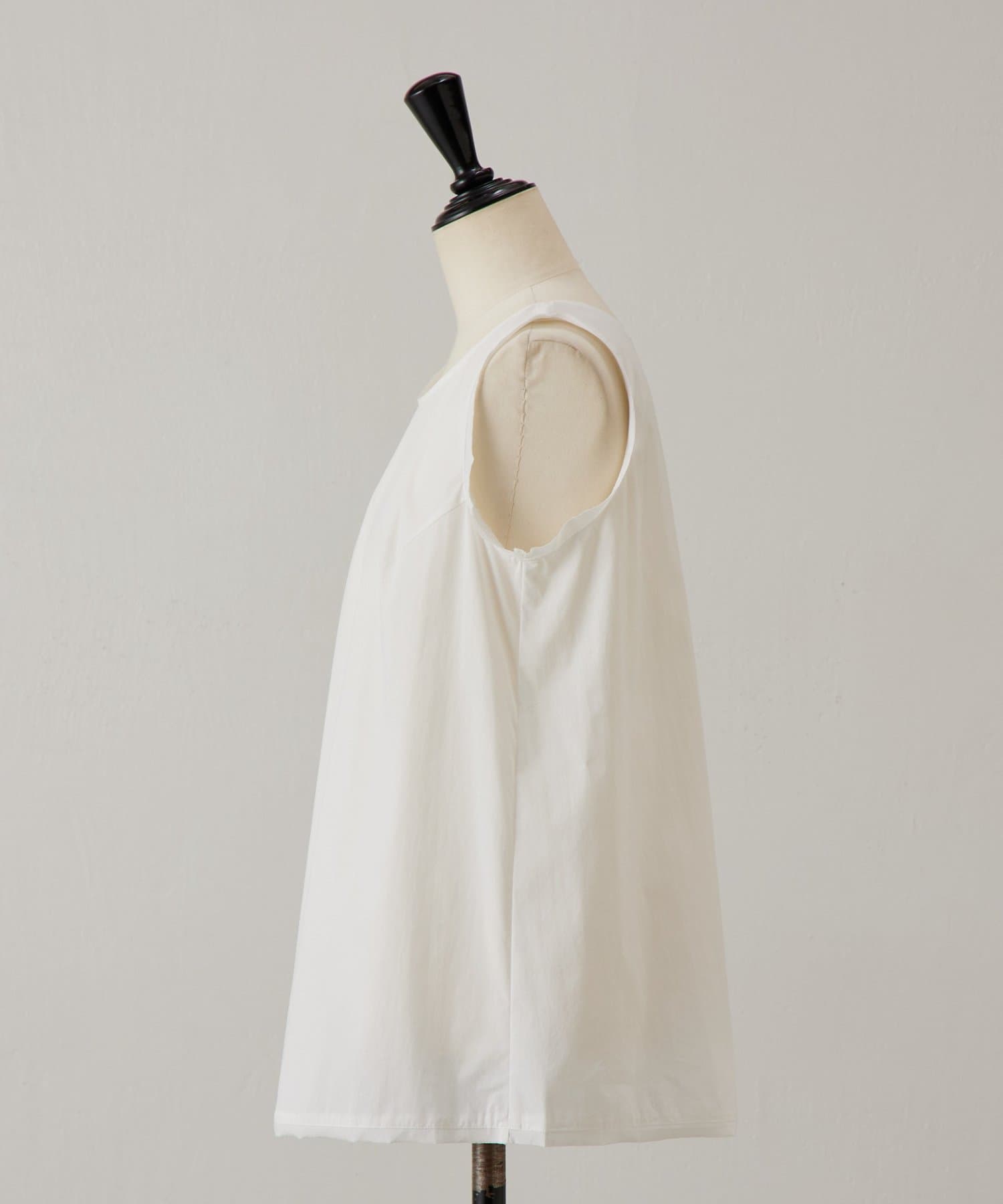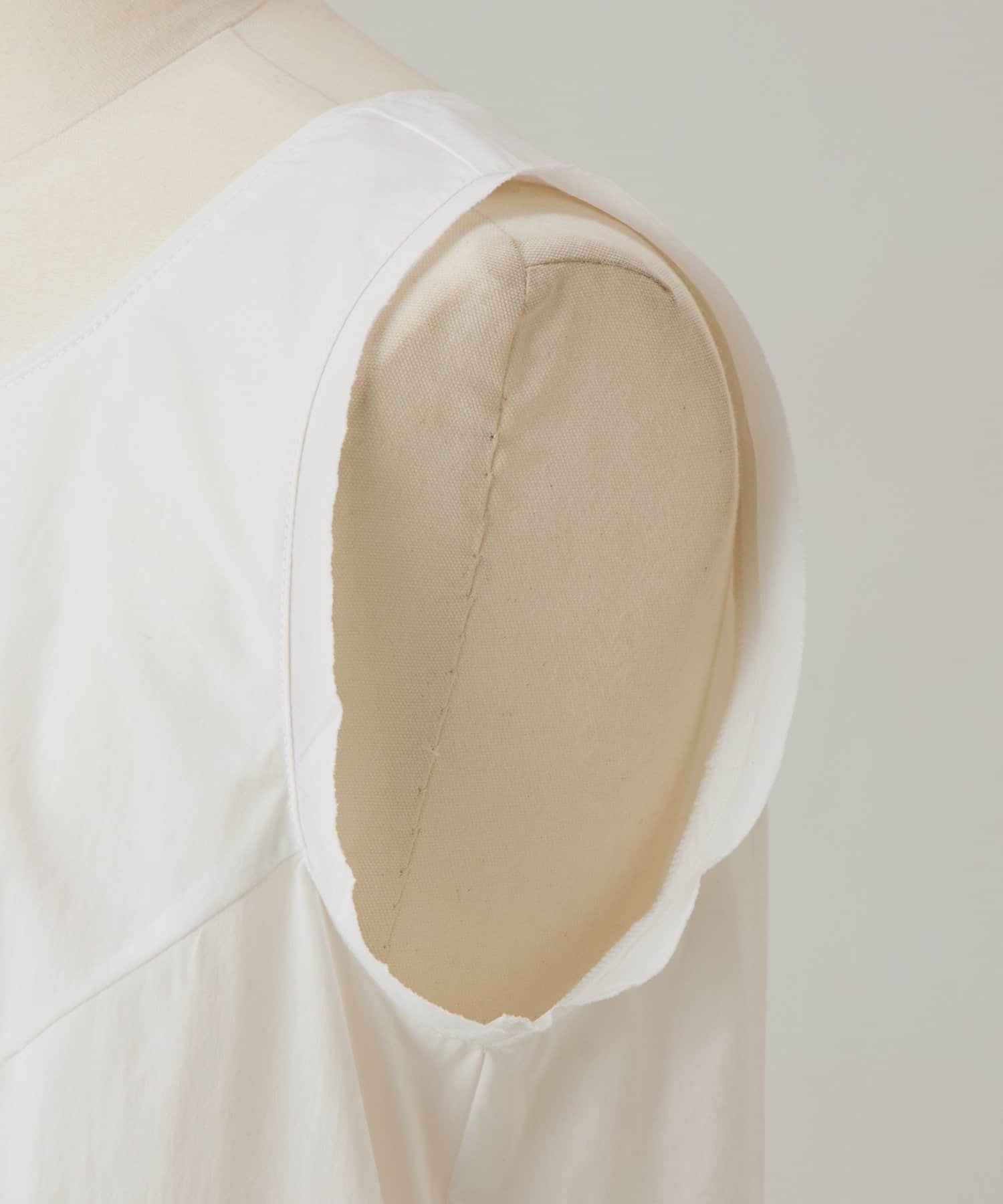裾とアームホールは切りっぱなしのバイアス生地を使用し、さりげないアクセントになっています。