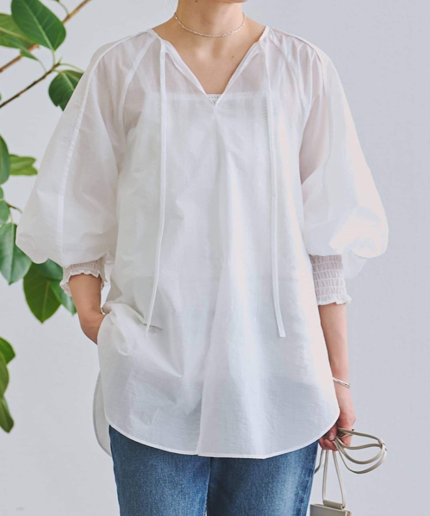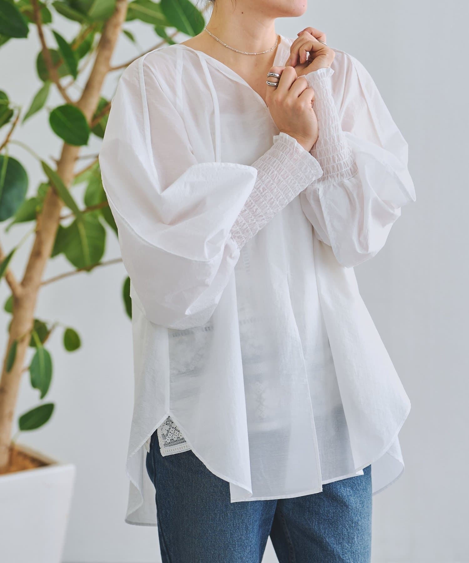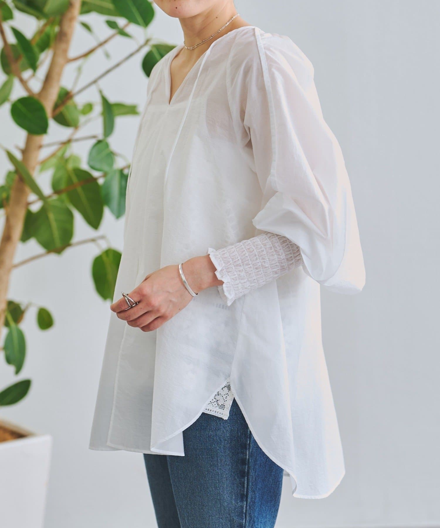 軽やかな透け感が魅力のシアーブラウス。