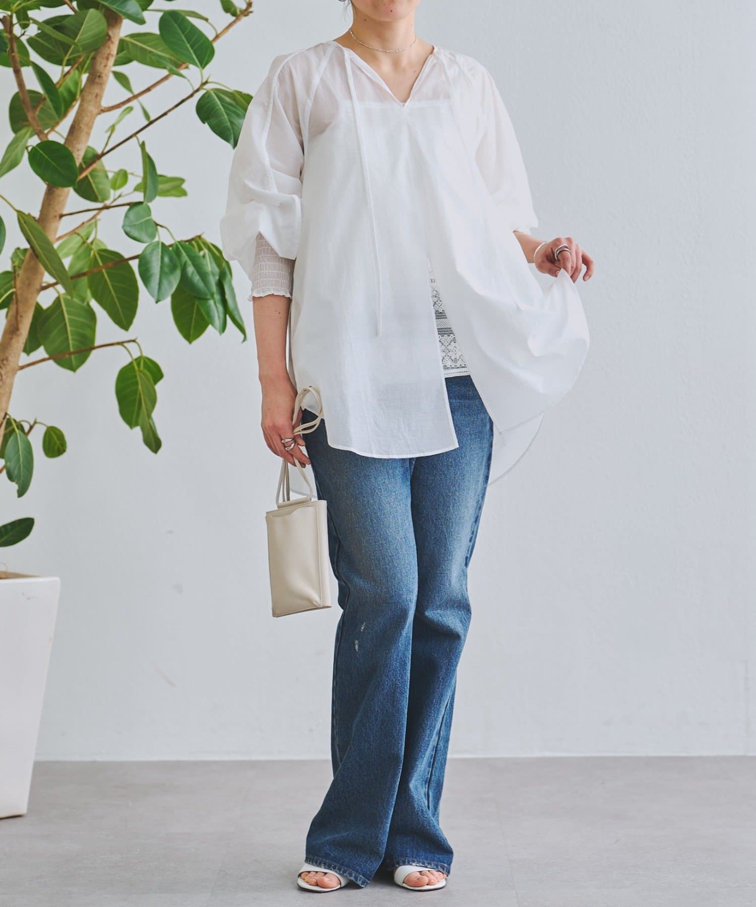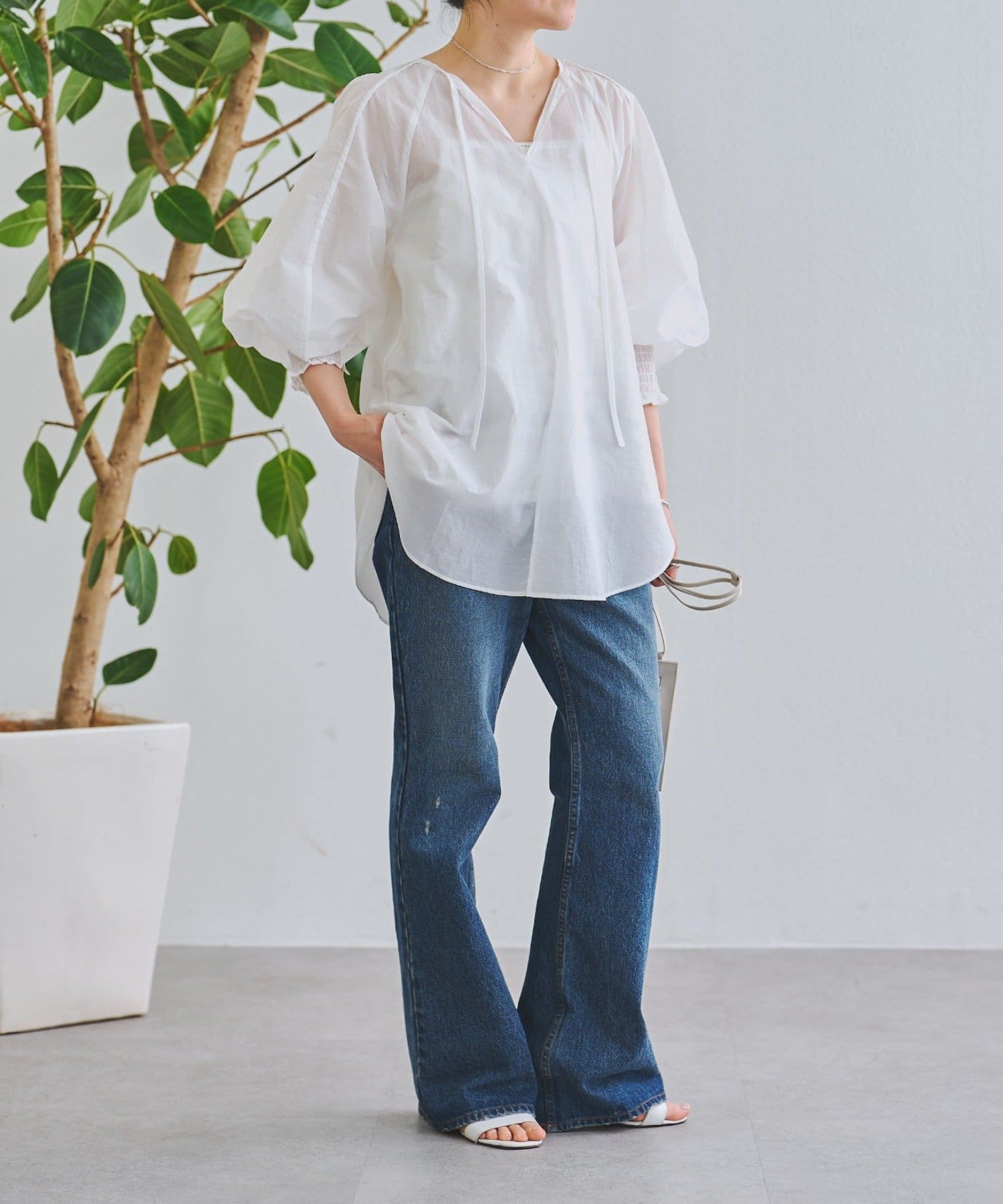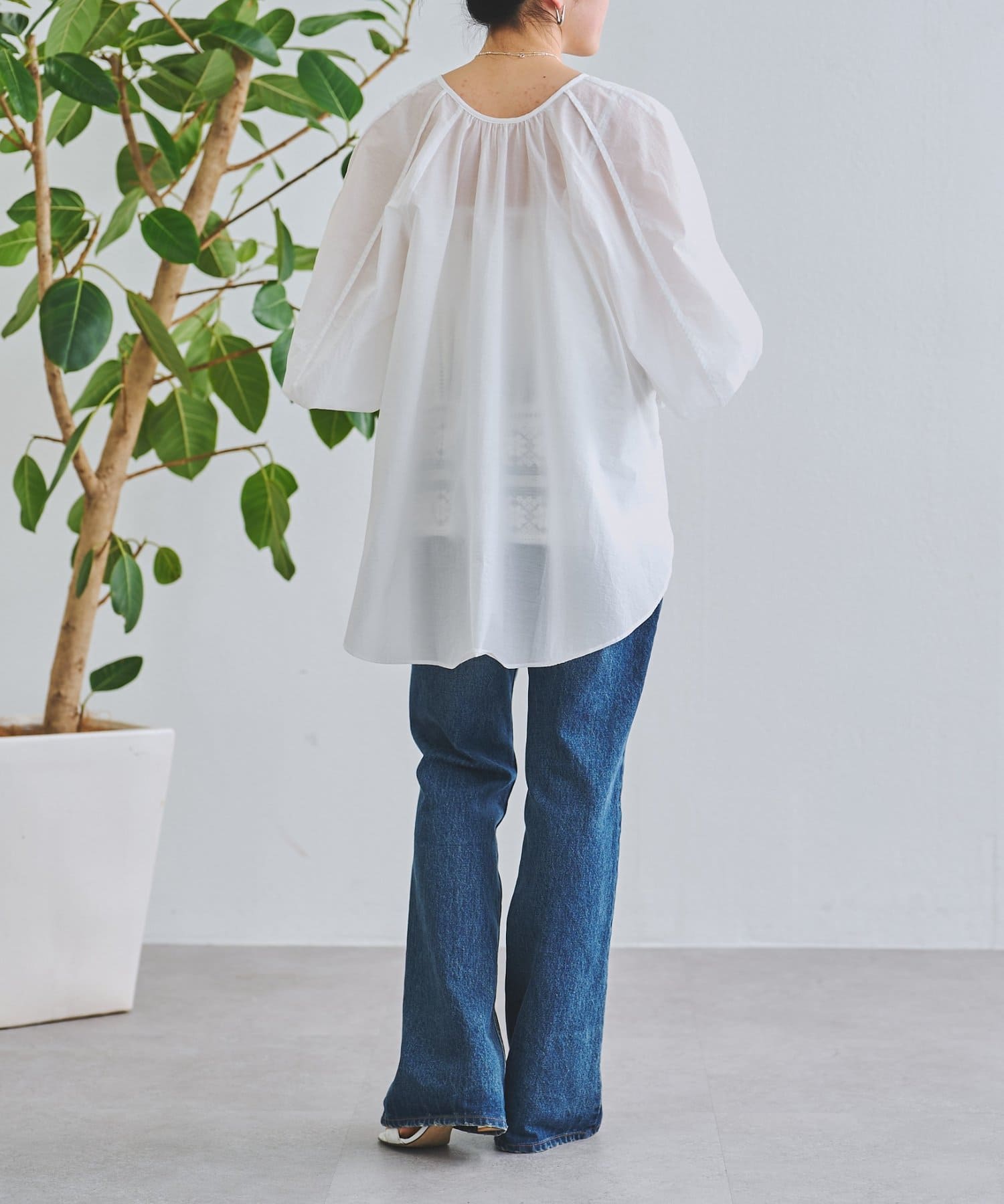 軽やかな透け感が魅力のシアーブラウス。