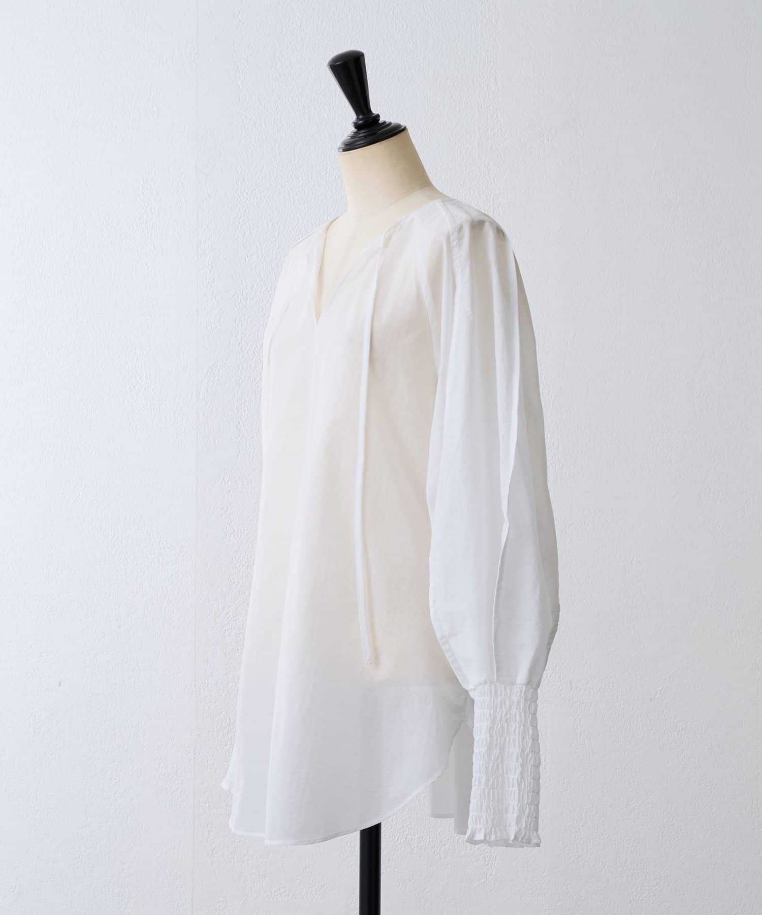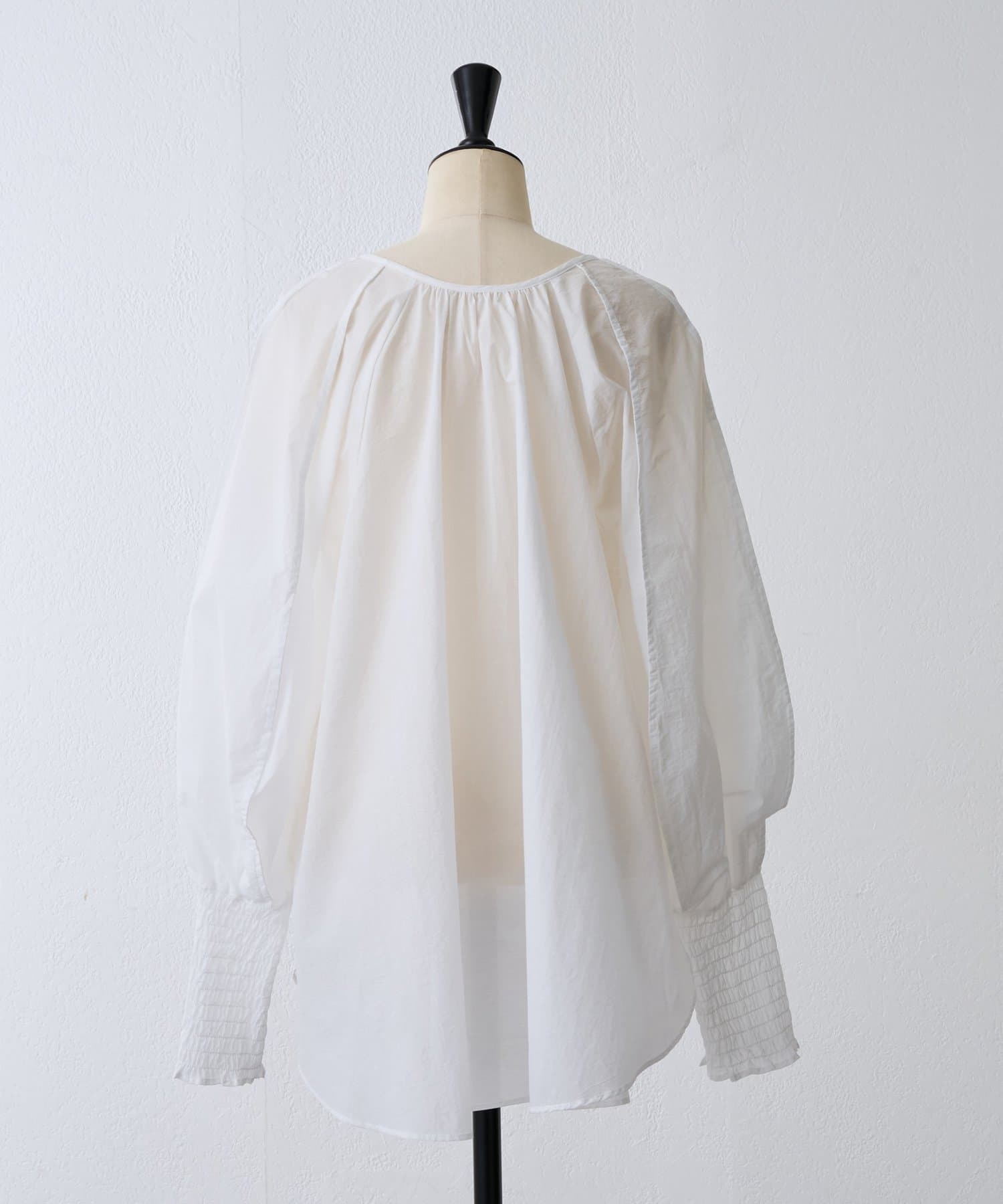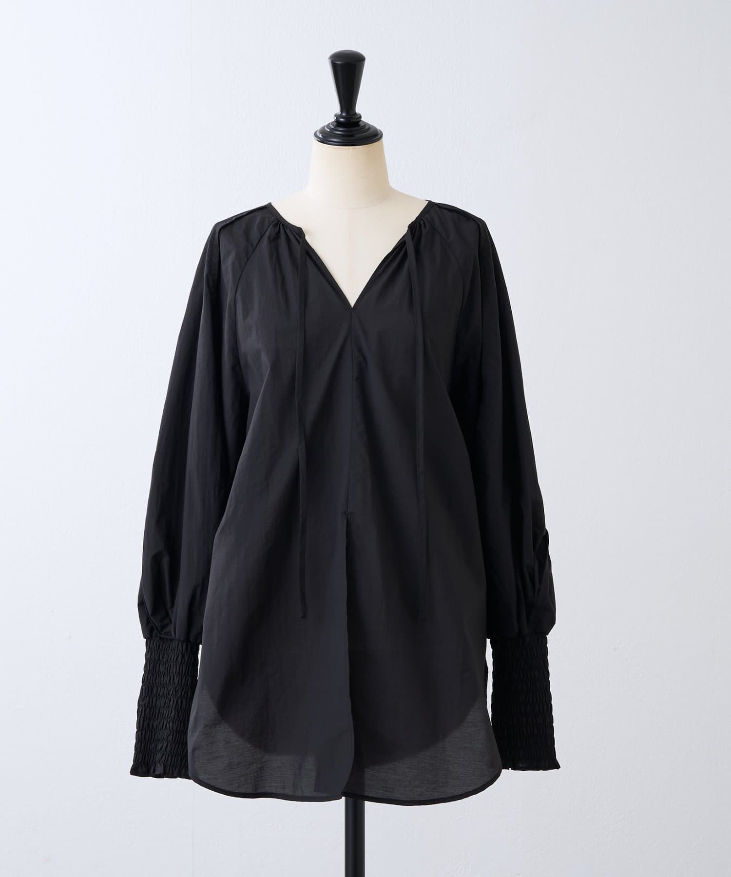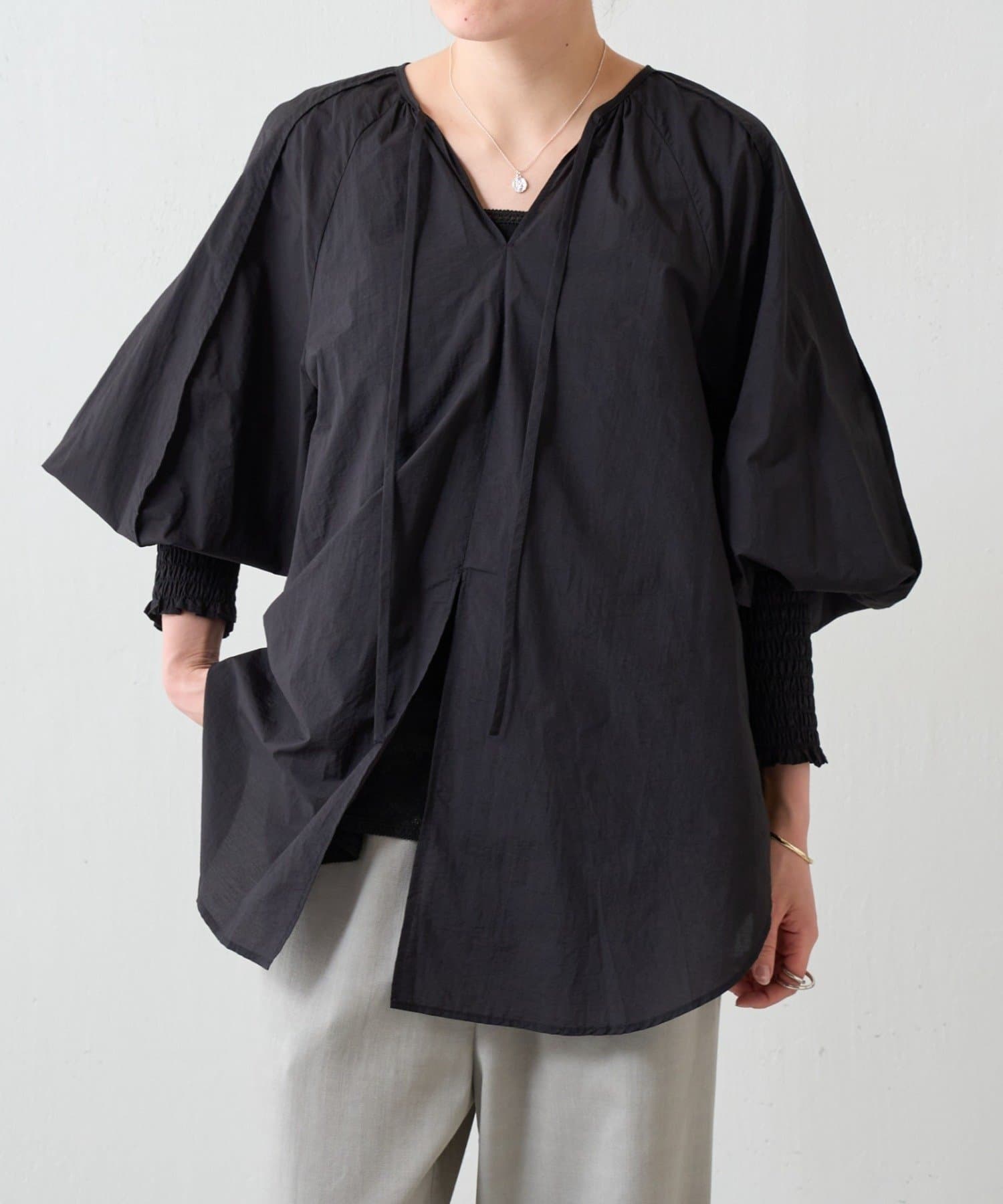 袖口はシャーリングとふんわり立体的なドルマンスリーブで