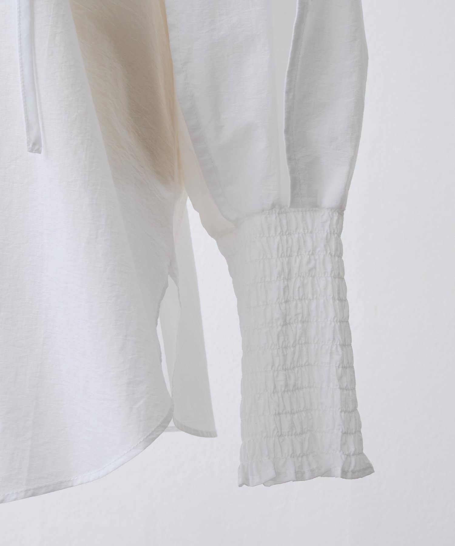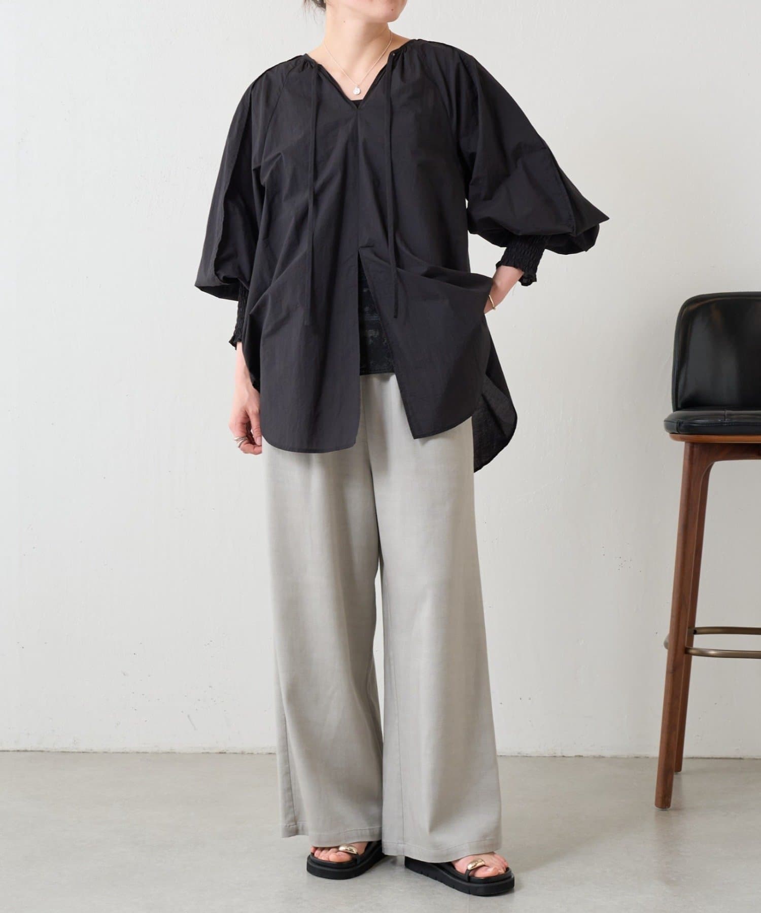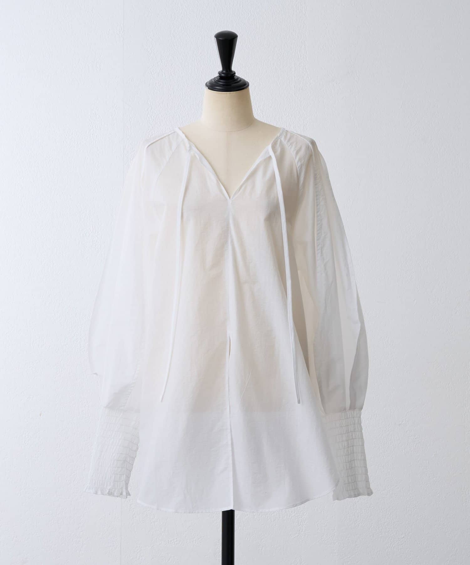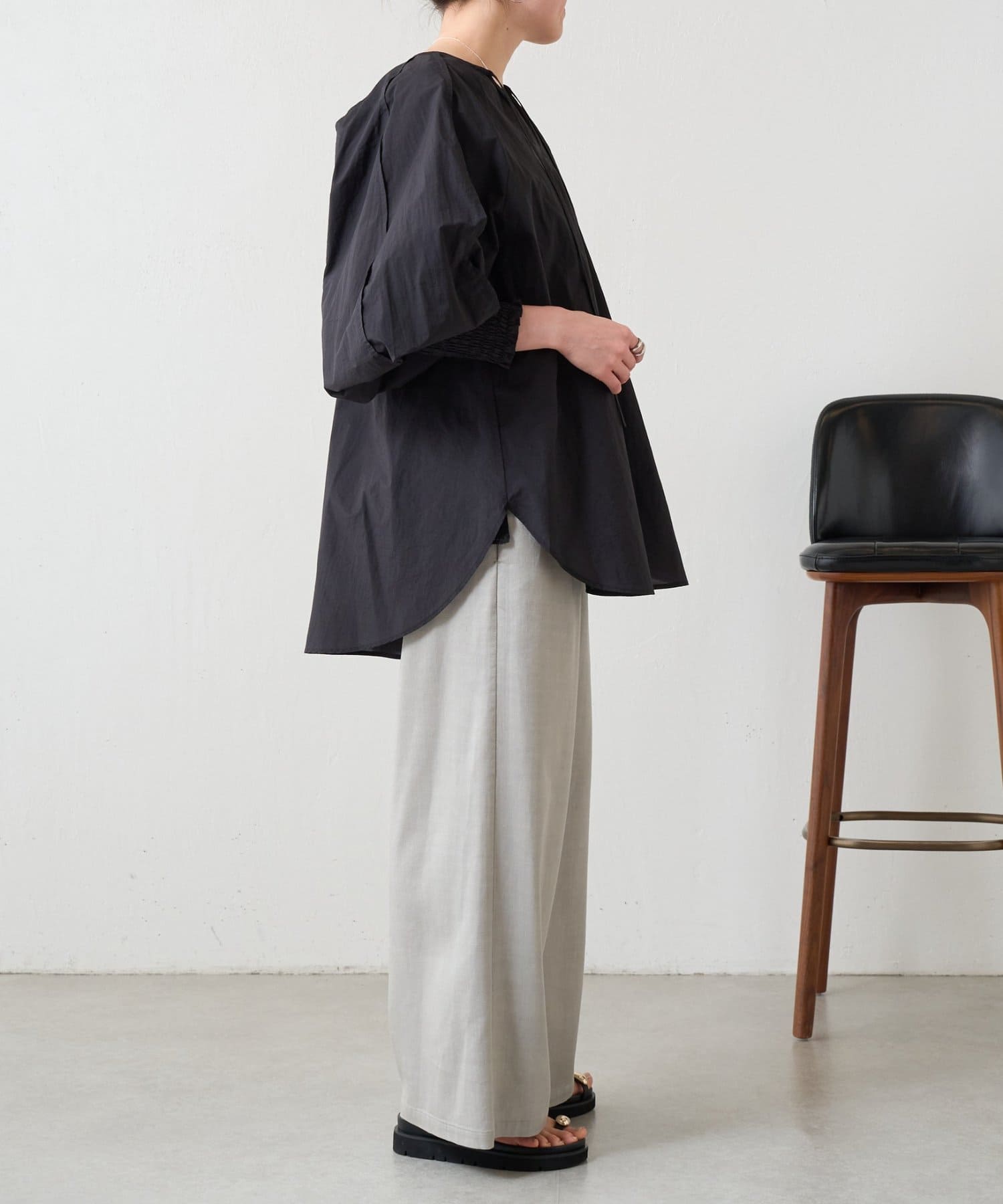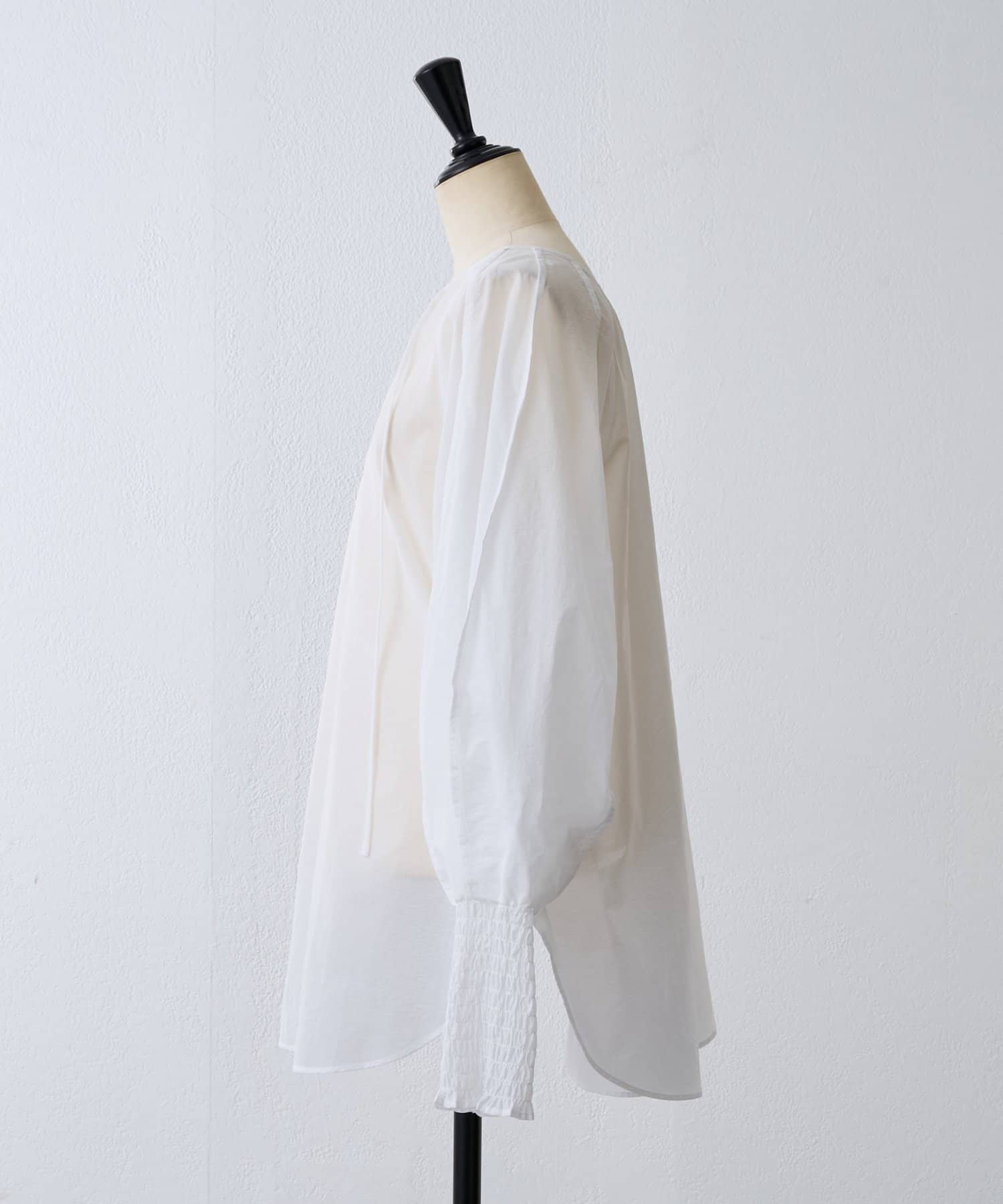 袖口はシャーリングとふんわり立体的なドルマンスリーブで