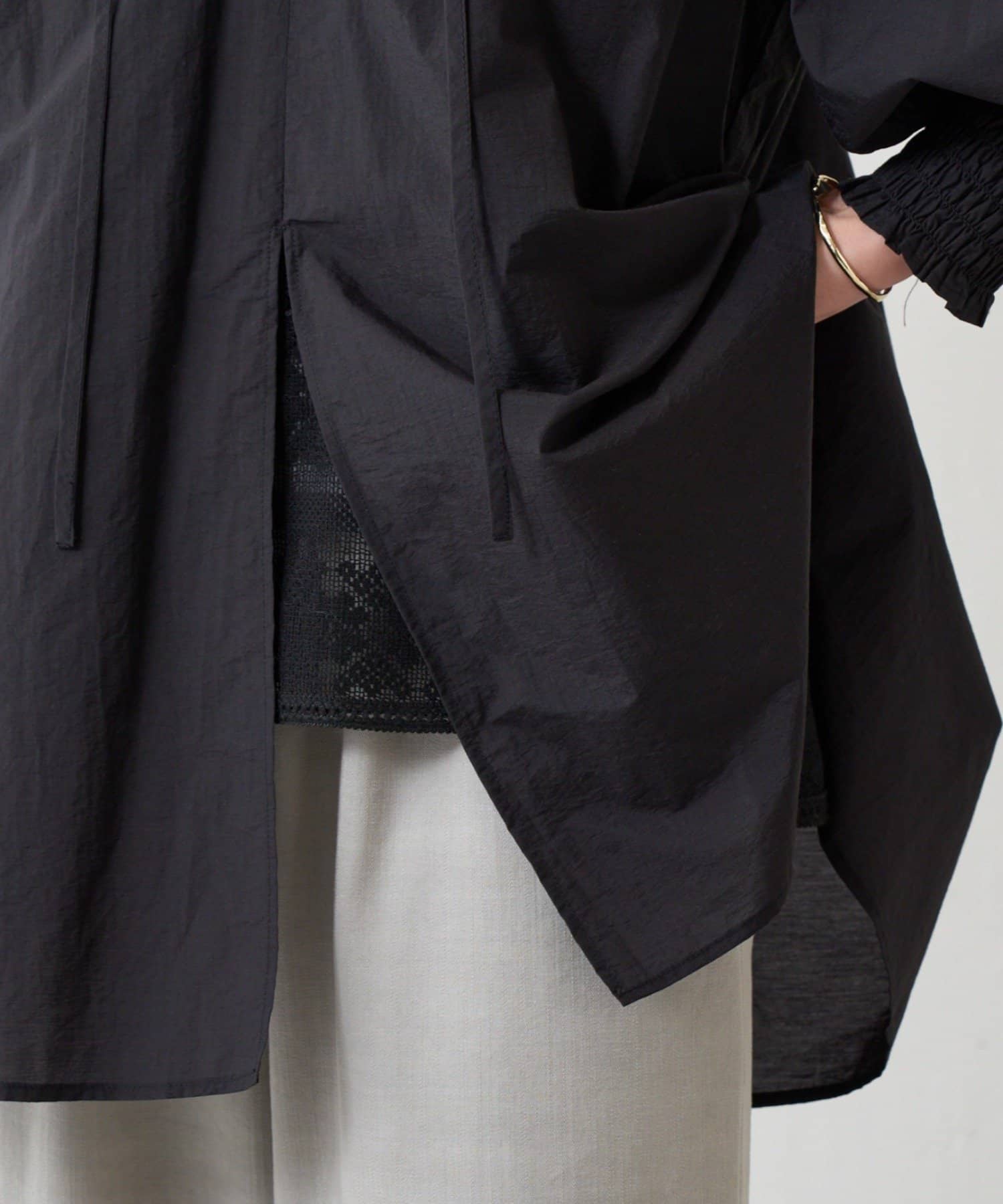 インナーとレイヤードさせ、上品なシアーコーデを楽しめる一着です。