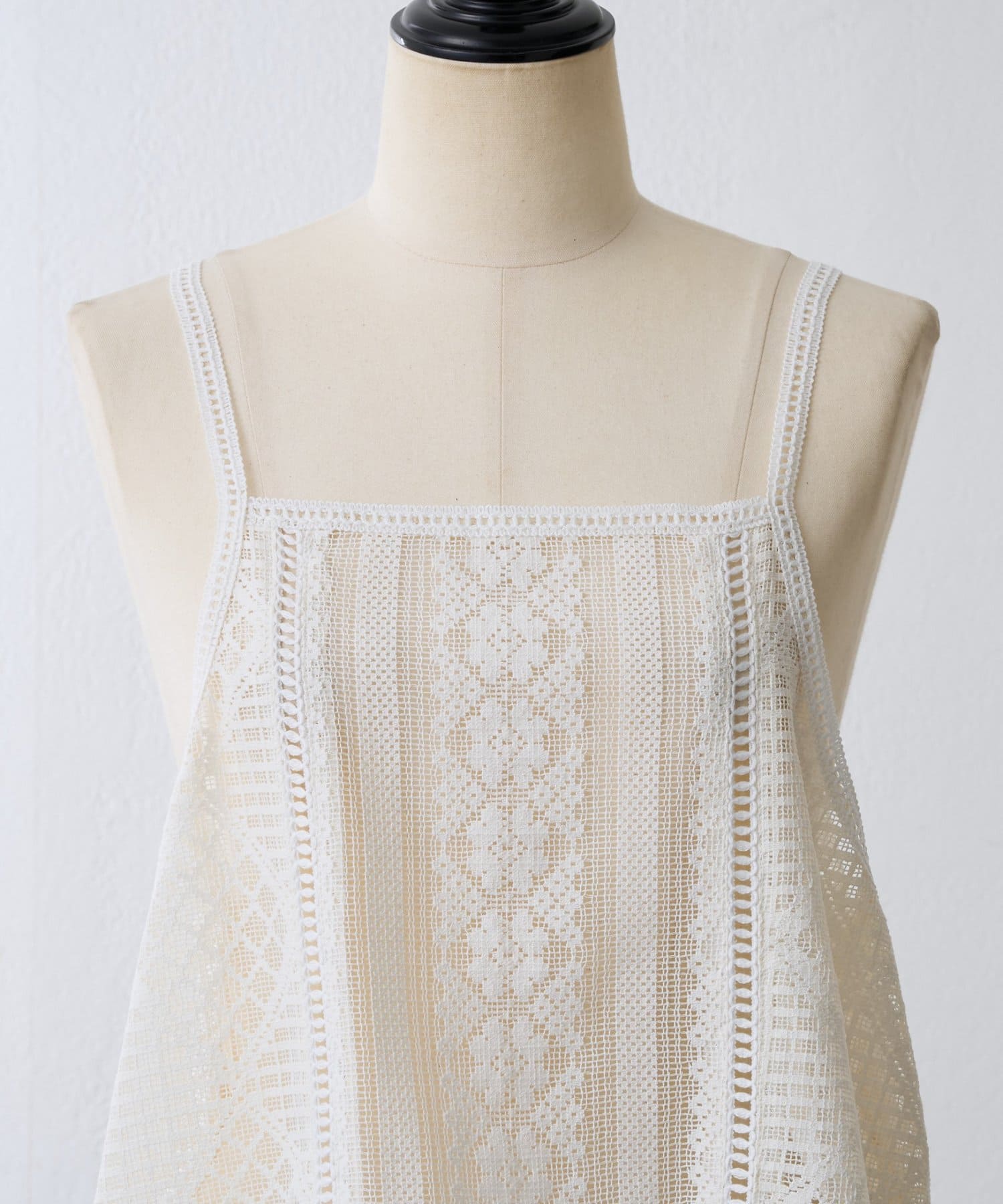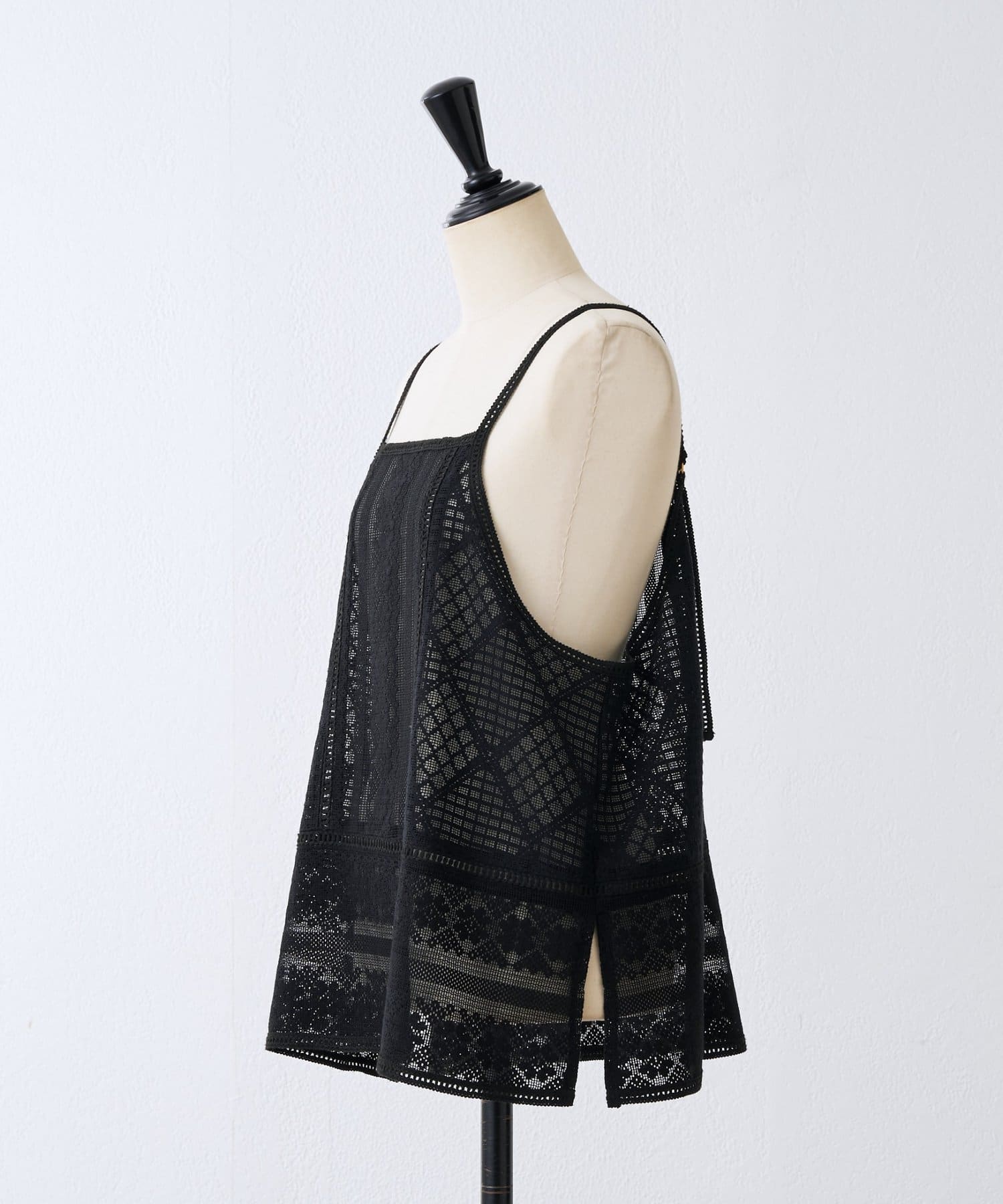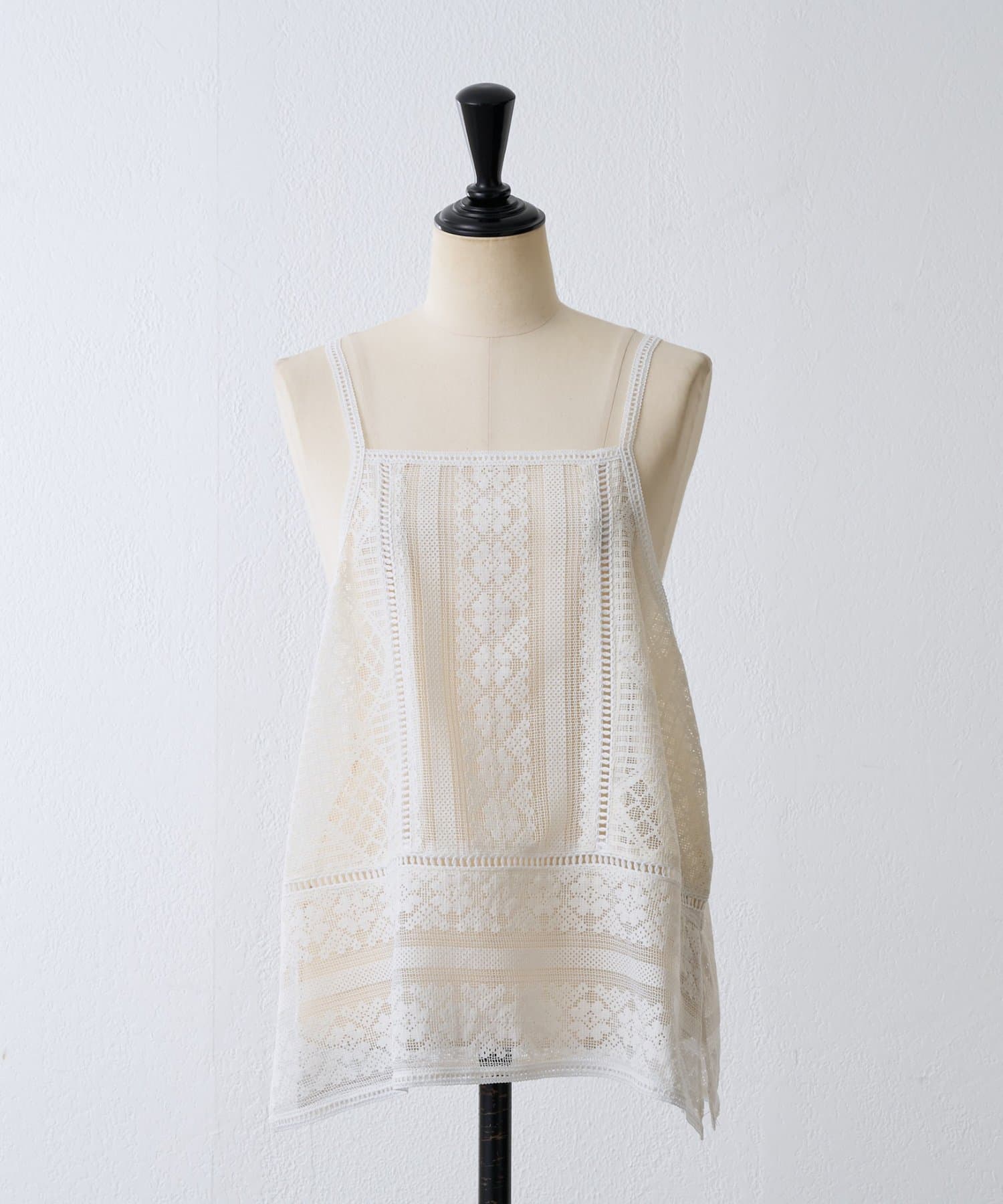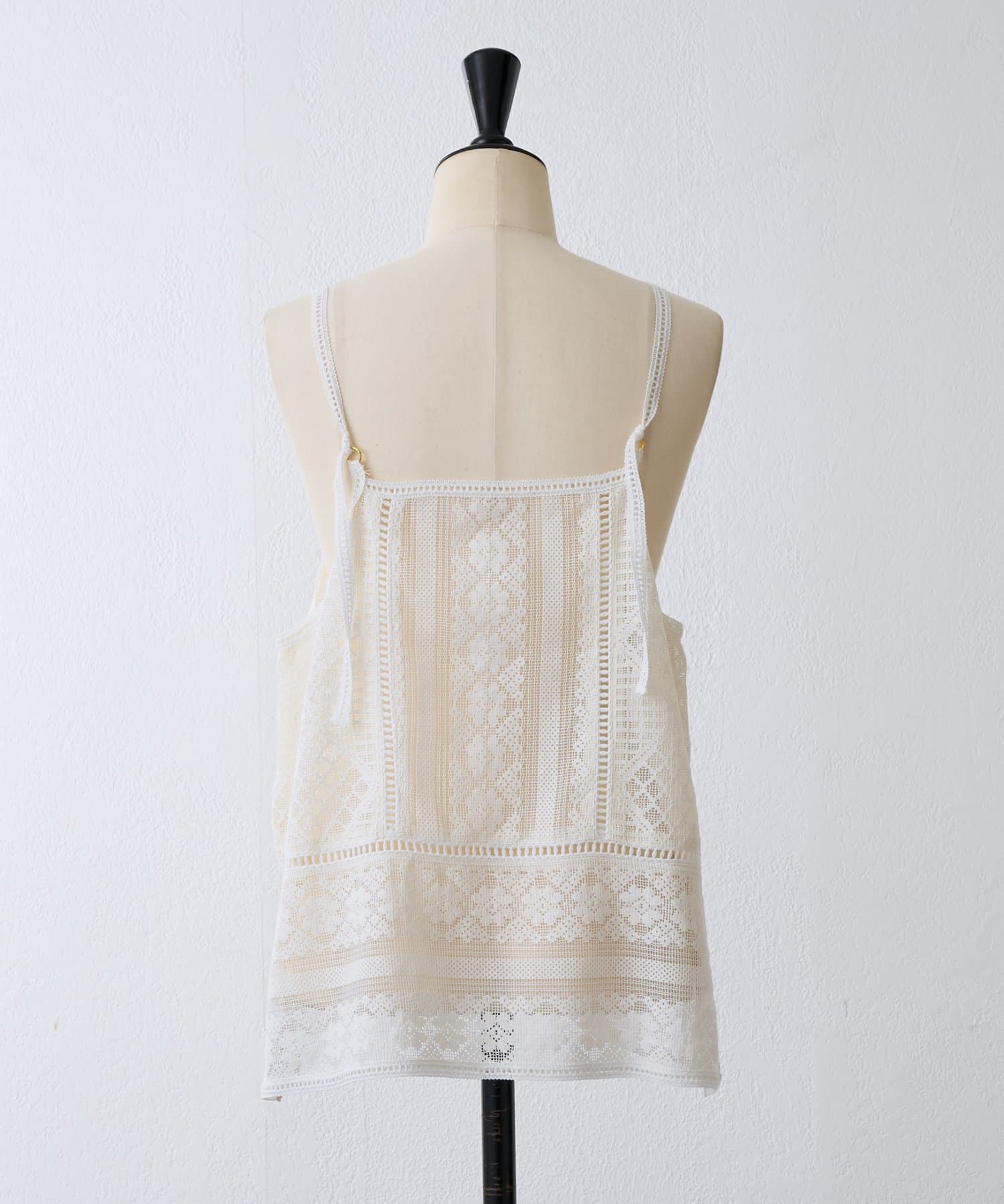 様々な模様のレースを組み合わせたパッチワークデザインが目を惹くキャミソール。