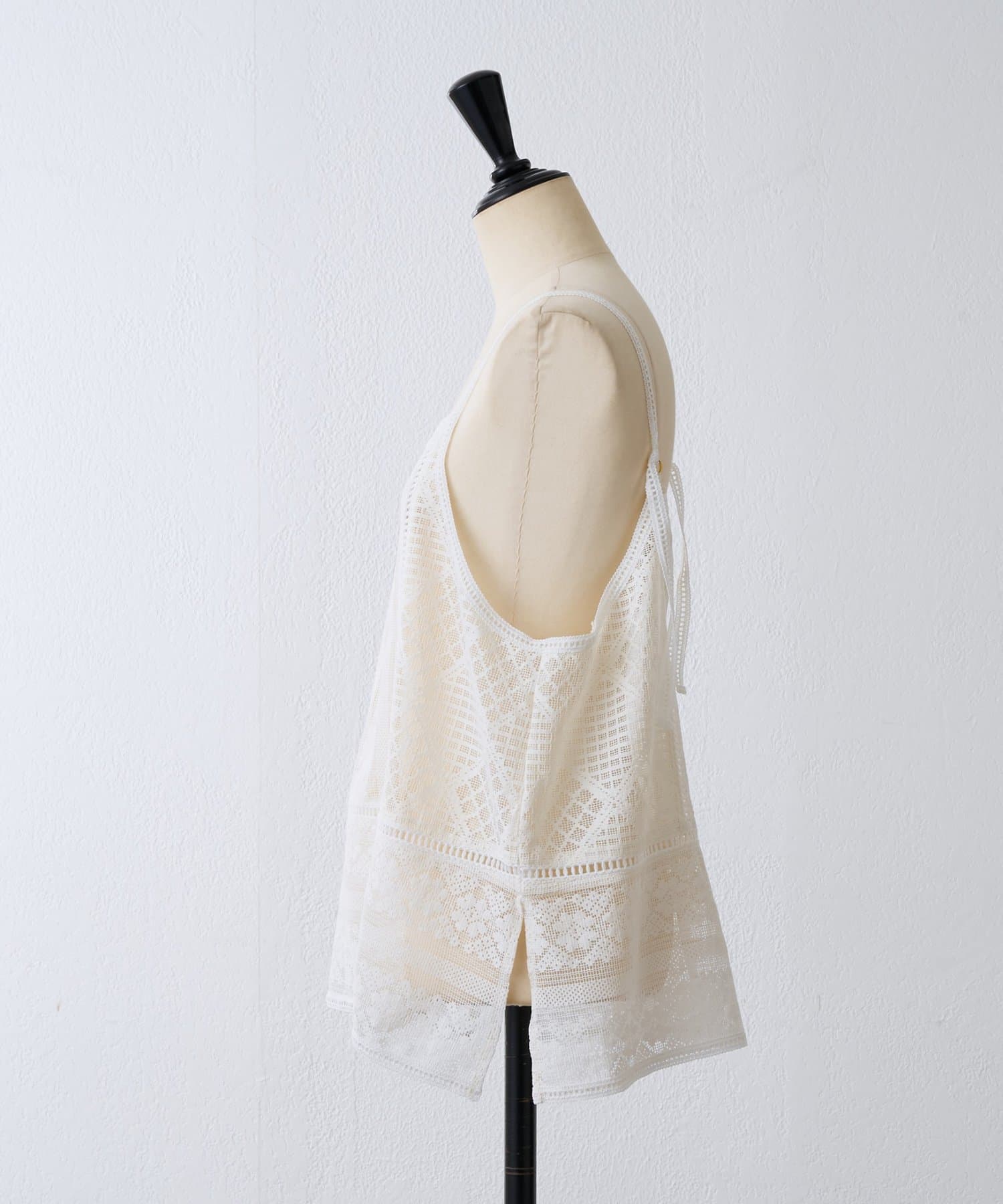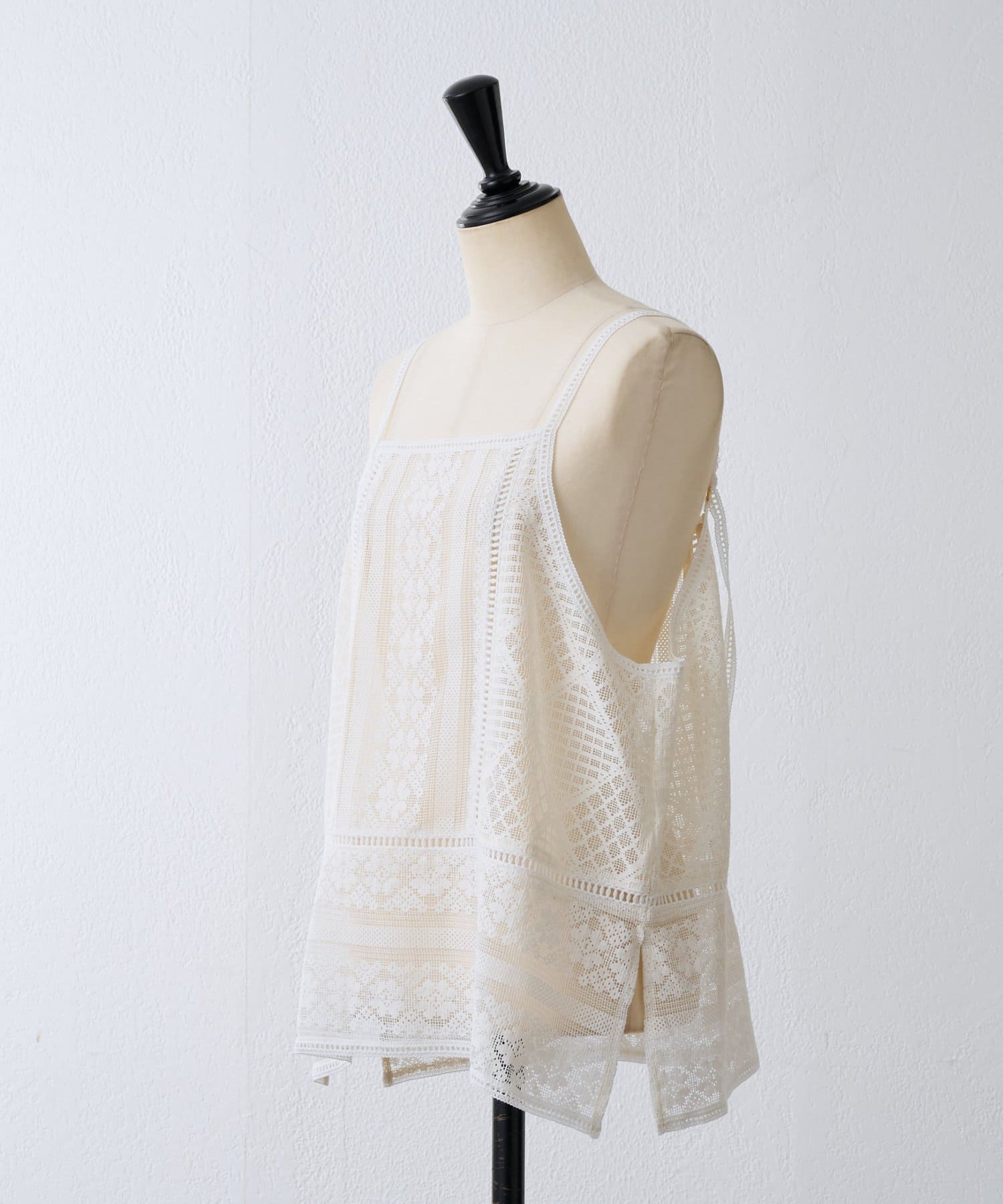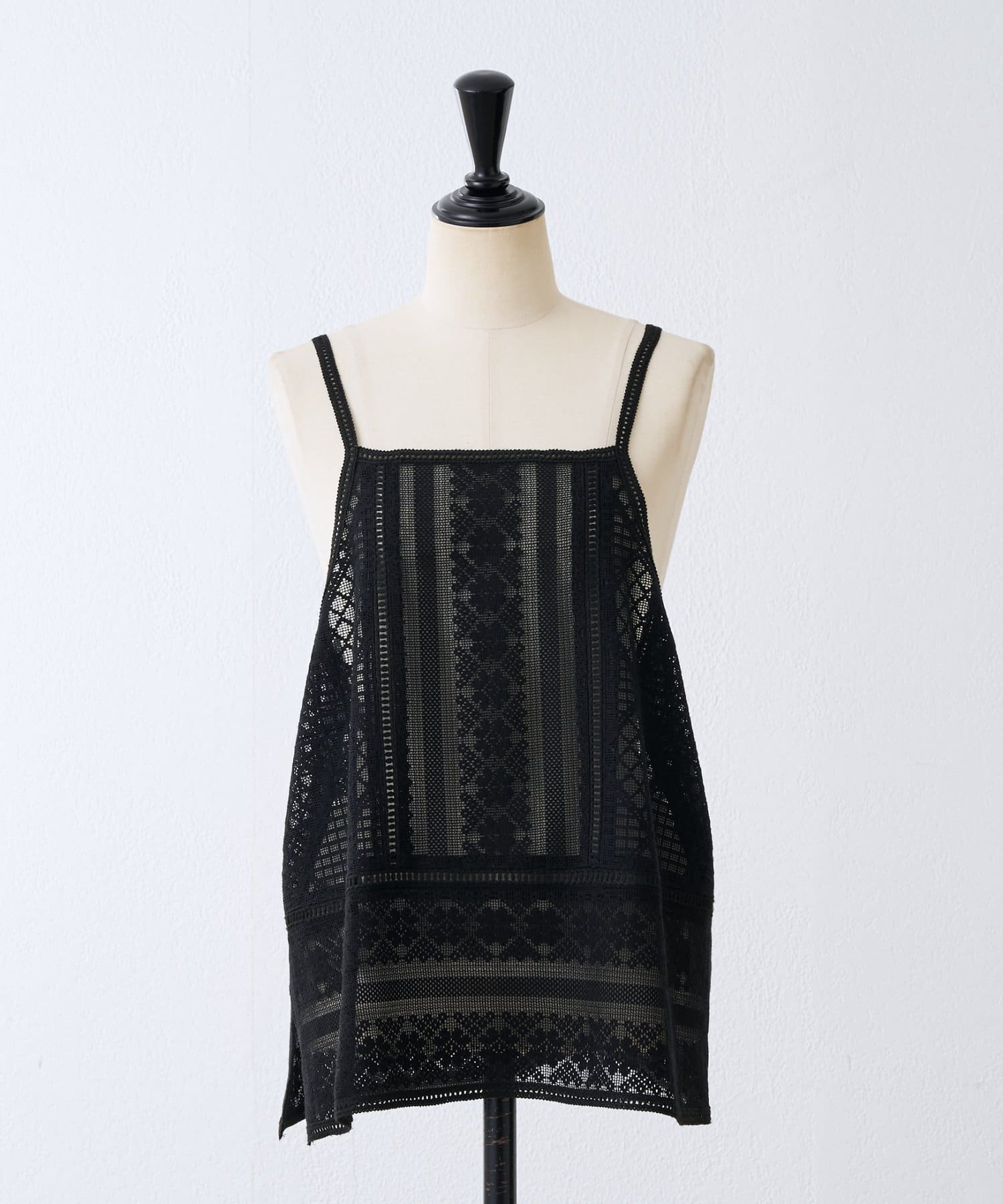 様々な模様のレースを組み合わせたパッチワークデザインが目を惹くキャミソール。